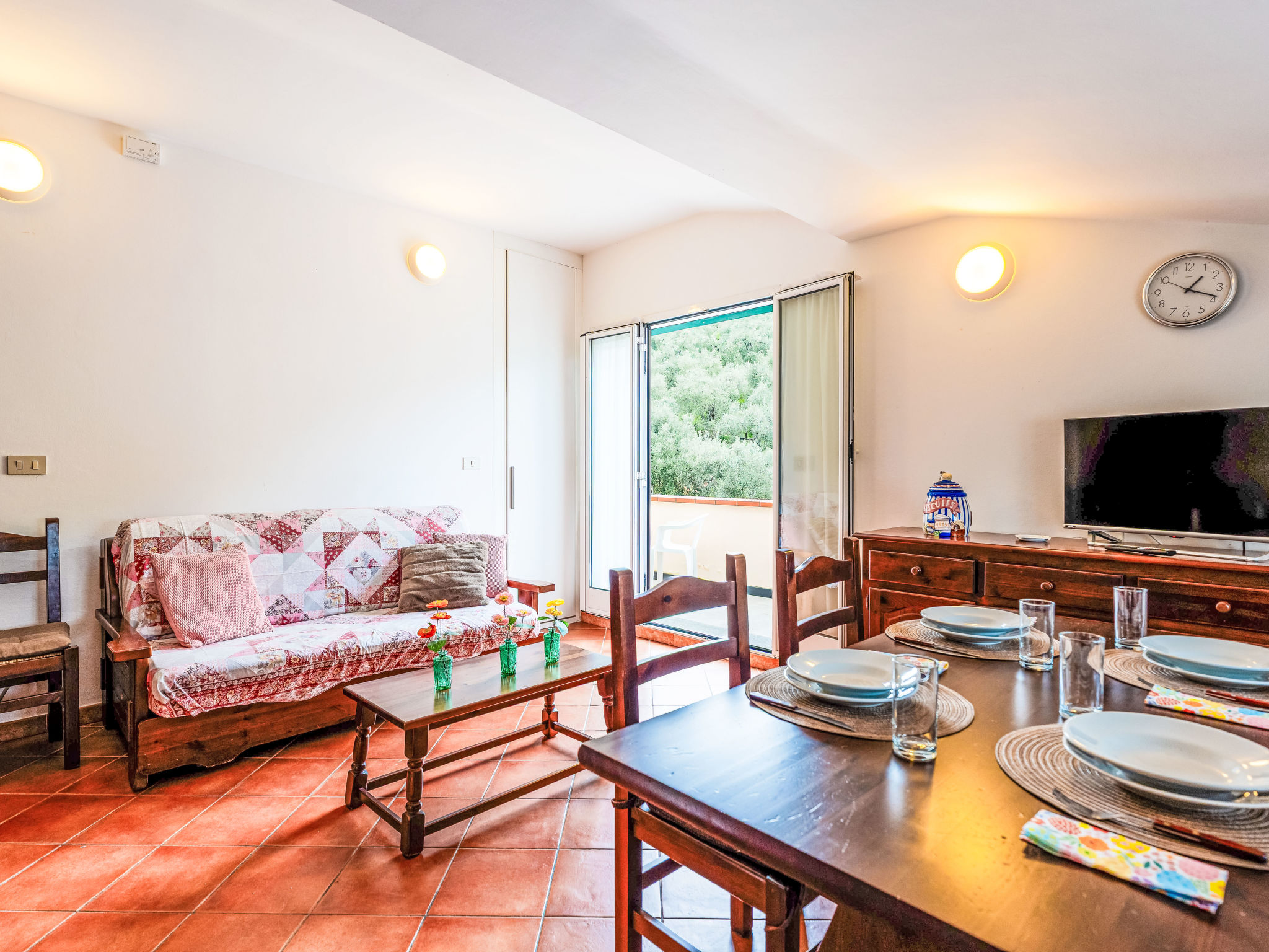 Agriturismo "La Colombera", umgeben von Bäumen und Feldern. 7 Wohnungen in der Residenz. Im Weiler Varcavello, 1 km vom Zentrum von Diano Castello, 2 km vom Zentrum von Diano Marina, 7 km vom Zentrum von Imperia, sonnige, erhöhte Lage am Hang, 2.5 km vom Meer, an einer Strasse. Zur Mitbenutzung: naturbelassenes Grundstück 1'000 m2 mit Pflanzen, Hof, Schwimmbad eingezäunt (12 x 5 m, 110 cm tief, saisonale Verfügbarkeit: 01.Apr.-31.Okt.). Aussendusche, Terrasse, Gartenmöbel, Grill, Poolpflege durch den Besitzer/Gärtner. Im Hause: Fahrradverleih. Zur Verfügung: Fahrräder (12) (extra). Parkplatz (überdacht, beschränkte Anzahl) auf dem Grundstück. Einkaufsgeschäft 900 m, Supermarkt 3 km, Sandstrand 2.5 km, Hallenbad 10 km. Jacht-Hafen 2.5 km. Jugendgruppen nur auf Anfrage. Ab Hof Verkauf von bäuerlichen Produkten. Bitte beachten: Der Besitzer wohnt auf dem gleichen Grundstück. Eigentümer hat einen Hund. Tiere in der Umgebung. In diesem Haus sind weitere Ferienwohnungen mietbar.