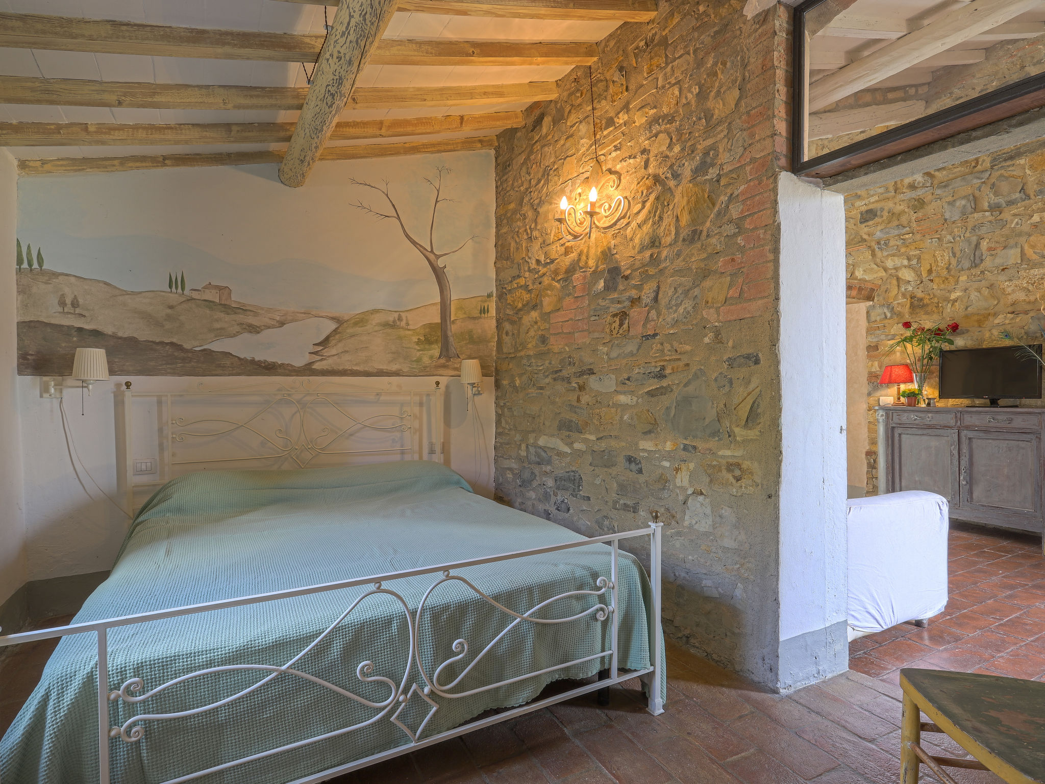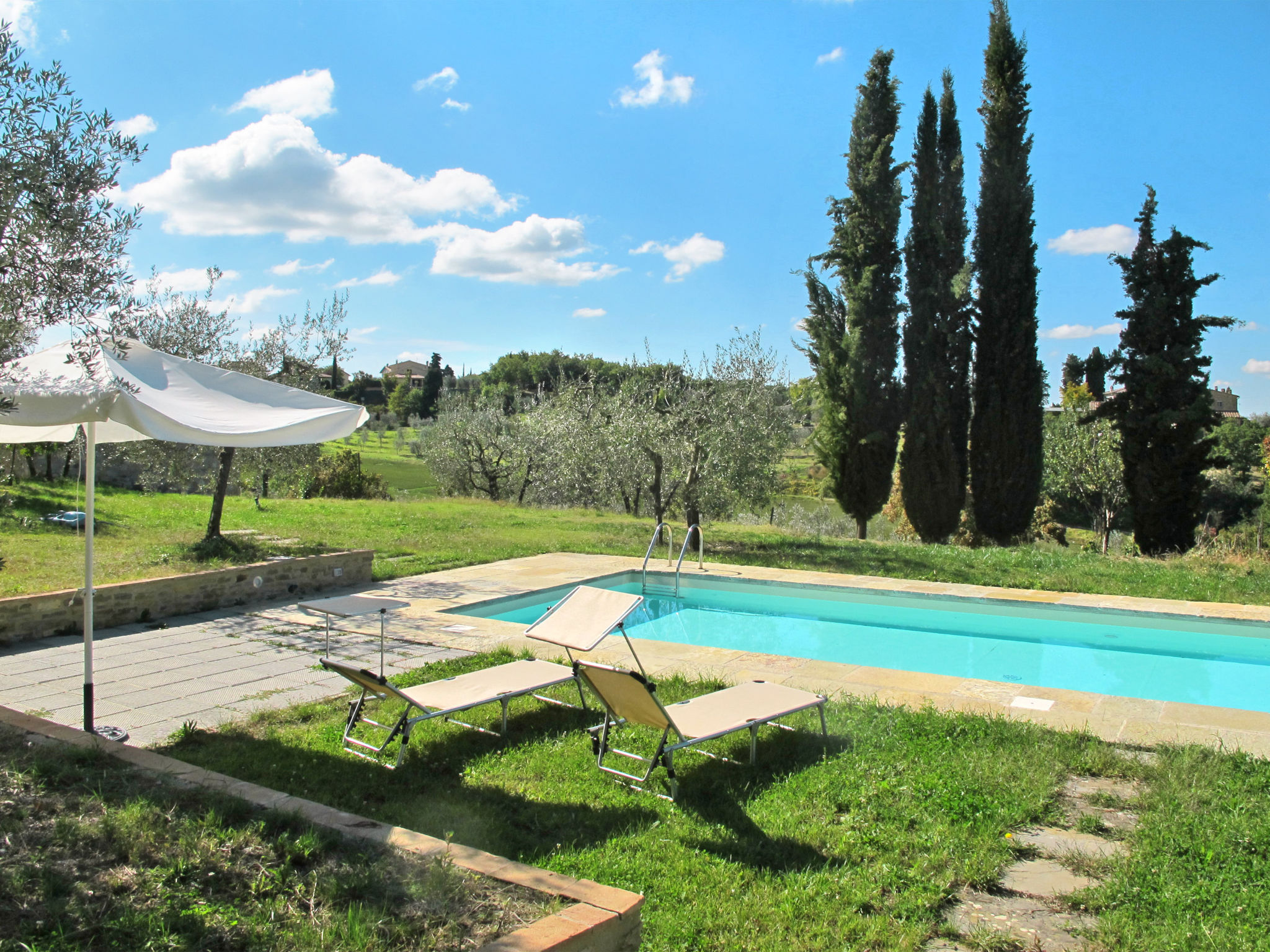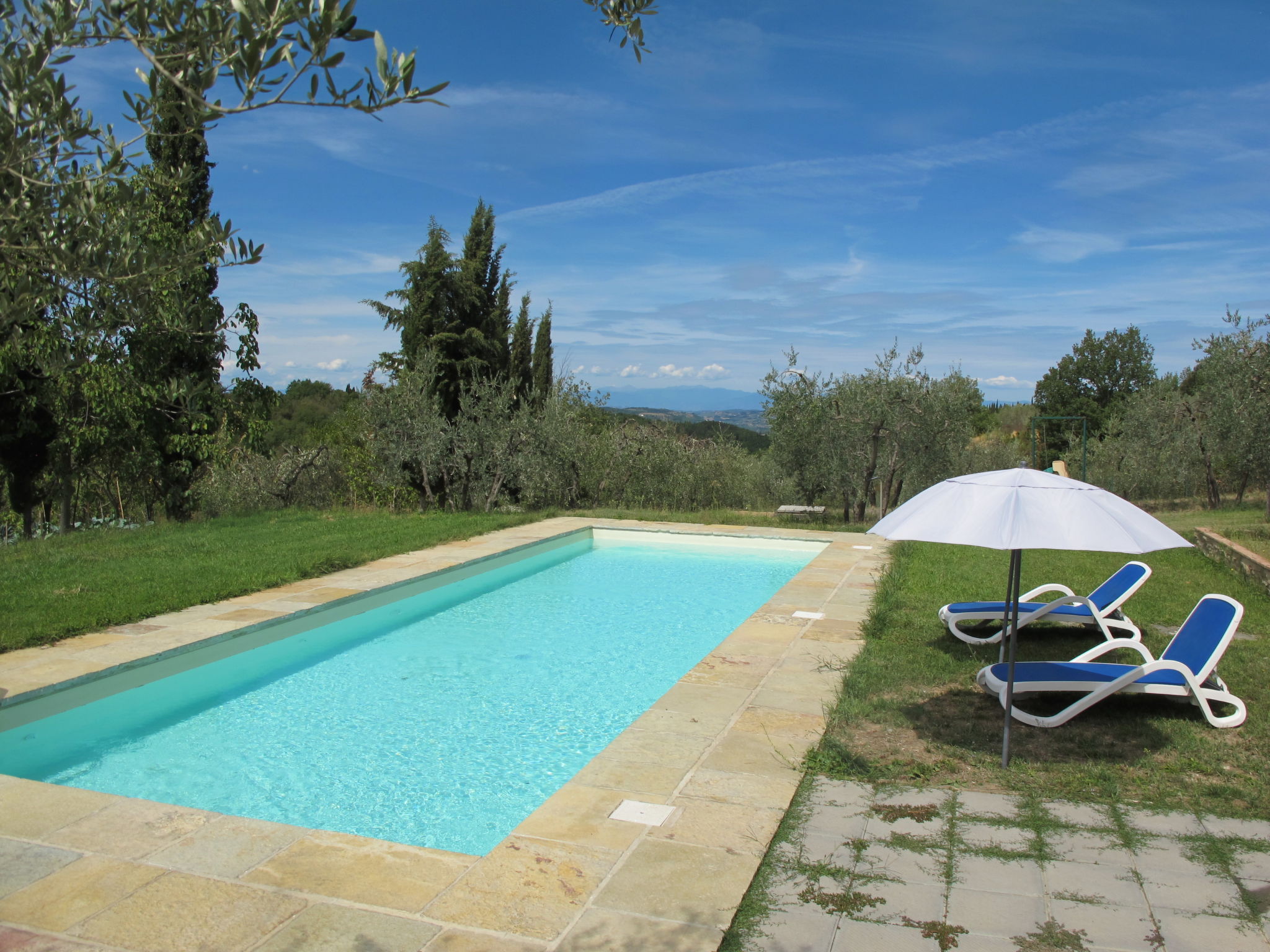 Rustikaler Landsitz "Il Casino". 300 m vom Zentrum von San Donato in Poggio, 10 km vom Zentrum von Castellina in Chianti, 27 km vom Zentrum von Firenze. Zur Mitbenutzung: Grundstück 40'000 m2 mit Bäumen, Schwimmbad (12 x 4 m, 150 cm tief, saisonale Verfügbarkeit: 15.Mai.-30.Sep.). Aussendusche. 150 m lange Zufahrt (Naturweg). Parkplatz auf dem Grundstück. Einkaufsgeschäft 300 m. Bitte beachten: Der Besitzer wohnt auf dem gleichen Grundstück. Hauptstrasse 150 m vom Haus.