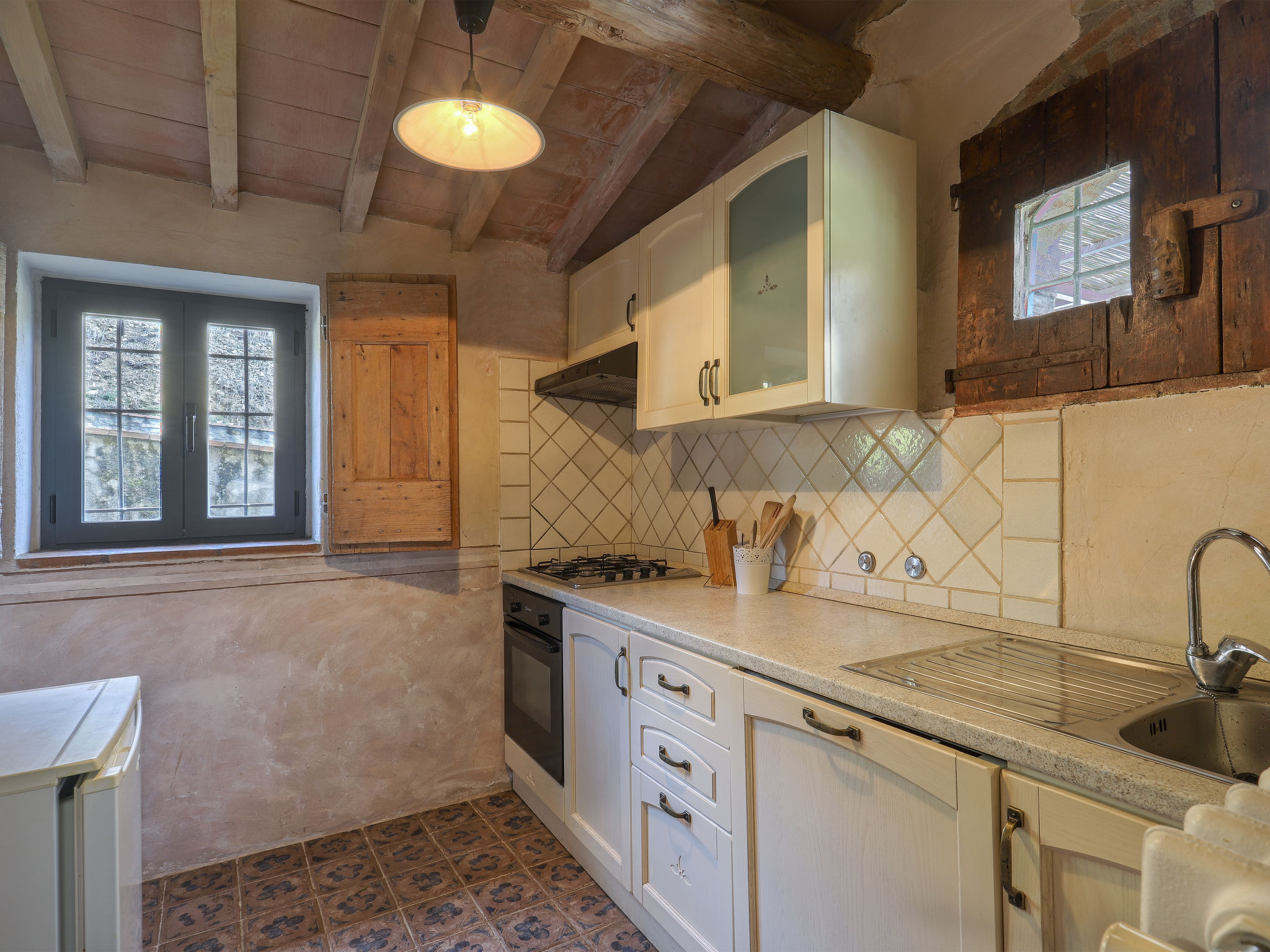 "Il Casino", 3-Zimmer-Haus 70 m2. Rustikal eingerichtet: Wohn-/Schlafzimmer mit 1 Diwanbett, Esstisch und Sat-TV. Ausgang zum Garten. 2 Zimmer, jedes Zimmer mit 1 franz. Bett (160 cm). Küche (Backofen, Geschirrspüler, 4 Flammen, elektrische Kaffeemaschine). Dusche, Dusche/WC. G-Heizung. Natursteinböden. Gartensitzplatz überdacht, Garten. Gartengrill. Zur Verfügung: Waschmaschine, Kinderhochstuhl, Babybett. Bitte beachten: Nichtraucher-Unterkunft. Maximal 1 Haustier/Hund erlaubt.