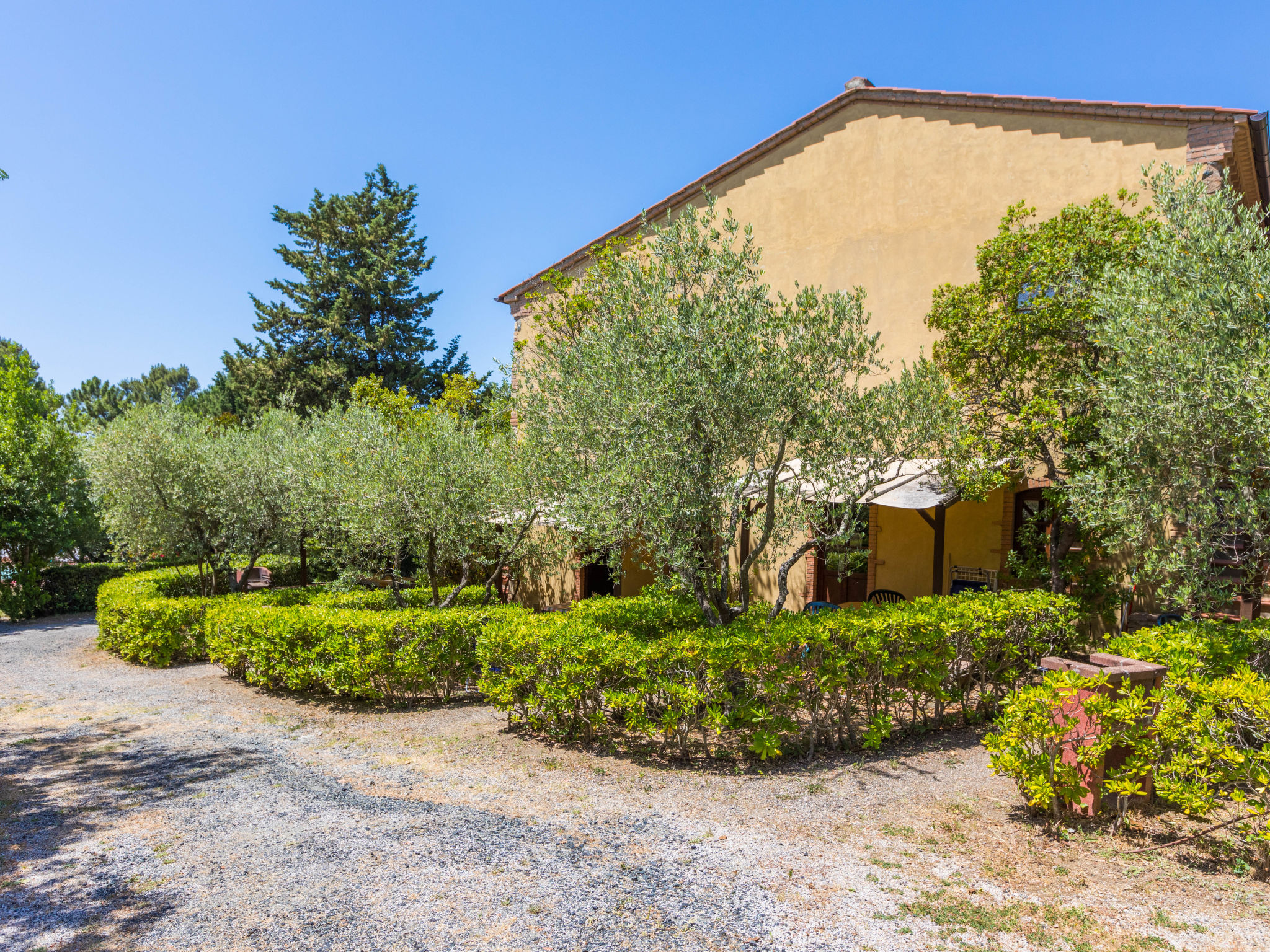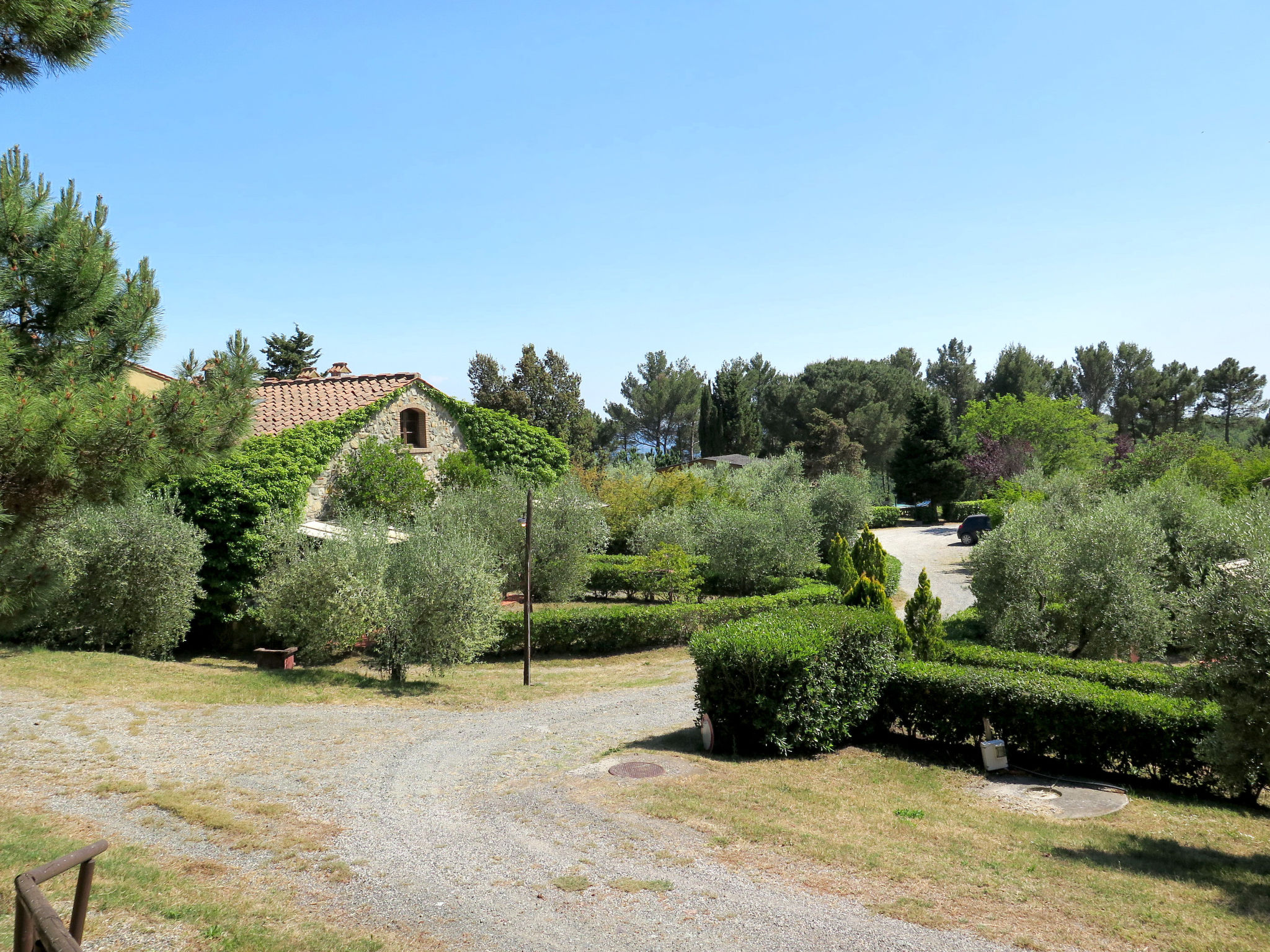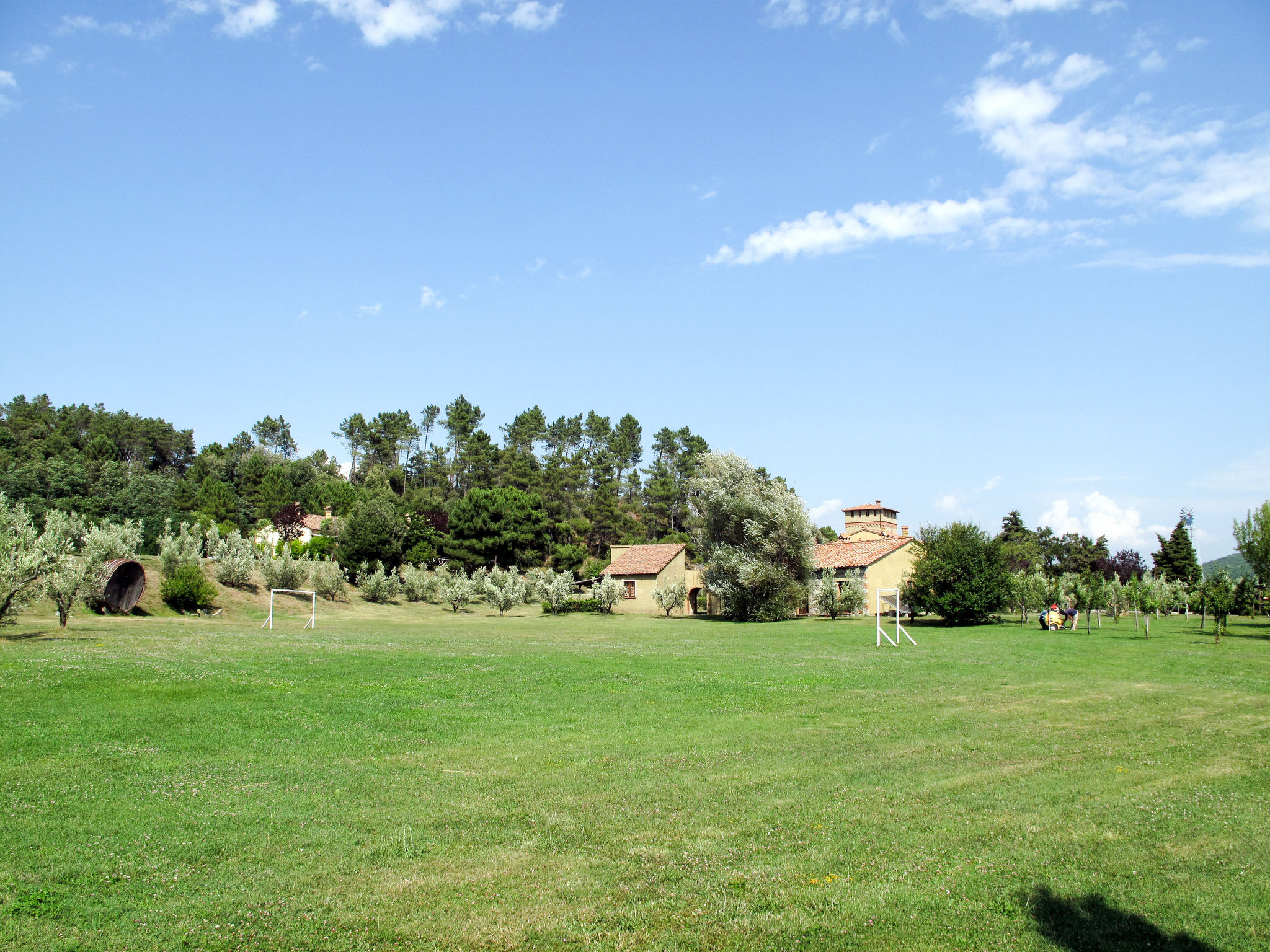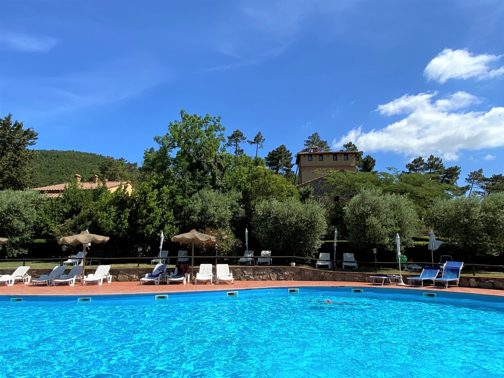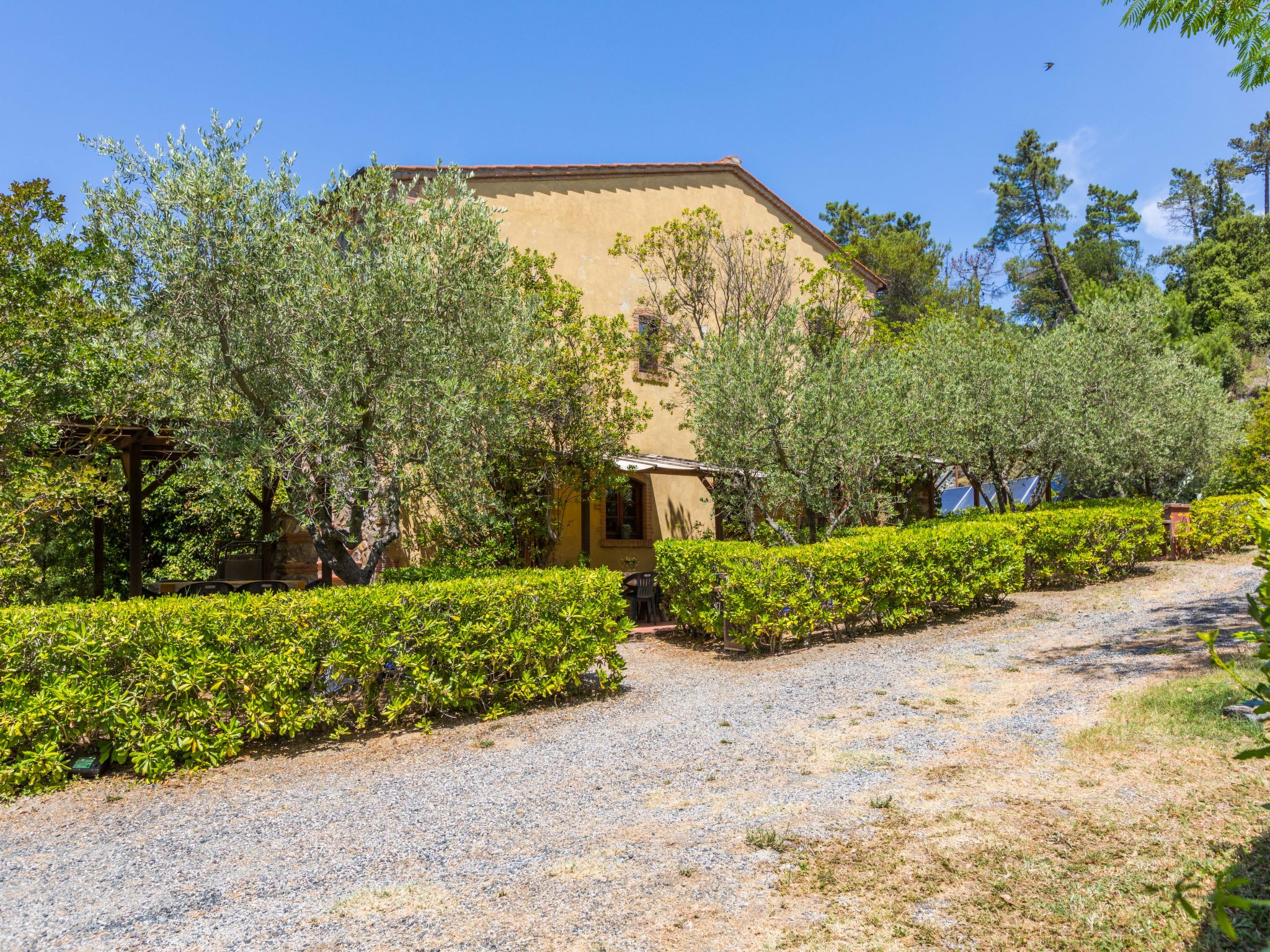 Kinderfreundliche, rustikale Ferienanlage, umgeben von Bäumen, Wiesen und Feldern. 6 Häuser in der Residenz. 40 Wohnungen in der Residenz. 3 km vom Zentrum von Riparbella, alleinstehende Lage auf einem Hügel, 15 km vom Meer, im Grünen. Zur Mitbenutzung: Grundstück 2000'000 m2 mit Pflanzen und Bäumen, Wiese, Schwimmbad nierenförmig (300 m2, saisonale Verfügbarkeit: 28.Mai.-17.Sep.). Kinderbecken, Aussendusche. In der Anlage: Empfang, Bar, Bistro, Wireless LAN, Waschmaschine (extra) (zur Mitbenutzung). Brötchenservice. Parkplatz auf dem Grundstück. Einkaufsgeschäft 3 km, Supermarkt 13 km, Sandstrand "Cecina Mare, Vada" 15 km. Das Foto ist nur ein Wohnungsbeispiel.