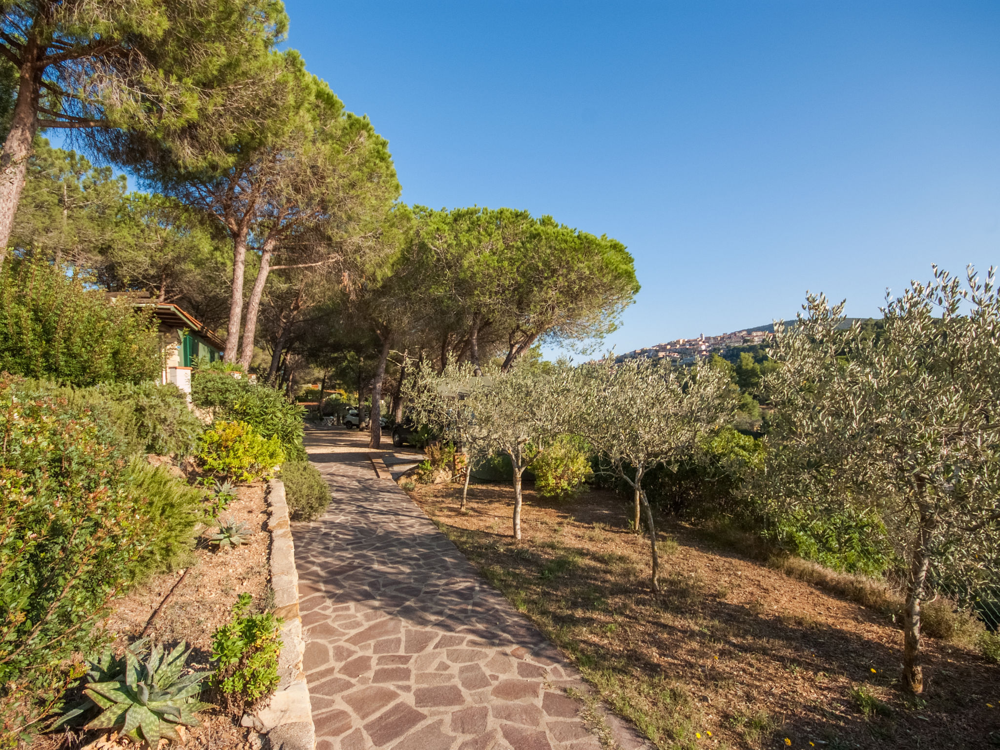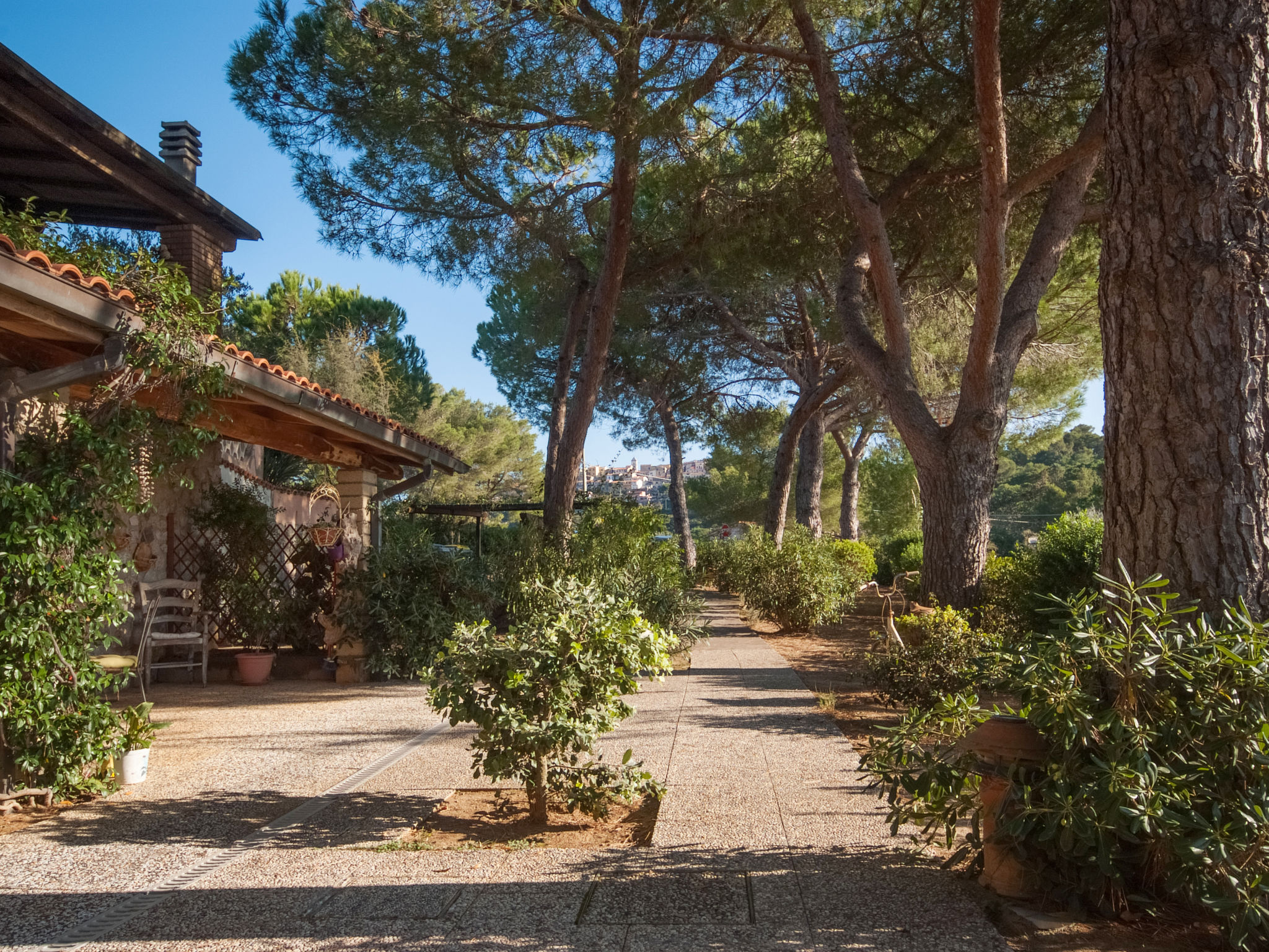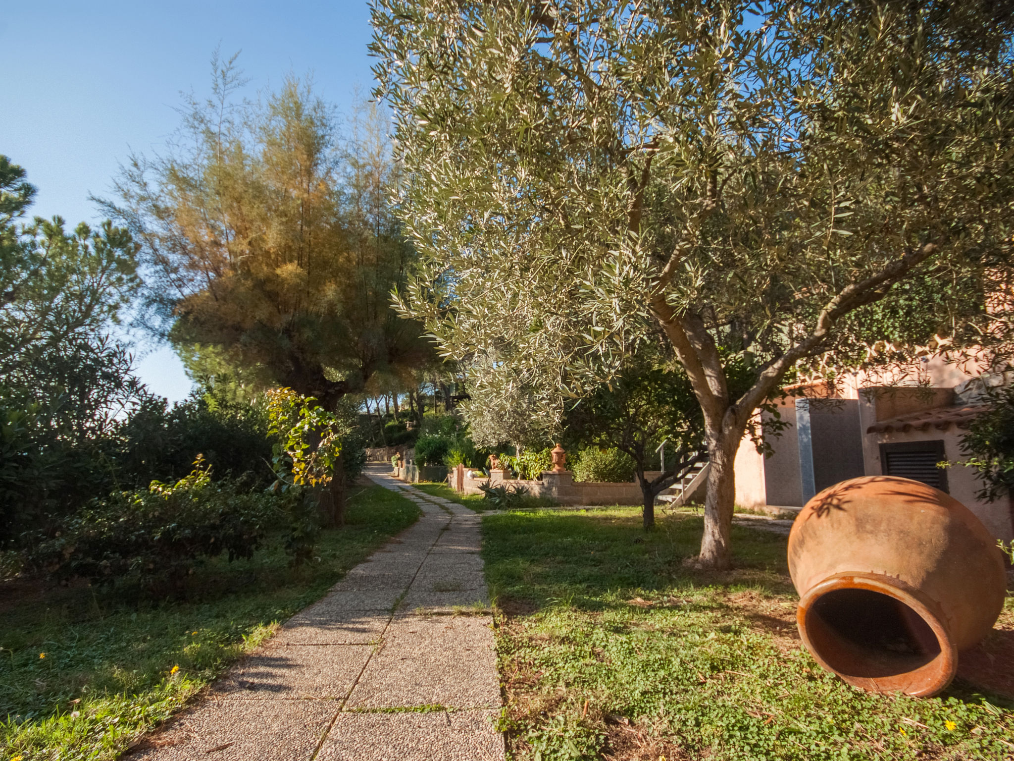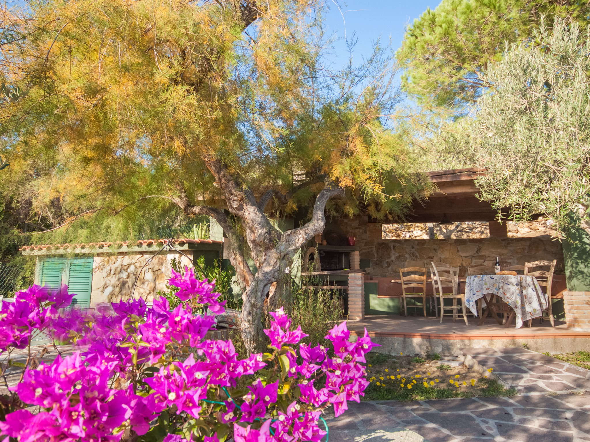 2-Zimmer-Haus 25 m2, im Erdgeschoss. Zweckmässig und gemütlich eingerichtet: 1 Zimmer mit 1 franz. Bett (150 cm), Ventilator. Wohnküche (2 Flammen) mit Esstisch, Internationale TV-Sender. Ausgang zur Terrasse. Dusche/Bidet/WC. Keine Heizmöglichkeit. Terrasse überdacht. Terrassenmöbel, Liegestühle (1). Sicht auf den Garten und das Meer. Zur Verfügung: Fliegengitter, Babybett, Haartrockner. Parkplatz Nr. 1. Bitte beachten: Nichtraucher-Unterkunft. Maximal 1 Haustier/Hund erlaubt.