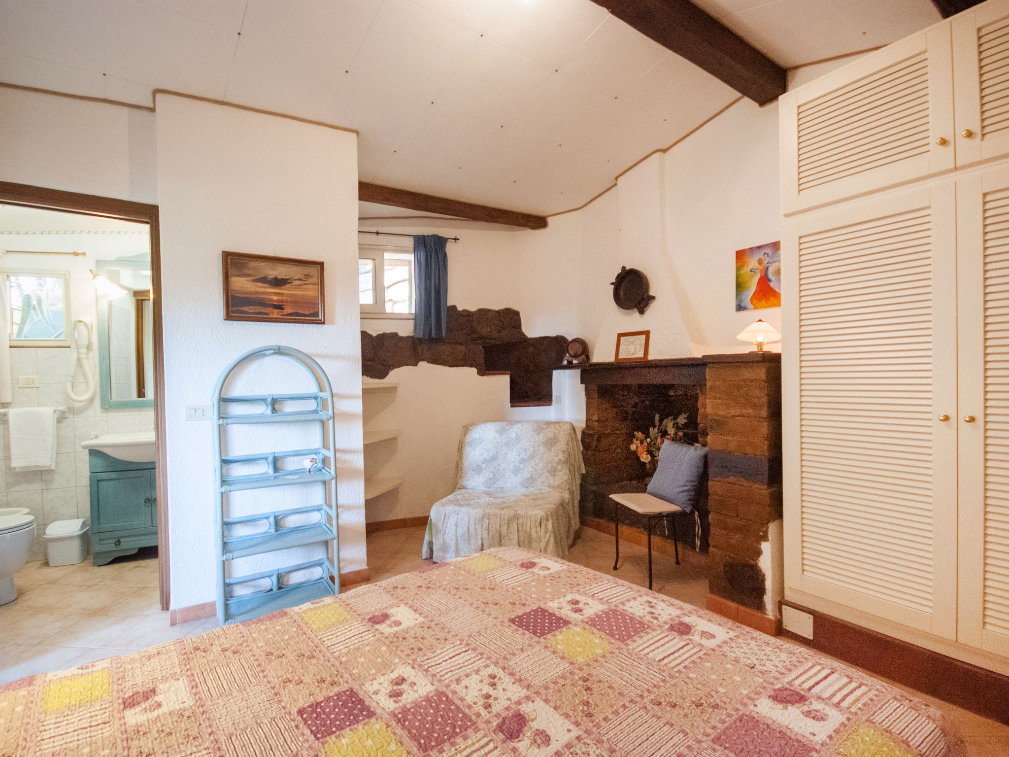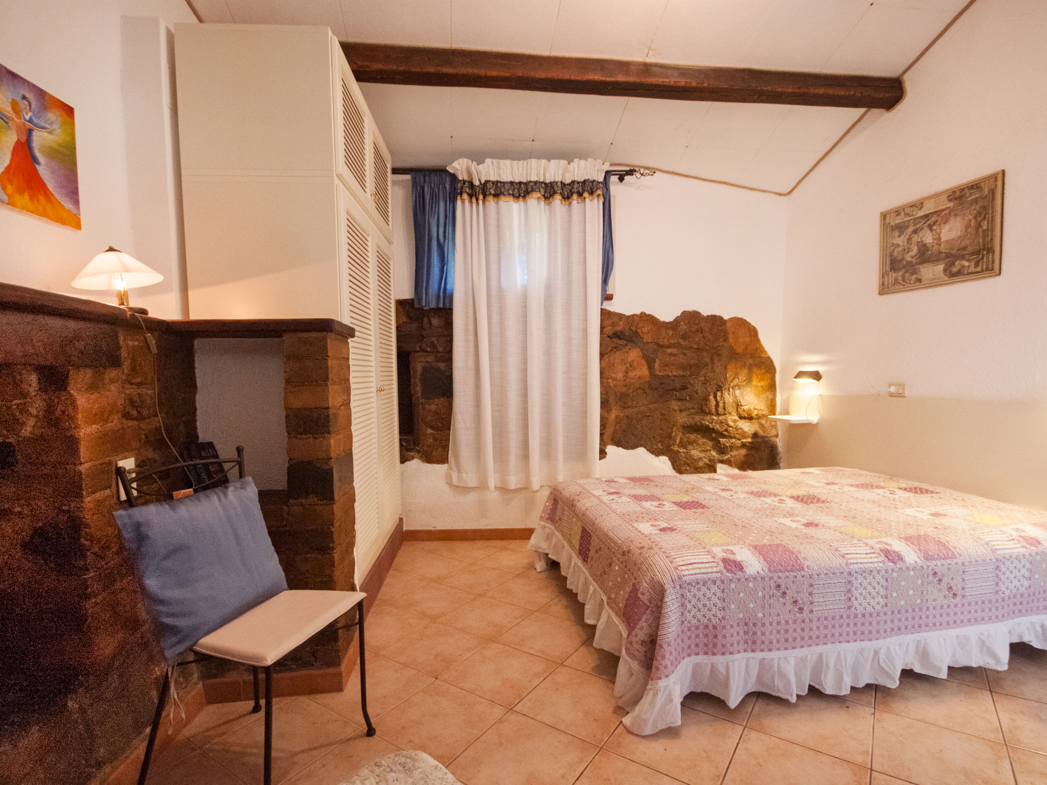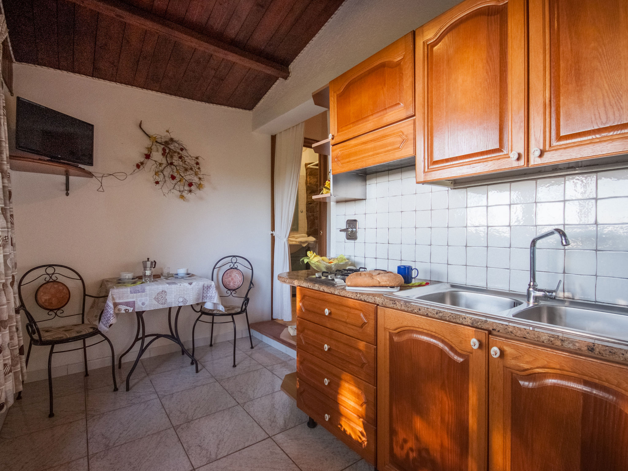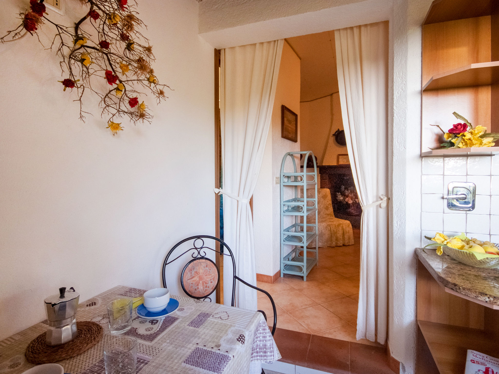 2-Zimmer-Haus 25 m2, im Erdgeschoss. Zweckmässig und gemütlich eingerichtet: 1 Zimmer mit 1 franz. Bett (150 cm), Ventilator. Wohnküche (2 Flammen) mit Esstisch, Internationale TV-Sender. Ausgang zur Terrasse. Dusche/Bidet/WC. Keine Heizmöglichkeit. Terrasse überdacht. Terrassenmöbel, Liegestühle (1). Sicht auf den Garten und das Meer. Zur Verfügung: Fliegengitter, Babybett, Haartrockner. Parkplatz Nr. 1. Bitte beachten: Nichtraucher-Unterkunft. Maximal 1 Haustier/Hund erlaubt.