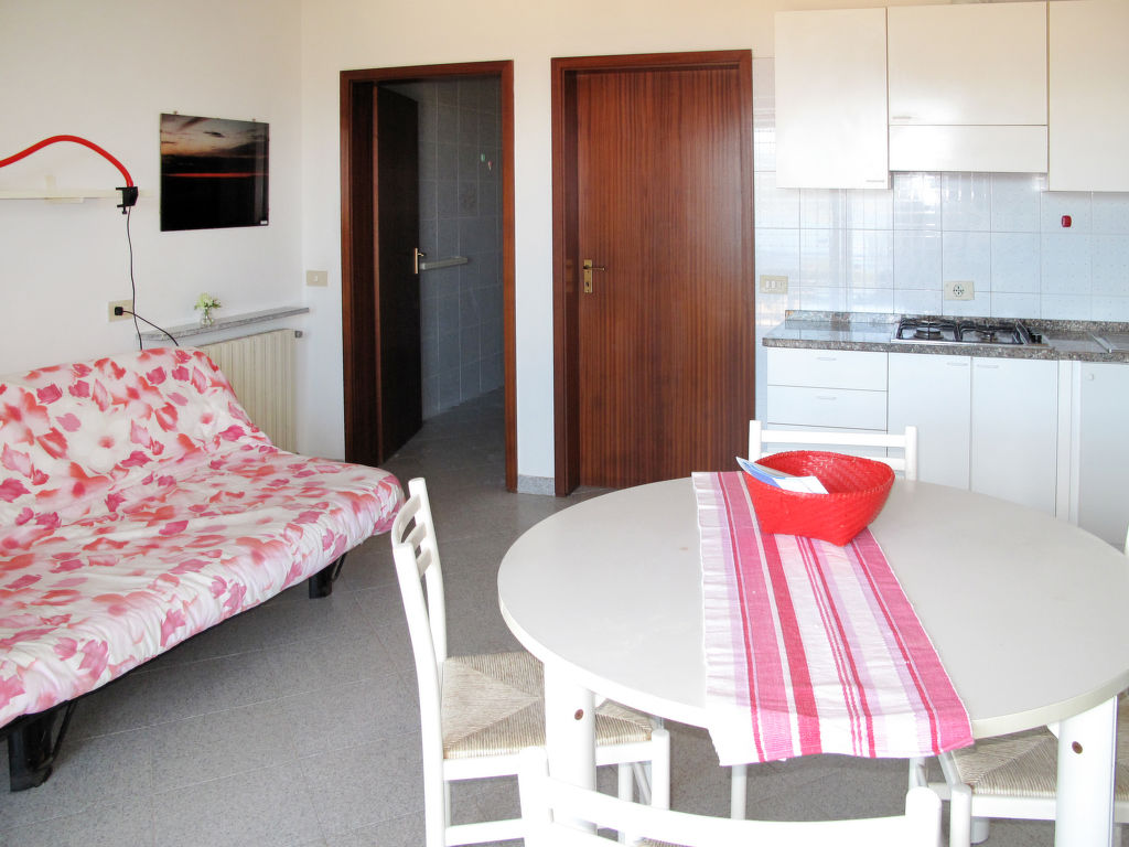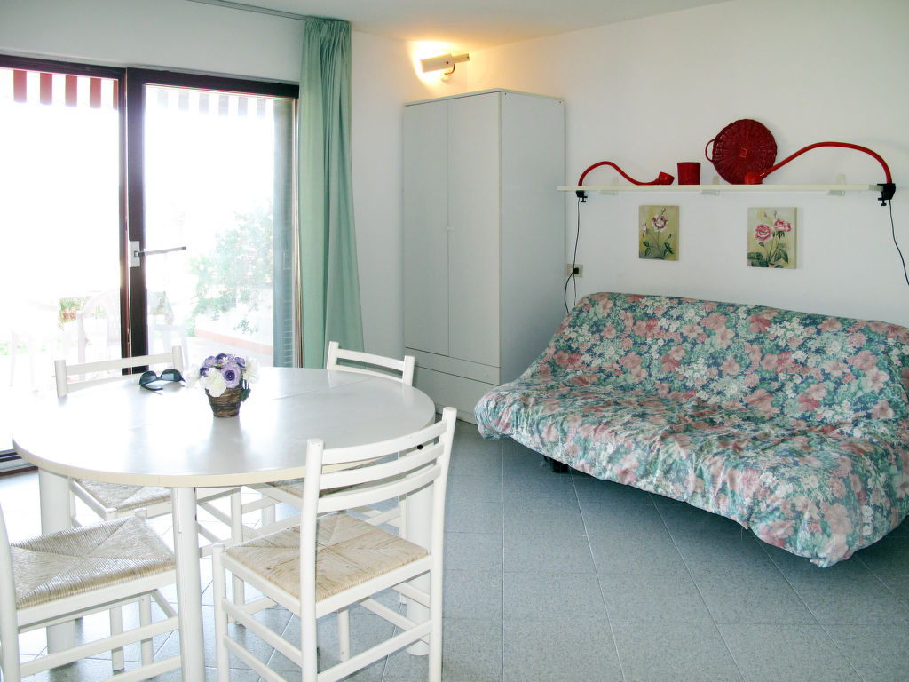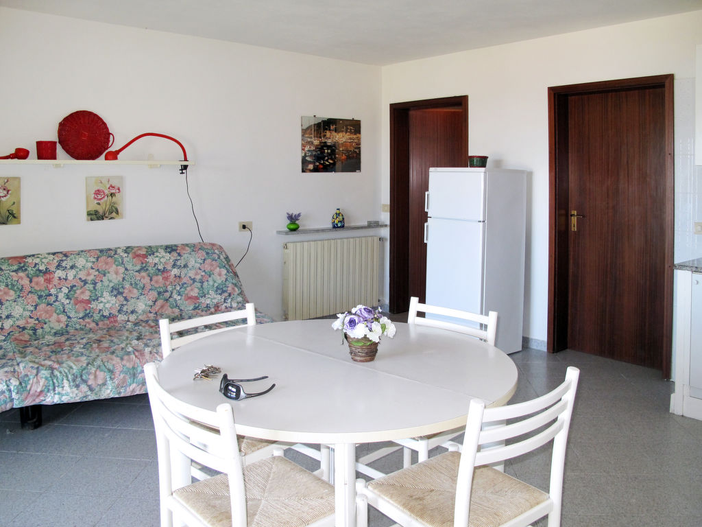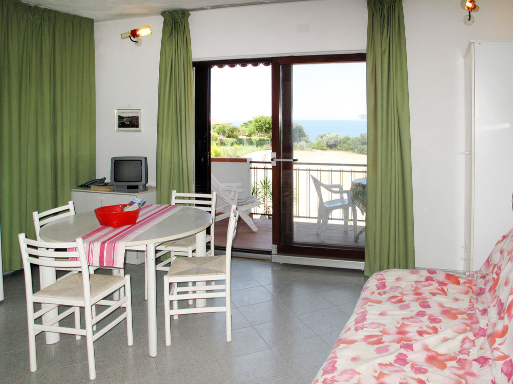 2-Zimmer-Wohnung 42 m2. Zweckmässig eingerichtet: Wohn-/Schlafzimmer mit 1 Doppeldiwanbetten, Esstisch und Sat-TV. 1 Zimmer mit 1 Doppelbett und Dusche/WC. Ausgang zum Balkon, zur Terrasse. Kochnische (4 Flammen). Keine Heizmöglichkeit. Balkon oder Terrasse. Terrassenmöbel. Schöne Sicht auf das Meer. Zur Verfügung: Safe, Babybett. Bitte beachten: eigener Eingang.