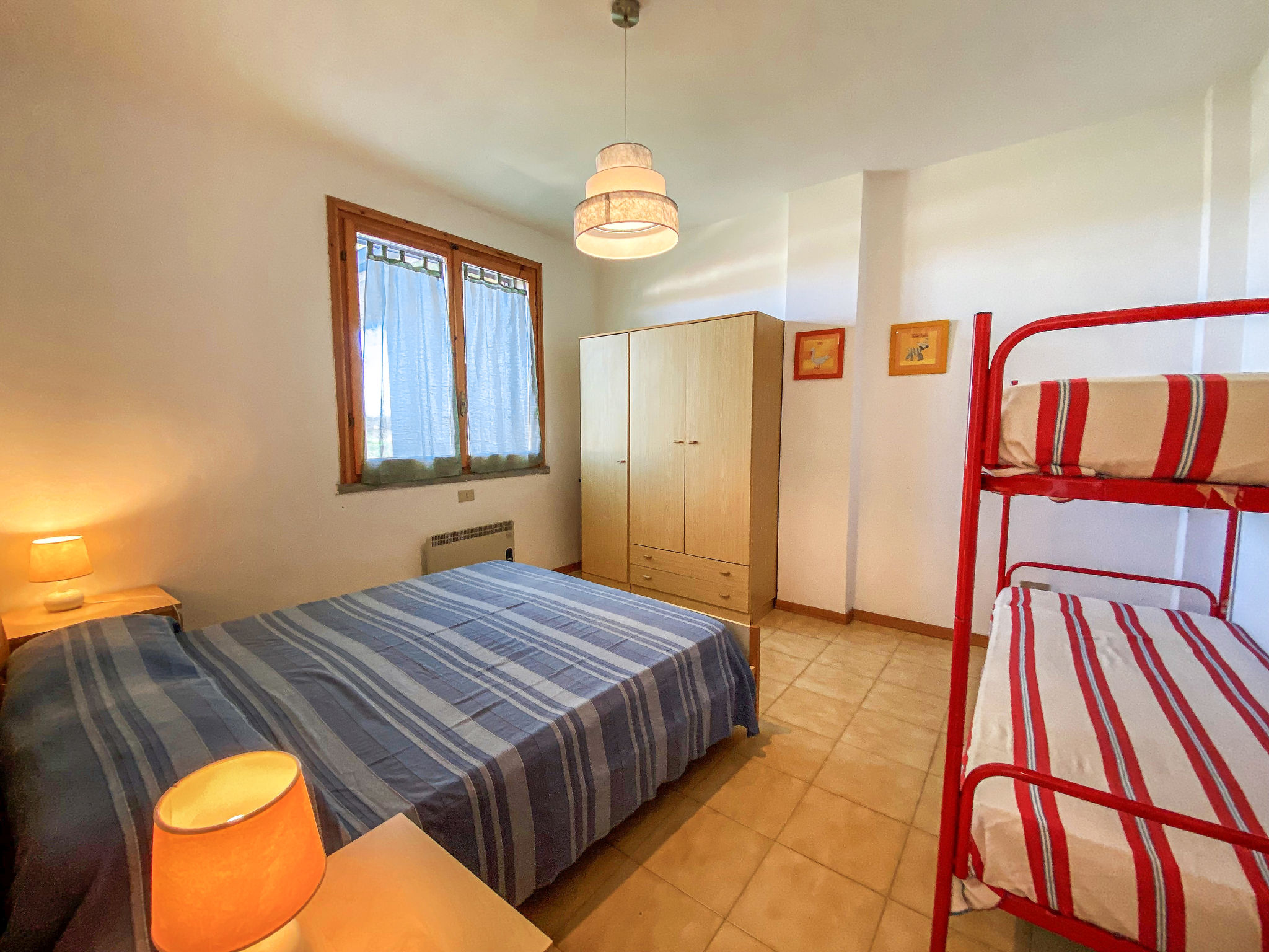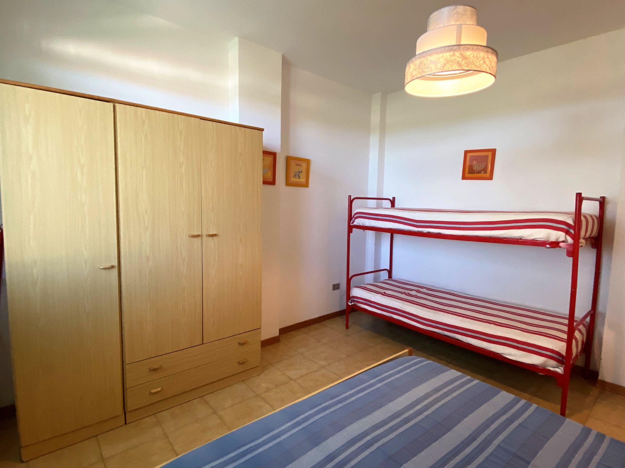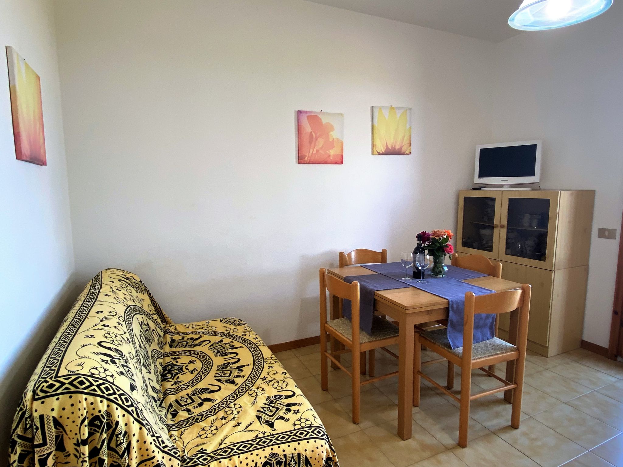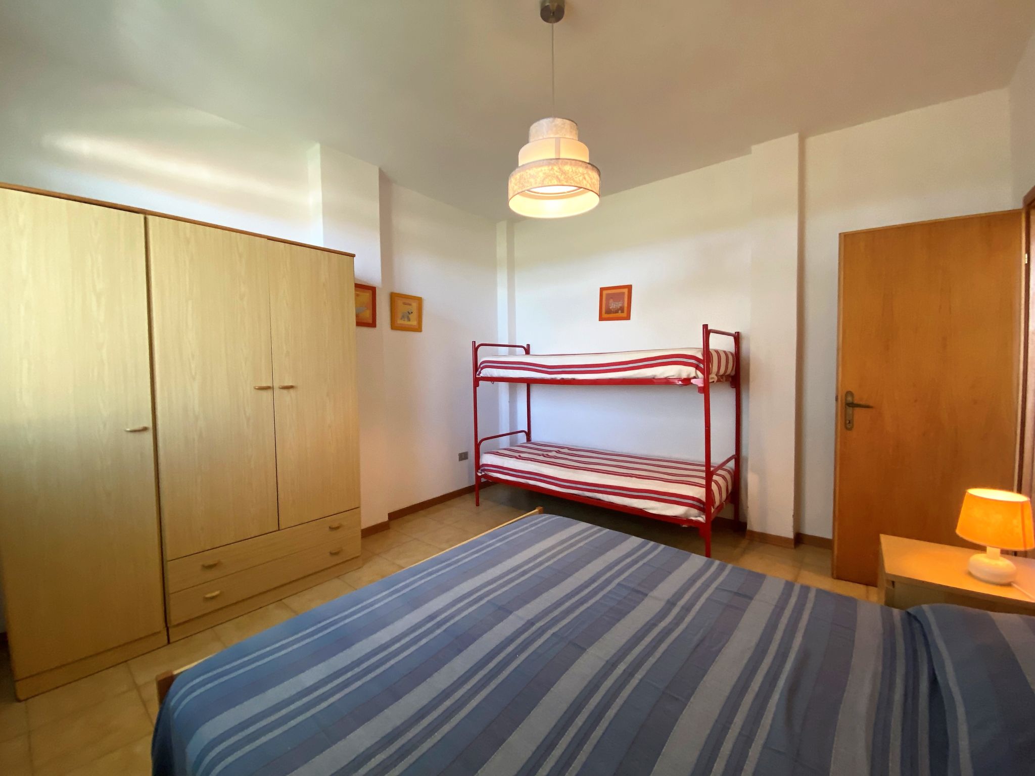 "Palazzeta II", 2-Zimmer-Wohnung 40 m2 im 1. Stock. Zweckmässig eingerichtet: Wohn-/Schlafzimmer mit 1 Diwanbett und Esstisch. 1 Zimmer mit 1 x 1 Etagenbetten (80 cm), 1 Doppelbett (80 cm). Kochnische (4 Flammen). Dusche/WC. E-Heizung. Terrasse. Terrassenmöbel. Zur Verfügung: Babybett. Parkplatz (1 Auto). 1 Haustier/Hund erlaubt.