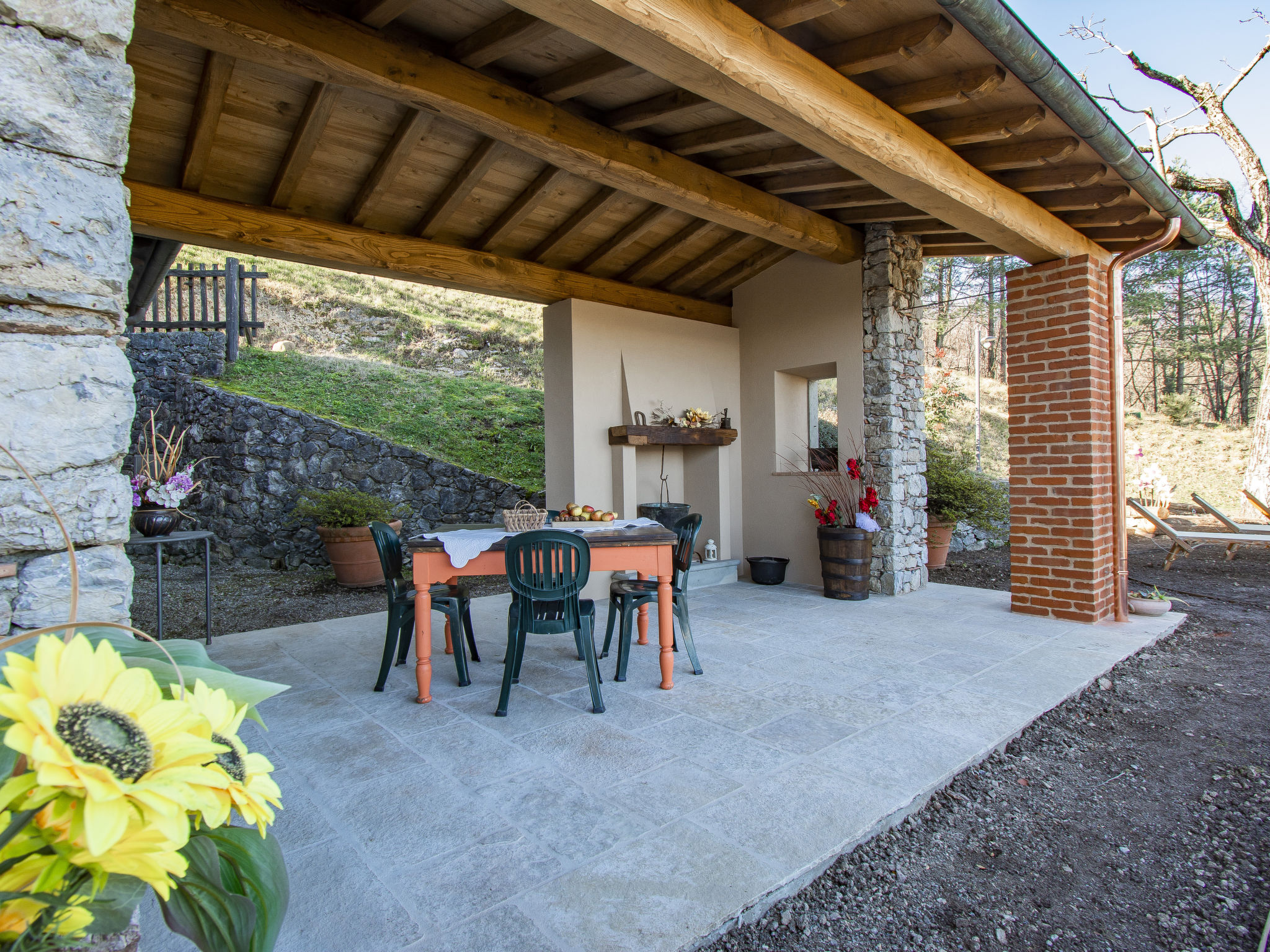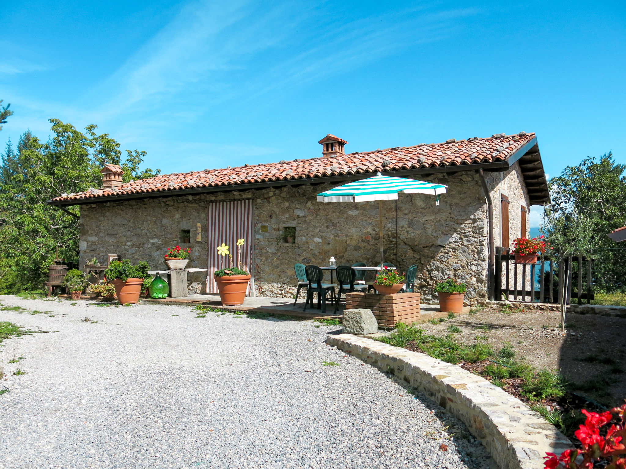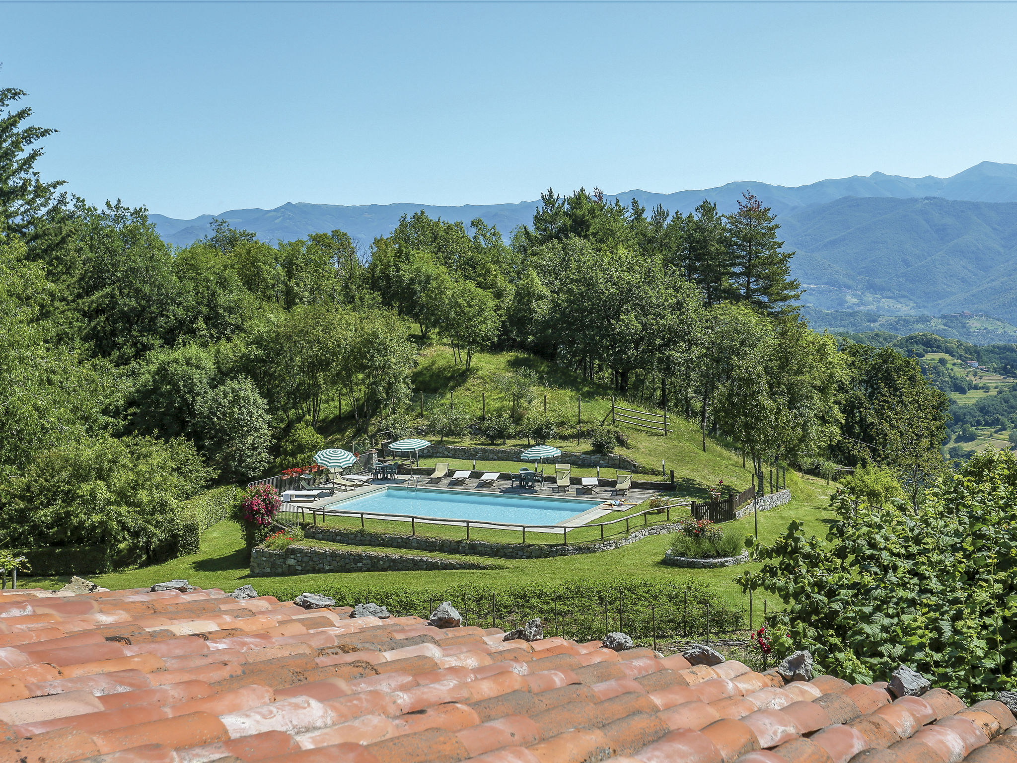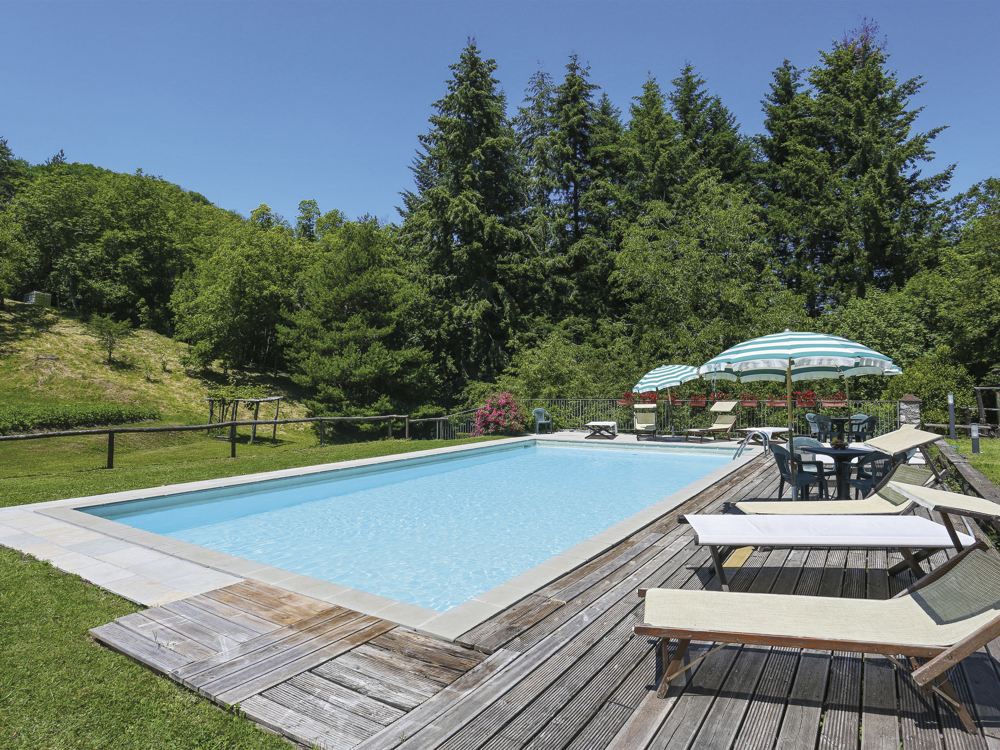 Molazzana 8 km von Casteln. di Garfagnana: Landsitz "Le Bore", 700 m.ü.M., umgeben von Bäumen und Wiesen. 2 Häuser im Ferienresort. 8 km vom Zentrum von Castelnuovo di Garfagnana, 47 km vom Zentrum von Lucca, 64 km vom Zentrum von Pisa, alleinstehende, ruhige Lage am Hang, 74 km vom Meer, im Grünen. Zur Mitbenutzung: Grundstück 50'000 m2 (eingezäunt), kleiner Garten mit Rasen und Pflanzen, Naturgarten, Wiese, Schwimmbad (12 x 6 m, saisonale Verfügbarkeit: 01.Mai.-01.Okt.). Dusche/WC im Poolbereich, Aussendusche, Grill. Im Hause: Waschmaschine (zur Mitbenutzung). 600 m lange schmale Zufahrt (Bergstrasse). Parkplatz auf dem Grundstück. Einkaufsgeschäft 5 km, Supermarkt 8 km, Sandstrand "Lido di Camaiore" 74 km. Ab Hof Verkauf von bäuerlichen Produkten.