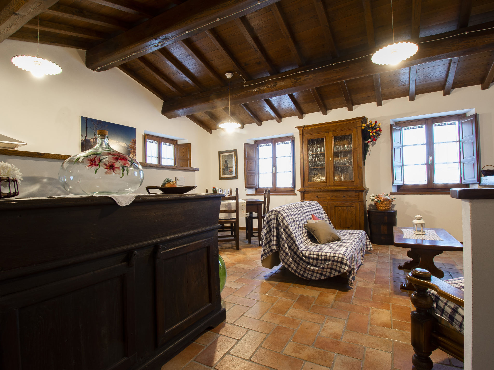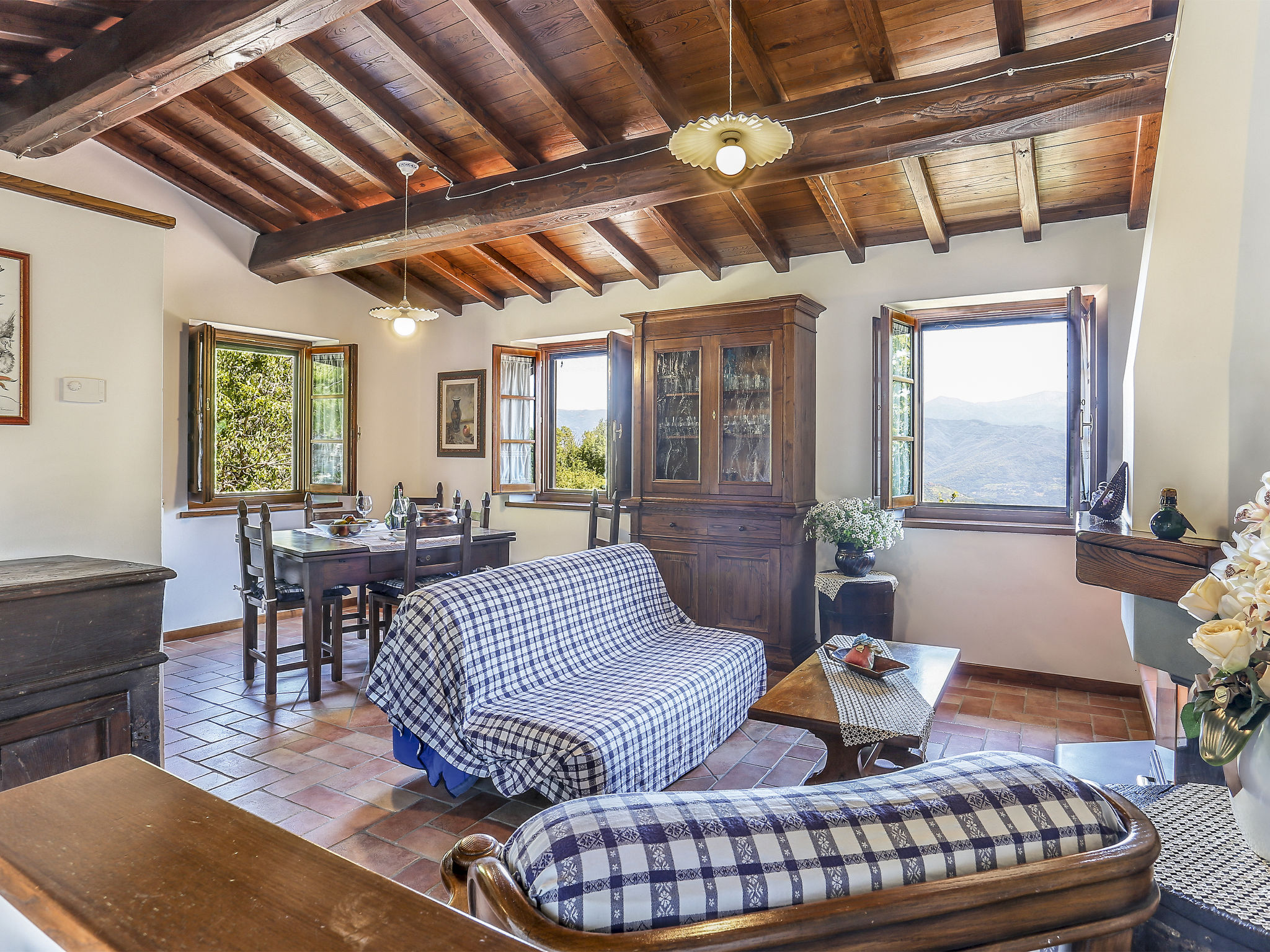 "Le Bore (CNG120)", 2-Zimmer-Wohnung 58 m2, im erhöhten Erdgeschoss. Einfach und rustikal eingerichtet: Wohn-/Schlafzimmer mit 1 Doppeldiwanbett, offenem Kamin, Esstisch, Sat-TV und Internationale TV-Sender. 1 Zimmer mit 1 franz. Bett (160 cm). Offene Küche (1 Kochplatte, Backofen, Geschirrspüler, Gasherd, 3 Flammen, Tiefkühler, elektrische Kaffeemaschine). Dusche/WC. G-Heizung. Gartensitzplatz. Herrliche Panoramasicht auf die Berge, das Tal und die Garfagnana. Zur Verfügung: Bügeleisen. Internet (Wireless LAN, gratis). Bitte beachten: Nichtraucher-Unterkunft. Eigener Eingang.