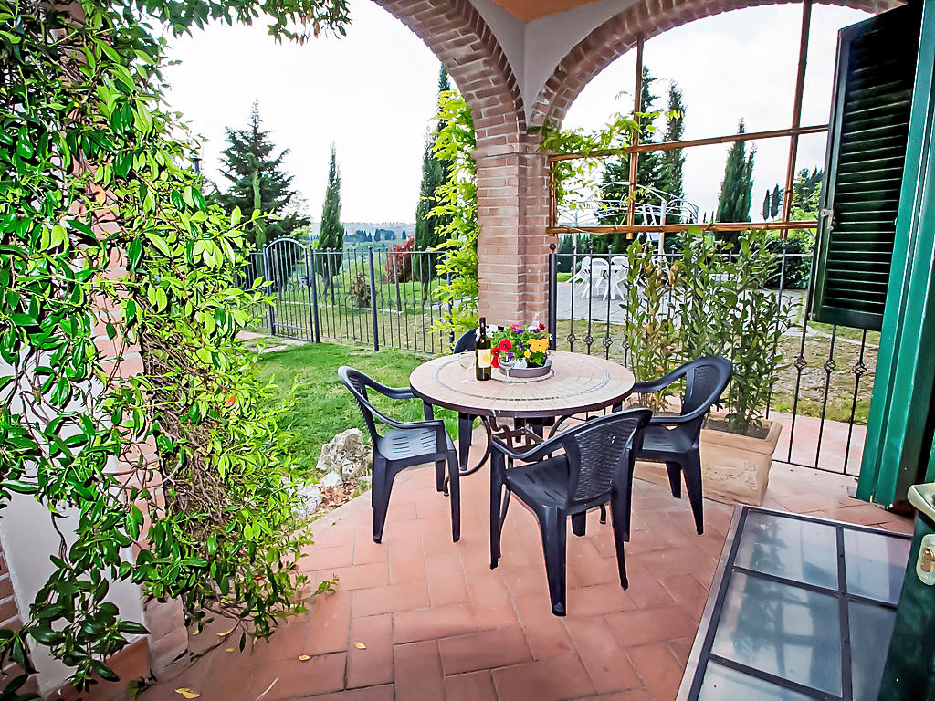 8 km von Montaione: Die Residenz I Calanchi liegt im Herzen der Toskana zwischen Florenz, Siena, Pisa, San Gimignano und Volterra und an Hügellage am Ortsrand von Sughera (Montaione). Umgeben von hohen Zypressen, Wiesen, Getreidefeldern, Olivenhainen und dem mediterranen Wald ist es ideal gelegen für alle, die Erholung suchen und Liebhaber von Meer, Bergen und Kunststädten sind. Die Feriensiedlung bietet insgesamt 16 separate Wohnungen an, wovon 13 in unserem Angebot sind. Den Gästen steht eine ausgestattete Laube zur Verfügung, um im Freien zu frühstücken. Mountain-Bike-Vermietung an Ort. Für Fahrrad- und Wander-Begeisterte gibt es ein weitverzweigtes Wegnetz. Zahlreiche Restaurants in der Gegend. Residenz "I Calanchi", 341 m.ü.M.. 25 km vom Zentrum von S. Gimignano, Certaldo, 30 km vom Zentrum von Volterra, 50 km vom Zentrum von Firenze, Pisa. Zur Mitbenutzung: Garten, Schwimmbad (16 x 8 m, 150 - 150 cm tief, saisonale Verfügbarkeit: 09.Apr.-15.Okt.). Kinderbecken, Aussendusche, Tischtennis, Boccia, Volleyballfeld, Terrasse, Gartenmöbel, Grill. Im Hause: Empfang, Internetzugang (alles inkl.), Waschmaschine (extra), Heizung vor Ort zu zahlen (01.11.-15.04.), Heizung nur verfügbar von 01.11. bis 15.04.. Brötchenservice auf Anfrage (extra). Parkplatz beim Haus. Lebensmittelgeschäft 3 km, Supermarkt 8 km, Restaurant 3 km, Bar 3 km, Bahnstation "Castelfiorentino" 15 km. Golfplatz 10 km, Reitstall 2 km. Nahe gelegene Sehenswürdigkeiten: Pisa 57 km, Volterra 35 km, Firenze 62 km, Lucca 57 km, Siena 67 km, San Gimignano 25 km.