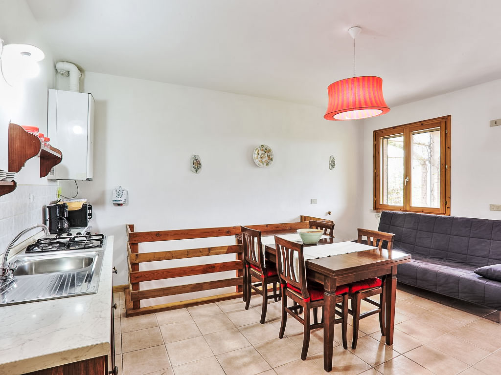 "Dalia", 3-Zimmer-Wohnung 65 m2, im Erdgeschoss. Wohn-/Esszimmer mit 1 Doppeldiwanbett (160 cm, Länge 190 cm), Sat-TV und Flachbildschirm. Ausgang zur Loggia. 1 Doppelzimmer. Kochnische (4 Kochplatten, Geschirrspüler, Mikrowelle, elektrische Kaffeemaschine). Dusche/Bidet/WC. Unteres Geschoss: 1 Zimmer, ohne Fenster mit 2 Betten und Dusche/Bidet/WC. Klimaanlage (extra). Garten 20 m2. Terrassenmöbel. Maximal 1 Haustier/Hund erlaubt.