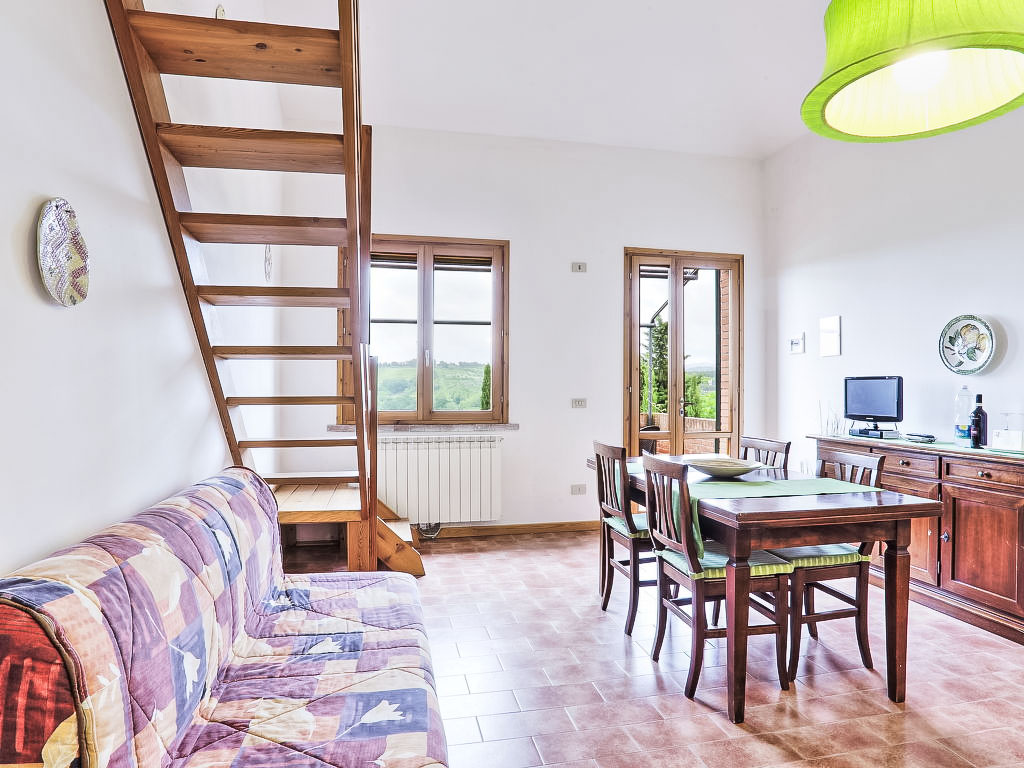 8 km von Montaione: Die Residenz I Calanchi liegt im Herzen der Toskana zwischen Florenz, Siena, Pisa, San Gimignano und Volterra und an Hügellage am Ortsrand von Sughera (Montaione). Umgeben von hohen Zypressen, Wiesen, Getreidefeldern, Olivenhainen und dem mediterranen Wald ist es ideal gelegen für alle, die Erholung suchen und Liebhaber von Meer, Bergen und Kunststädten sind. Die Feriensiedlung bietet insgesamt 16 separate Wohnungen an, wovon 13 in unserem Angebot sind. Den Gästen steht eine ausgestattete Laube zur Verfügung, um im Freien zu frühstücken. Mountain-Bike-Vermietung an Ort. Für Fahrrad- und Wander-Begeisterte gibt es ein weitverzweigtes Wegnetz. Zahlreiche Restaurants in der Gegend. Residenz "I Calanchi", 341 m.ü.M.. 25 km vom Zentrum von S. Gimignano, Certaldo, 30 km vom Zentrum von Volterra, 50 km vom Zentrum von Firenze, Pisa. Zur Mitbenutzung: Garten, Schwimmbad (16 x 8 m, 150 - 150 cm tief, saisonale Verfügbarkeit: 09.Apr.-15.Okt.). Kinderbecken, Aussendusche, Tischtennis, Boccia, Volleyballfeld, Terrasse, Gartenmöbel, Grill. Im Hause: Empfang, Internetzugang (alles inkl.), Waschmaschine (extra), Heizung vor Ort zu zahlen (01.11.-15.04.), Heizung nur verfügbar von 01.11. bis 15.04.. Brötchenservice auf Anfrage (extra). Parkplatz beim Haus. Lebensmittelgeschäft 3 km, Supermarkt 8 km, Restaurant 3 km, Bar 3 km, Bahnstation "Castelfiorentino" 15 km. Golfplatz 10 km, Reitstall 2 km. Nahe gelegene Sehenswürdigkeiten: Pisa 57 km, Volterra 35 km, Firenze 62 km, Lucca 57 km, Siena 67 km, San Gimignano 25 km.