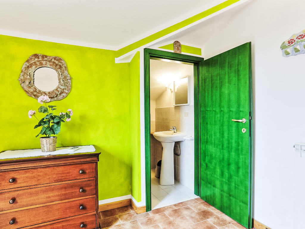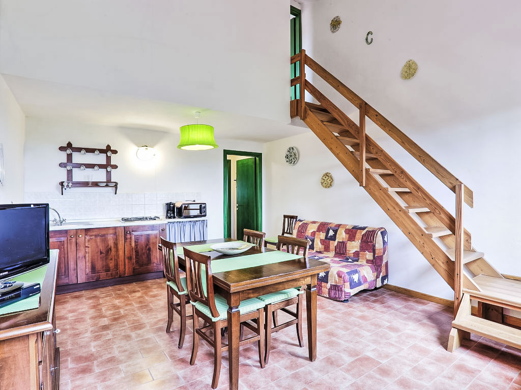 "Geranio", 3-Zimmer-Wohnung 58 m2 im 1. Stock. Wohn-/Esszimmer mit 1 Doppeldiwanbett, Sat-TV und Flachbildschirm. Ausgang zur Terrasse. 1 Doppelzimmer. Kochnische (4 Kochplatten, Geschirrspüler). Dusche/Bidet/WC. Obergeschoss: 1 abgeschrägtes Zimmer mit 1 Bett und sep. WC. Ausgang zum Balkon. Klimaanlage (extra). Terrasse 6 m2. Terrassenmöbel. Panoramasicht auf das Schwimmbad und die Landschaft. Zur Verfügung: Fliegengitter. Maximal 1 Haustier/Hund erlaubt.