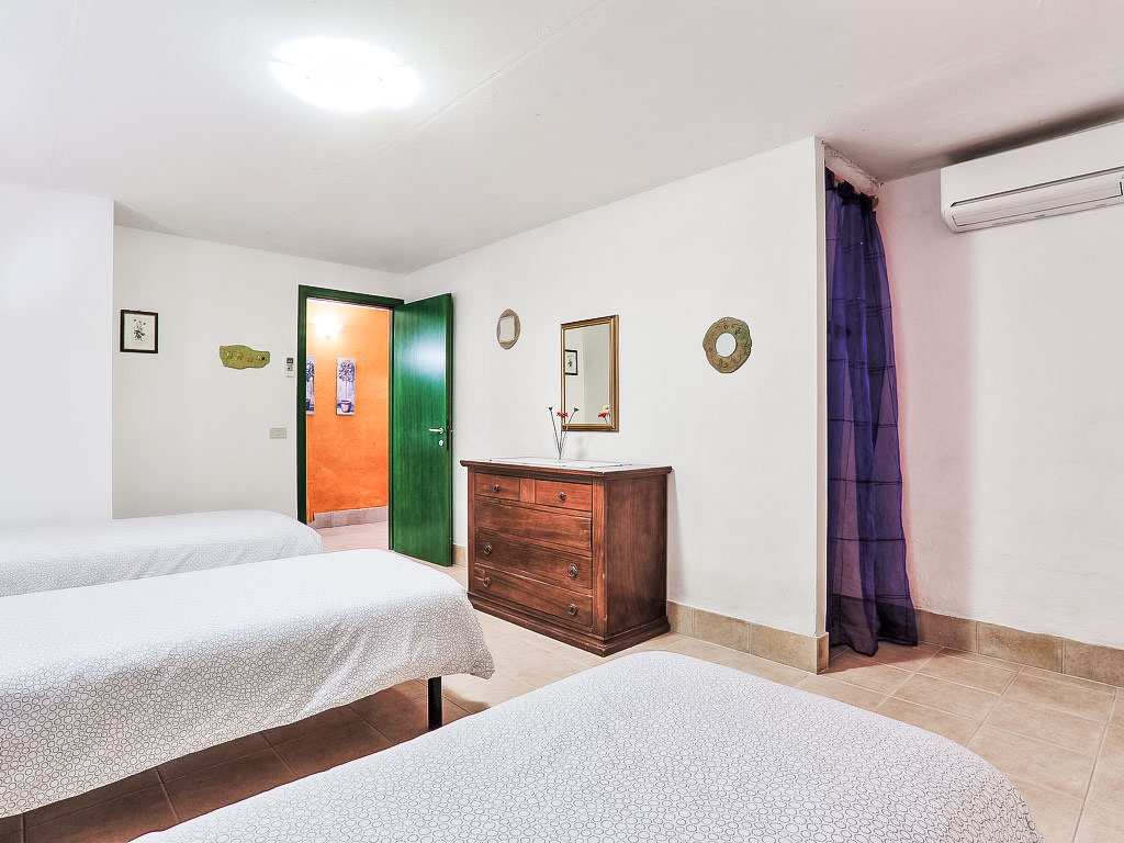 "Begonia", 3-Zimmer-Wohnung 65 m2, im Erdgeschoss. Wohn-/Esszimmer mit 1 Doppeldiwanbett (160 cm, Länge 190 cm), Sat-TV und Flachbildschirm. Ausgang zur Terrasse. 1 Doppelzimmer. Kochnische (4 Kochplatten, Geschirrspüler, Mikrowelle, elektrische Kaffeemaschine). Dusche/Bidet/WC. Unteres Geschoss: 1 Zimmer, ohne Fenster mit 2 Betten und Dusche/Bidet/WC. Klimaanlage (extra). Garten 20 m2. Terrassenmöbel. Maximal 1 Haustier/Hund erlaubt.
