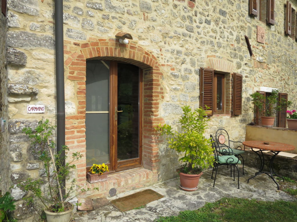 Bauerngut "Podere Calmaino". Im Ortsteil Pignano, 14 km vom Zentrum von Volterra, 12 km vom Zentrum von Colle Val d'Elsa, 18 km vom Zentrum von San Gimignano, 55 km vom Meer, 30 m vom Fluss. Zur Mitbenutzung: Grundstück, Bäumen, Wiese. Zur Alleinbenutzung: Sitzplatz, Gartenmöbel. Zufahrt (2 km Naturweg). Parkplatz beim Haus. Einkaufsgeschäft 5 km, Supermarkt 16 km, Sandstrand 55 km, Hallenbad 16 km. Bitte beachten: Der Besitzer wohnt im selben Haus.