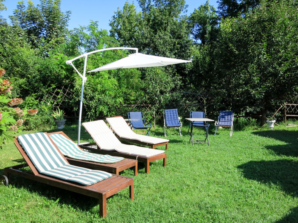 Alleinstehender Landsitz "La Meridiana", umgeben von Wiesen und Weinbergen. 2 Wohnungen in der Residenz. Im Ortsteil Torrazzo, 2 km vom Zentrum von San Damiano d'Asti, 15 km vom Zentrum von Asti, 25 km vom Zentrum von Alba, auf einem Hügel, im Grünen. Zur Mitbenutzung: Grundstück 3'000 m2, Garten mit Pflanzen, Wiese, Aufstellpool (10 x 5 m, 130 cm tief, saisonale Verfügbarkeit: 01.Jun.-15.Sep.). Dusche/WC im Poolbereich, Sitzplatz, Laube, Poolpflege durch den Besitzer/Gärtner, Parkplatz auf dem Grundstück. Supermarkt 2 km, Bahnstation "Asti" 15 km, Freibad 2 km. Der Besitzer akzeptiert keine Jugendgruppen. Die Residenz wird durch elektrische Tore geschlossen. Badekappenpflicht.