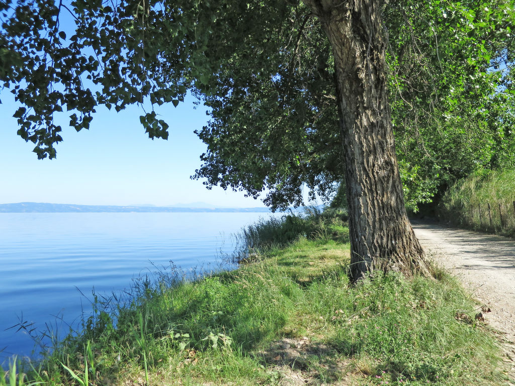 Einfacher, komfortabler Agriturismo "Monterotondo", umgeben von Feldern. 3 Wohnungen im Ferienhaus. 6 km vom Zentrum von Montefiascone, 100 km vom Zentrum von Roma, 50 km vom Meer, 30 m vom See. Zur Mitbenutzung: Grundstück 25'000 m2 (eingezäunt), gepflegter Garten mit Rasen und Bäumen. Grill. Im Hause: Waschmaschine (zur Mitbenutzung, extra). Brötchenservice. 1 km lange Zufahrt (Naturweg). Parkplatz auf dem Grundstück. Supermarkt 6 km, Restaurant 120 m, Bahnstation "Montefiascone" 10 km, Kieselstrand 30 m, Thermalbad "Pitigliano" 40 km. Nahe gelegene Sehenswürdigkeiten: Marta 8 km, Capodimonte 12 km, Bolsena 12 km, Viterbo 22 km. Ab Hof Verkauf von bäuerlichen Produkten.
