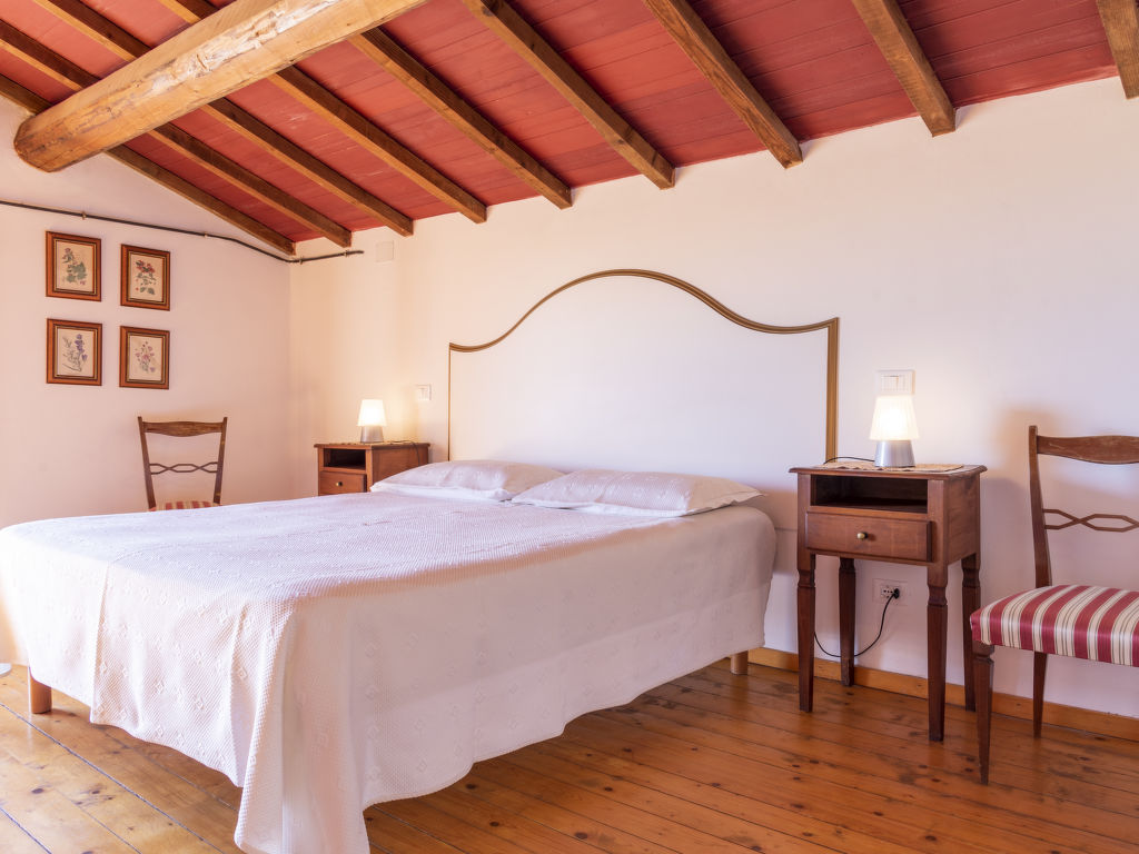 "Vecchio Mulino", 3-Zimmer-Haus 200 m2 auf 2 Stockwerken. Rustikal eingerichtet: Wohn-/Schlafzimmer mit 1 Doppeldiwanbett, offenem Kamin und Sat-TV. Ausgang zum Garten. Küche (Backofen, Geschirrspüler, 4 Flammen, Toaster, Mikrowelle, Tiefkühler) mit Esstisch. Sep. WC. Obergeschoss: (Wendeltreppe) 1 Zimmer mit 1 Bett, 1 Doppelbett, Dusche/Bidet/WC und Klimaanlage. Ausgang zur Terrasse. 1 Zimmer mit (170 cm), 1 Doppelbett, Bad/Dusche/Bidet/WC und Klimaanlage. Ausgang zum Balkon. Ölheizung. Holzböden. Balkon. Panoramasicht. Zur Verfügung: Bügeleisen, Babybett. Internet (Wireless LAN, gratis). Bitte beachten: Nichtraucher-Unterkunft. 1 Haustier/Hund erlaubt.