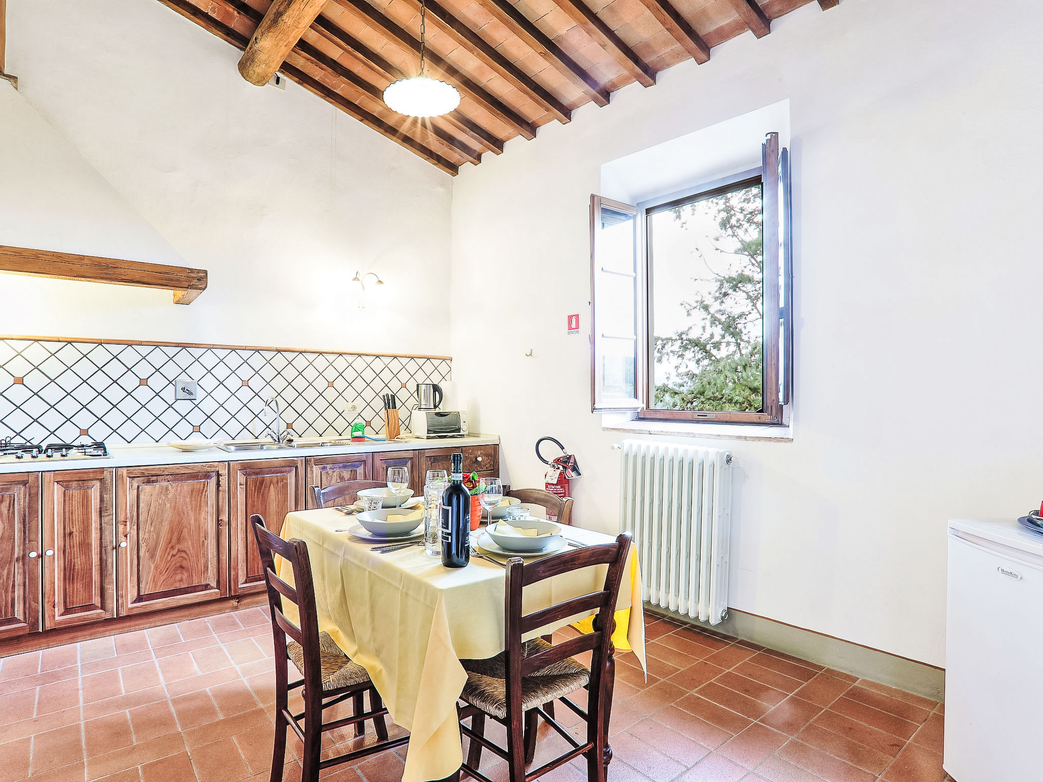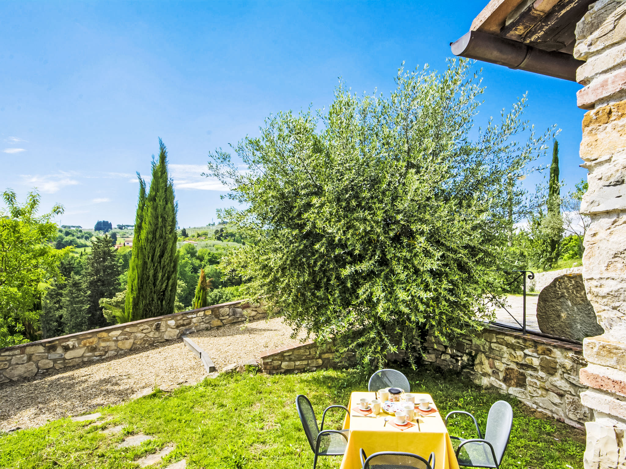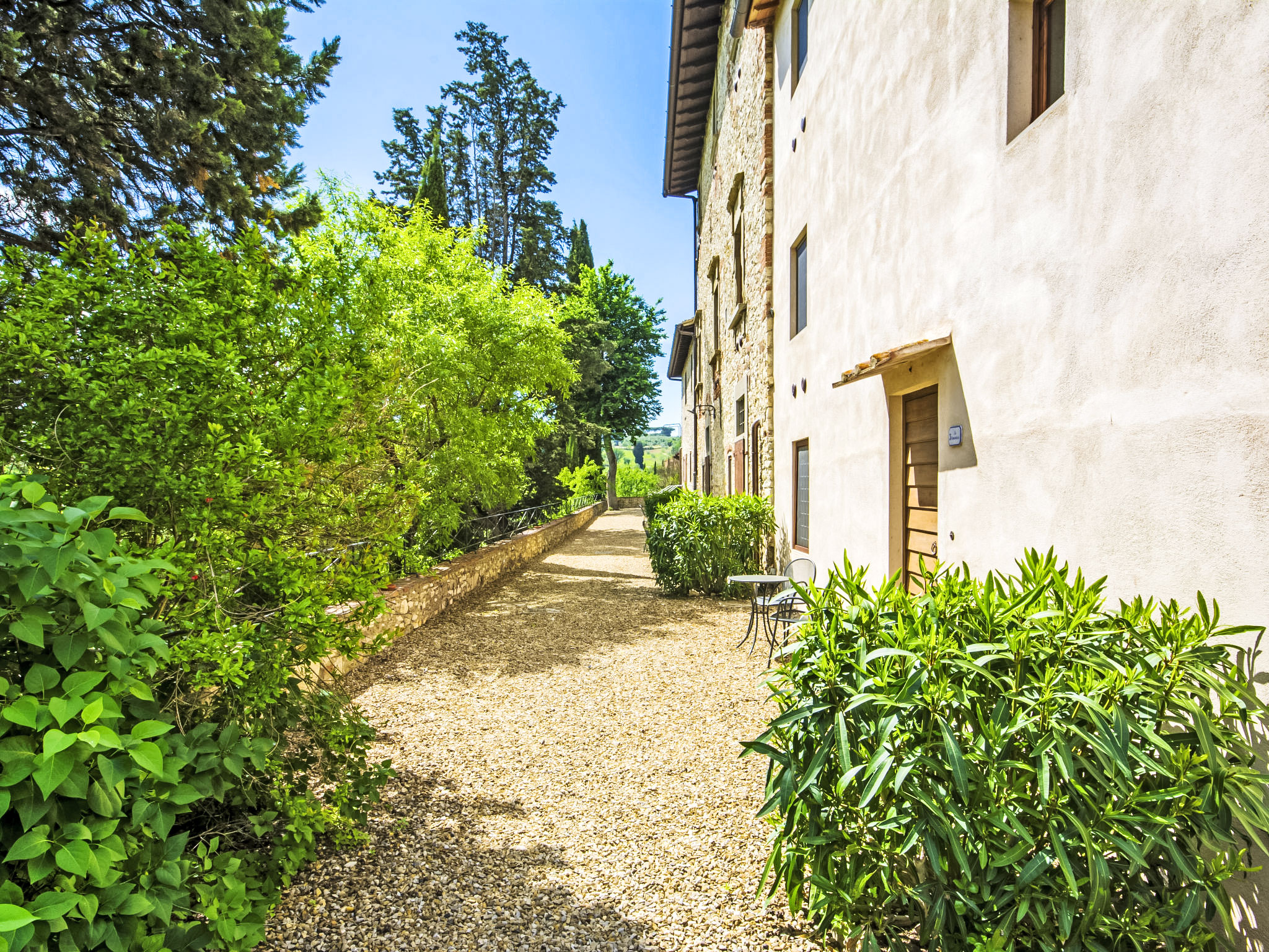 10 km von Firenze: Das Ferienlandgut Borgo Bottaia ist ein alter Weiler aus dem 17.Jh., an einem Hügel gelegen welcher Florenz umgibt. Das Anwesen liegt in einer von Olivenhainen, Rebbergen und Zypressen geprägten Landschaft. Das Haus wurde vollständig renoviert, wobei die ursprüngliche Bauweise des typischen Landhauses beibehalten wurde. Borgo Bottaia verfügt über 15 Wohnungen, alle mit einem sep. Eingang versehen und geschmackvoll eingerichtet. Grosser Privat-Parkplatz mit CCTV-Überwachungskameras. Das Landgut befindet sich in einem grossen Garten, ideal um sich zu entspannen und Spaziergänge zu unternehmen. Das herrliche Schwimmbecken mit Panoramasicht, Hydromassage und das Sonnendeck liegen nur wenige Meter von den Wohnungen entfernt. Feriensiedlung "Il Borgo", renoviert im Jahre 2009. 15 Wohnungen im Ferienhaus. 10 km vom Zentrum von Firenze, 19 km vom Zentrum von Greve in Chianti, 70 km vom Zentrum von Siena, erhöhte Lage auf einem Hügel, im Grünen. Zur Mitbenutzung: Garten (eingezäunt), Schwimmbad (14 x 7 m, 140 cm tief, saisonale Verfügbarkeit: 05.Mai.-29.Sep.). Aussendusche, Gartenmöbel, Kinderspielplatz. In der Anlage: Empfang, Wireless LAN, Waschmaschine (zur Mitbenutzung), Heizung vor Ort zu zahlen (01.11.-15.04.), Heizung nur verfügbar von 01.11. bis 15.04.. Zufahrt bis zum Haus (200 m Naturweg). Parkplatz beim Haus. Einkaufsgeschäft 1 km, Lebensmittelgeschäft 1 km, Supermarkt 1 km, Restaurant 1 km, Bar 1 km, Bushaltestelle "Grassina 31 - 32" 1 km, Sandstrand "Versilia" 120 km. Golfplatz (18 Loch) 4 km, Tennishalle 7 km. Nahe gelegene Sehenswürdigkeiten: Fiesole 14 km, San Casciano in Val di Pesa 20 km, Panzano 27 km, Outlet The Mall 30 km, Pisa 95 km.