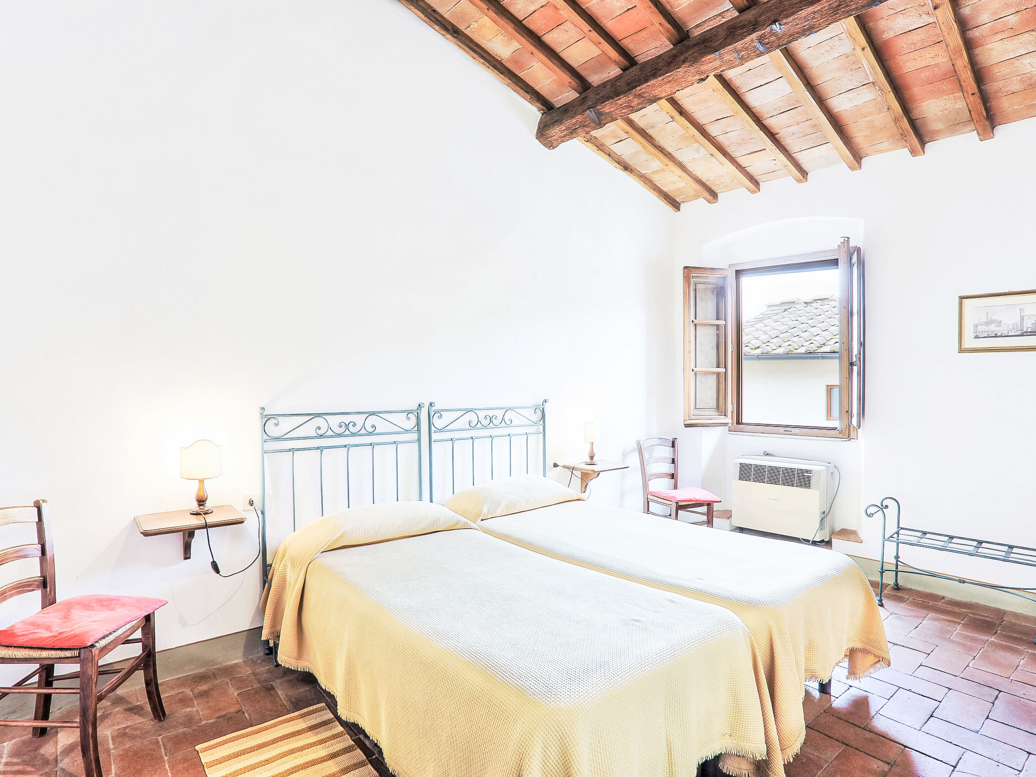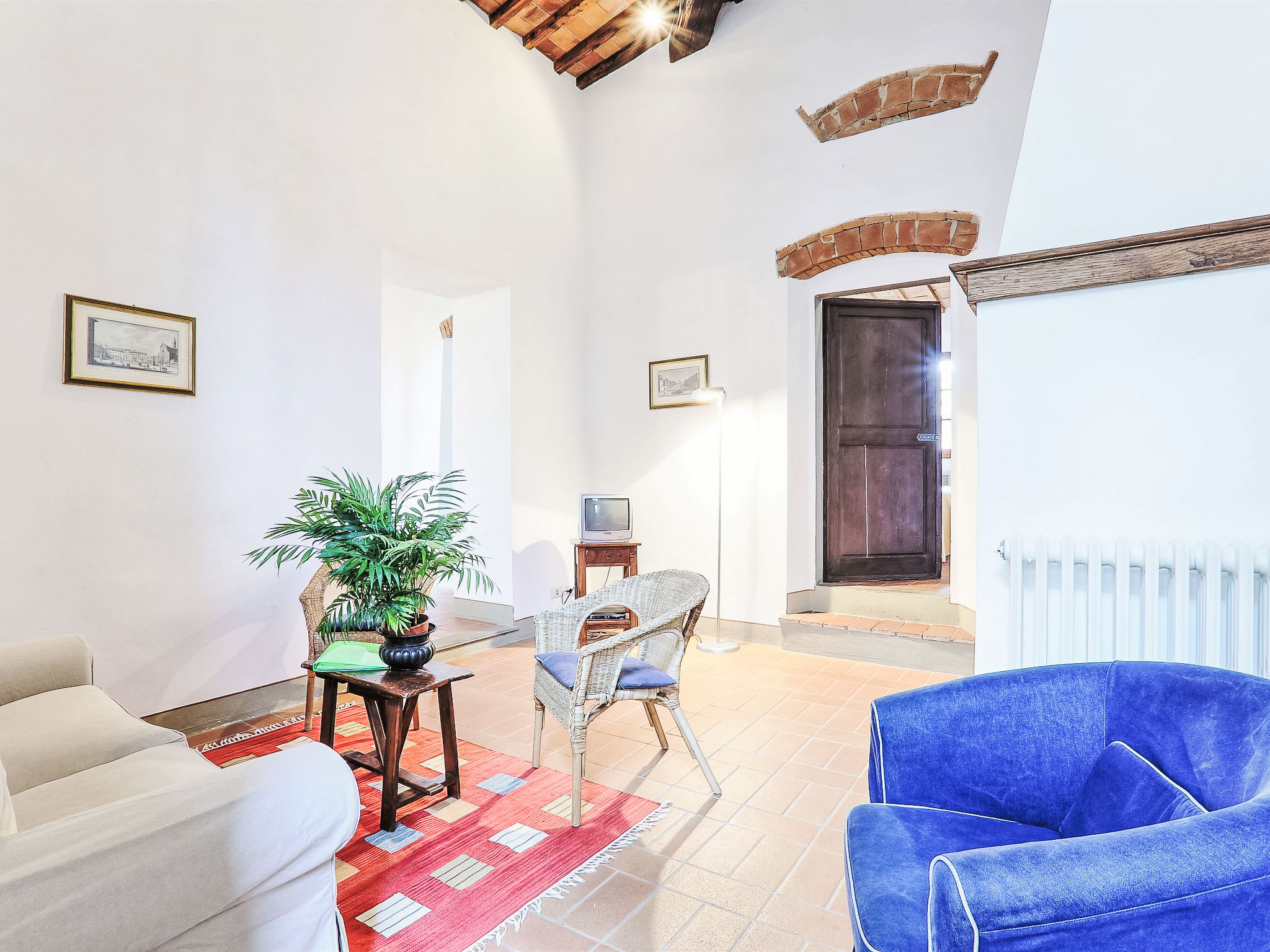 "L'Angolo", 3-Zimmer-Wohnung 80 m2, im Erdgeschoss. Wohnzimmer mit offenem Kamin und Sat-TV. 1 Zimmer mit 2 Betten, Dusche/Bidet/WC und Klimaanlage. 1 Doppelzimmer mit Dusche/Bidet/WC. Küche (4 Kochplatten).