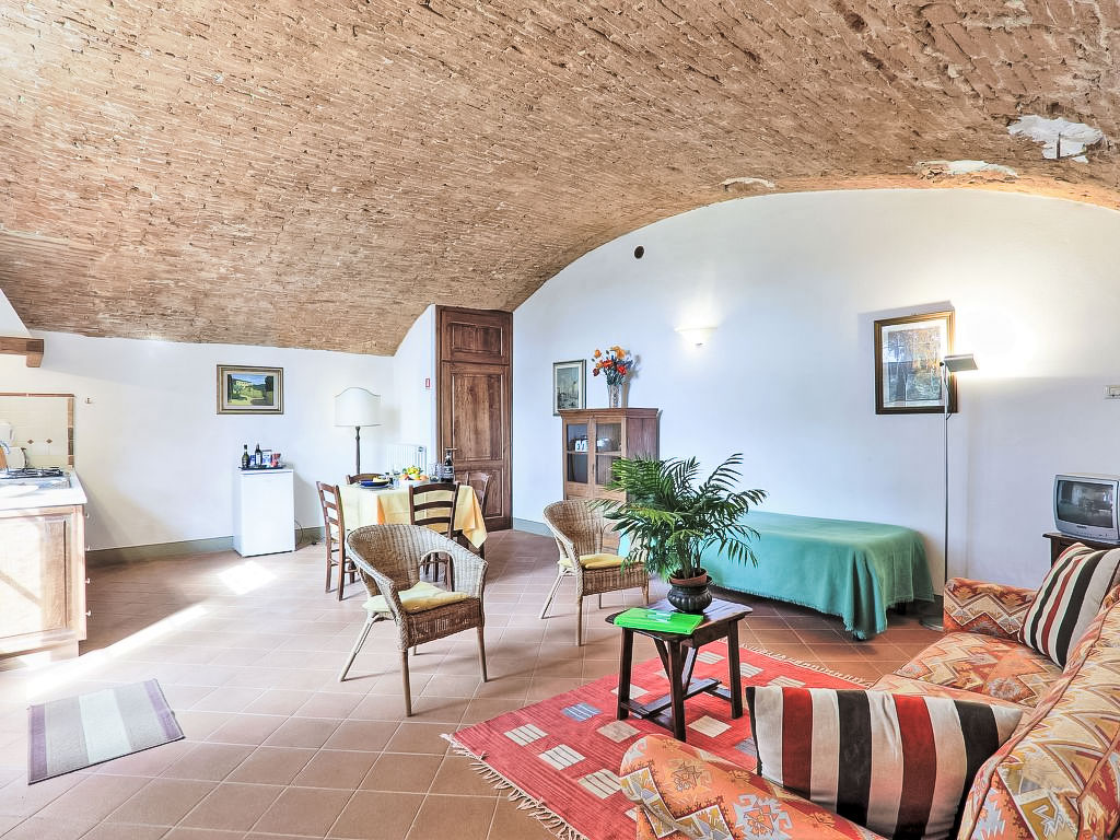 "Il Frantoio", 2-Zimmer-Wohnung 65 m2, im erhöhten Erdgeschoss. Wohn-/Esszimmer mit 1 Bett und Sat-TV. 1 Doppelzimmer mit Ventilator. Kochnische (4 Kochplatten). Dusche/Bidet/WC. Kleiner Aussenbereich, privat und ausgestattet.