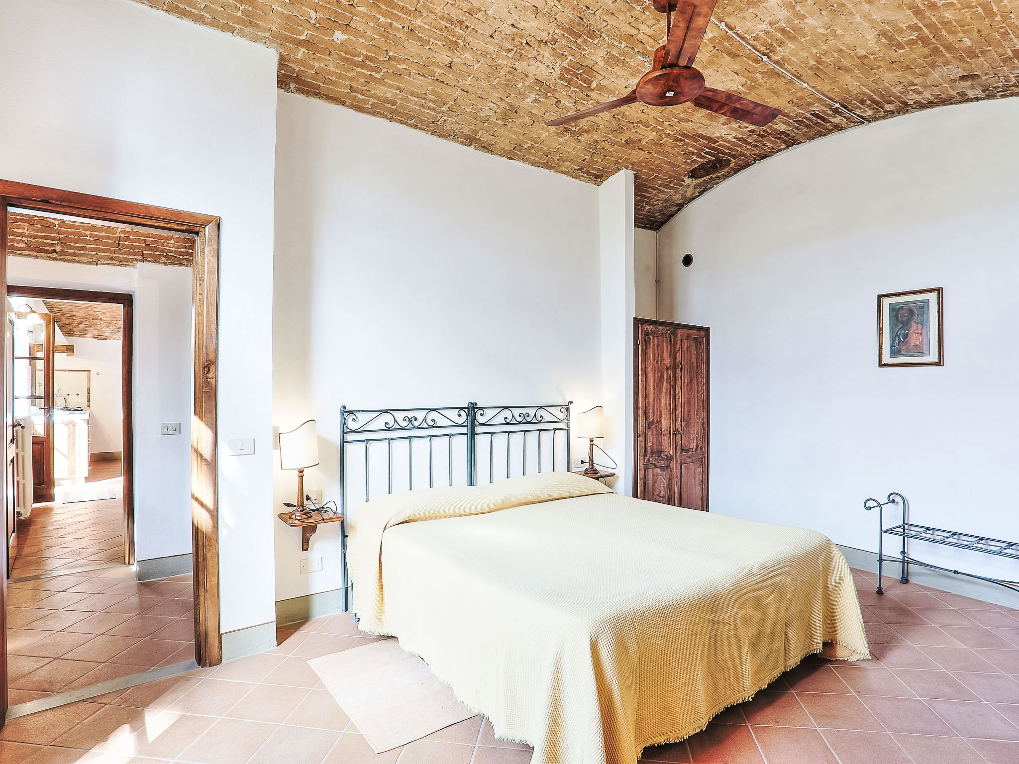 "Il Frantoio", 2-Zimmer-Wohnung 65 m2, im erhöhten Erdgeschoss. Wohn-/Esszimmer mit 1 Bett und Sat-TV. 1 Doppelzimmer mit Ventilator. Kochnische (4 Kochplatten). Dusche/Bidet/WC. Kleiner Aussenbereich, privat und ausgestattet.