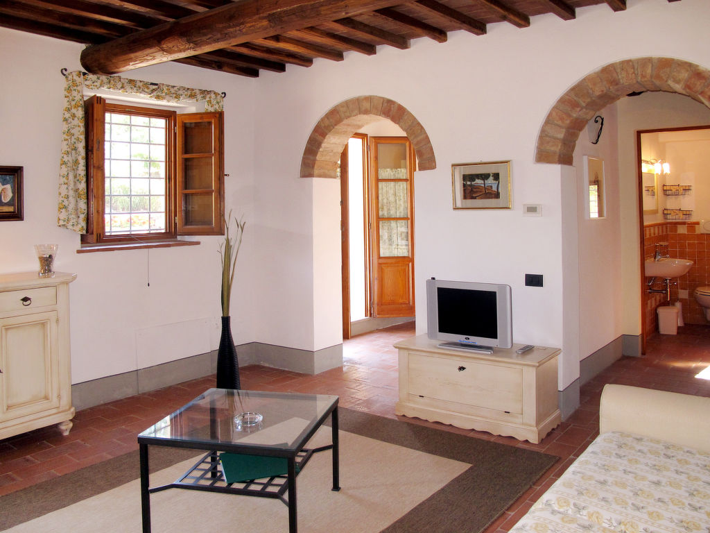 Landsitz "Francigena", umgeben von Bäumen und Feldern. 9 Wohnungen in der Residenz. 6 km vom Zentrum von Castelfiorentino, 3 km vom Zentrum von Castelnuovo d'Elsa, 30 km vom Zentrum von San Gimignano, 100 km vom Meer. Zur Mitbenutzung: Grundstück 20'000 m2, Garten mit Rasen und Bäumen, Schwimmbad (15 x 9 m, 100 - 140 cm tief, saisonale Verfügbarkeit: 01.Apr.-31.Okt.). Aussendusche, Terrasse, Gartenmöbel, Grill. Im Hause: Waschmaschine, Wäschetrockner (zur Mitbenutzung, extra). Parkplatz (für 12 Autos, überdacht) auf dem Grundstück. Einkaufsgeschäft 3 km, Supermarkt 6 km, Bahnstation "Castelfiorentino" 6 km, Sandstrand "Cecina Mare" 100 km. Bitte beachten: Fahrzeug empfohlen.