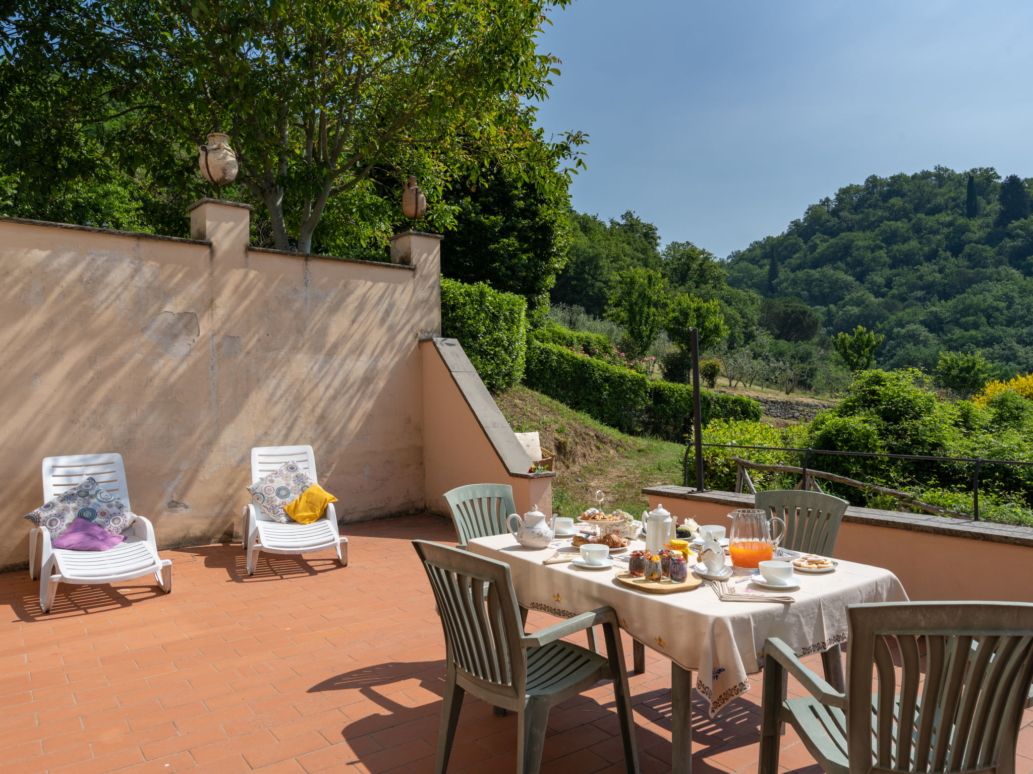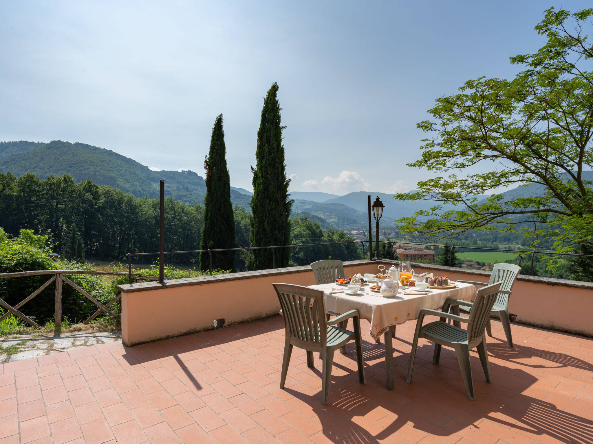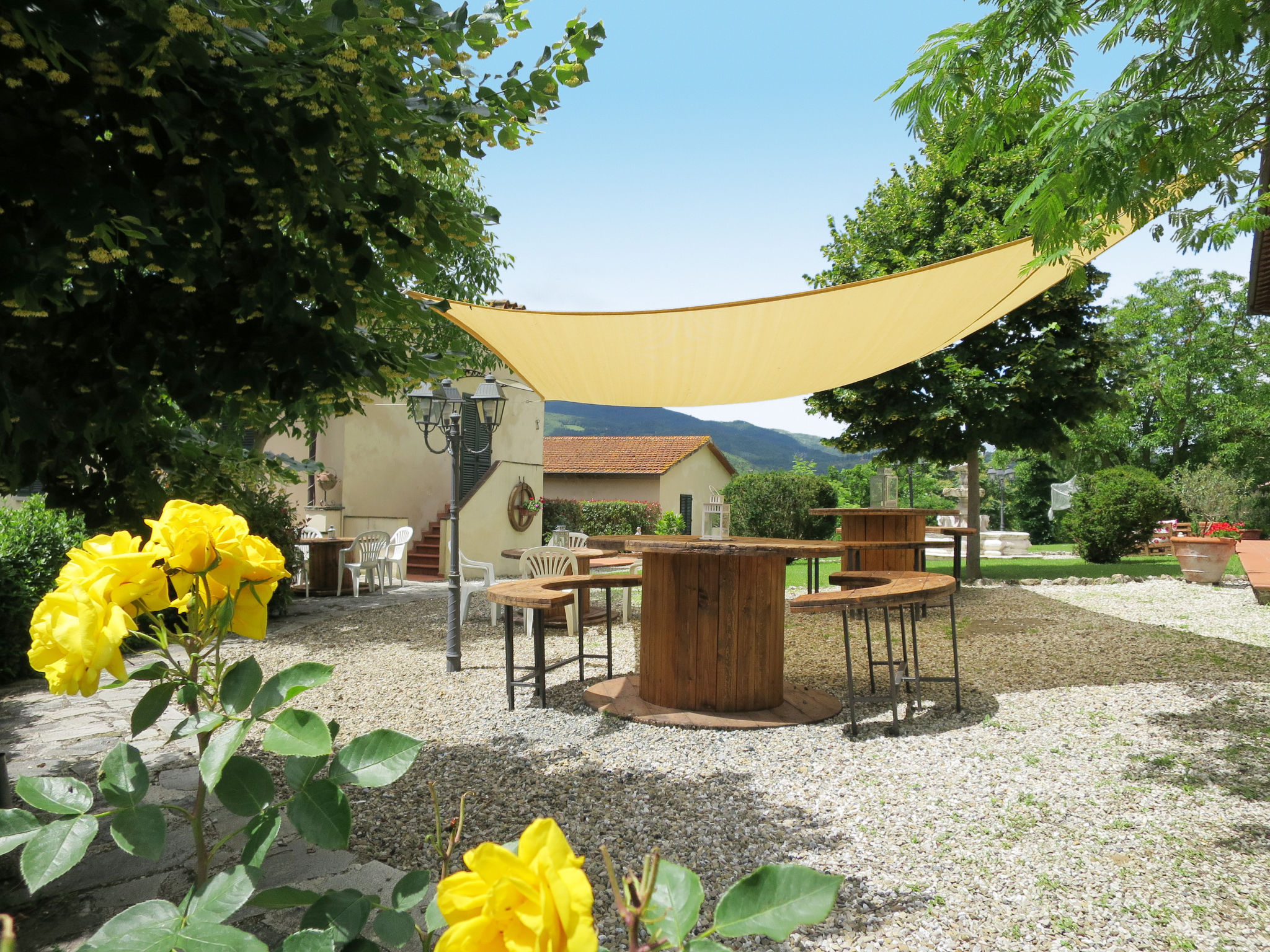 Rustikal, alleinstehend auf Weingut Landwirtschaftlicher Betrieb "Vigna La Corte", auf 2 Stockwerken, aus dem 16. Jahrhundert, umgeben von Bäumen, Wiesen und Feldern. 3 Häuser in der Residenz. 13 Wohnungen in der Residenz. 2 km vom Zentrum von Dicomano, 7.2 km vom Zentrum von Vicchio, 45 km vom Zentrum von Firenze, alleinstehende, erhöhte Lage am Hang. Zur Mitbenutzung: Grundstück 60 ha mit Pflanzen und Bäumen, Wiese, Schwimmbad (16 x 8 m, 140 cm tief, saisonale Verfügbarkeit: 01.Mai.-01.Okt.). Aussendusche, Tischtennis, Laube, Terrasse, Gartenmöbel, Grill. In der Anlage: Empfang, Wireless LAN, Tischfussball, Waschmaschine (zur Mitbenutzung). Zur Verfügung: Fahrräder. Zufahrt (500 m Naturweg). Parkplatz (überdacht) auf dem Grundstück. Supermarkt 2 km, Restaurant 2 km, Bahnstation "Dicomano" 2 km. Auf dem Grundstück Tierhaltung. Ab Hof Verkauf von bäuerlichen Produkten. Bitte beachten: Eisenbahnlinie 1 km vom Haus.