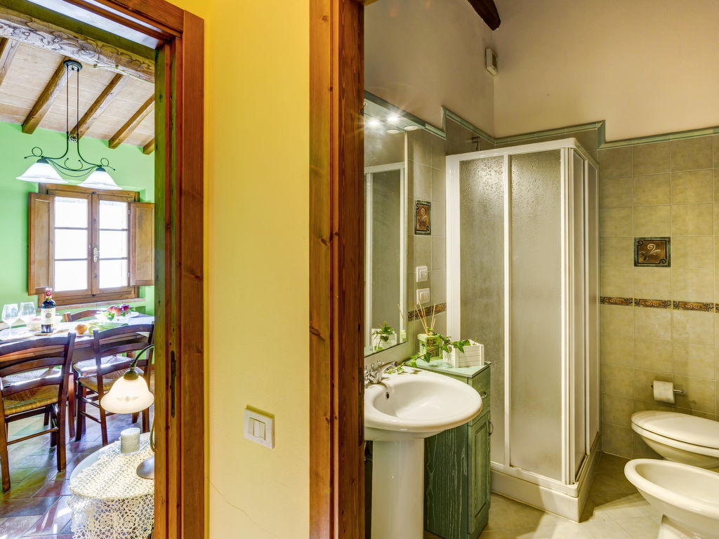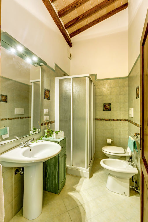 Alleinstehender Landsitz "La Grotta dell'Eremita", auf 2 Stockwerken, umgeben von Bäumen und Feldern. 2 Häuser in der Residenz. 6 Wohnungen in der Residenz. 2 km vom Zentrum von Gambassi Terme, 18 km vom Zentrum von San Gimignano, 50 km vom Zentrum von Firenze. Zur Mitbenutzung: Grundstück (eingezäunt), gepflegter Garten mit Rasen und Bäumen, Naturgarten, Schwimmbad (17 x 6 m, 130 - 200 cm tief, saisonale Verfügbarkeit: 01.Mai.-30.Sep.). Ungleichmässige Schwimmbadform, Aussendusche, Terrasse, Gartenmöbel, Grill. Im Hause: Waschmaschine (zur Mitbenutzung). Frühstück möglich (extra). 1.5 km lange holprige, steile Zufahrt. Parkplatz auf dem Grundstück. Supermarkt 1.5 km, Bahnstation "Certaldo" 8 km. Reitstall 300 m. Bitte beachten: Fahrzeug empfohlen.
