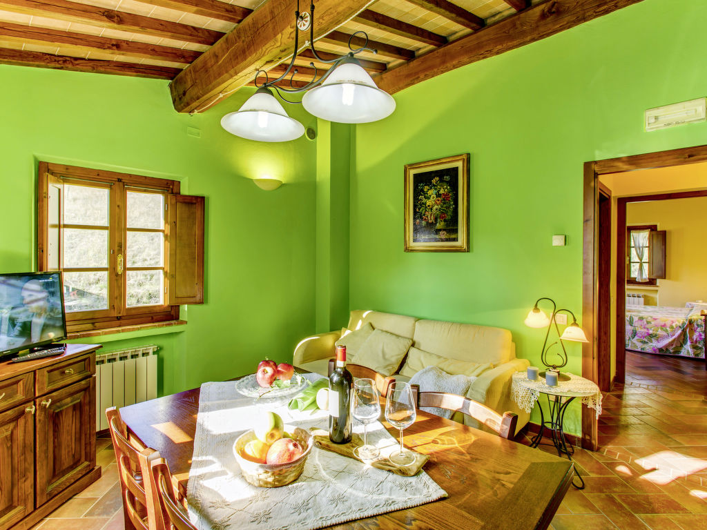 2-Zimmer-Wohnung 42 m2 im 1. Stock. Rustikal eingerichtet: Wohn-/Schlafzimmer mit 1 Doppeldiwanbett, Esstisch, Sat-TV und Internationale TV-Sender. 1 Zimmer mit 1 franz. Bett (160 cm). Offene Küche (4 Kochplatten, Geschirrspüler, Mikrowelle, elektrische Kaffeemaschine). Dusche/Bidet/WC. G-Heizung. Natursteinböden. Gartensitzplatz überdacht. Terrassenmöbel. Panoramasicht. Zur Verfügung: Internet (Wireless LAN, gratis). Bitte beachten: Nichtraucher-Unterkunft. Maximal 1 Haustier/Hund erlaubt.