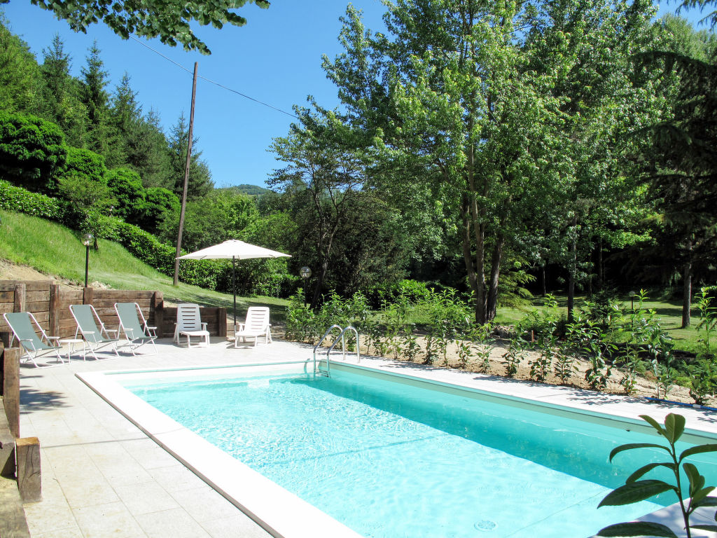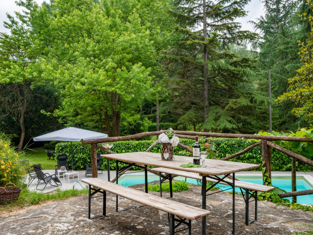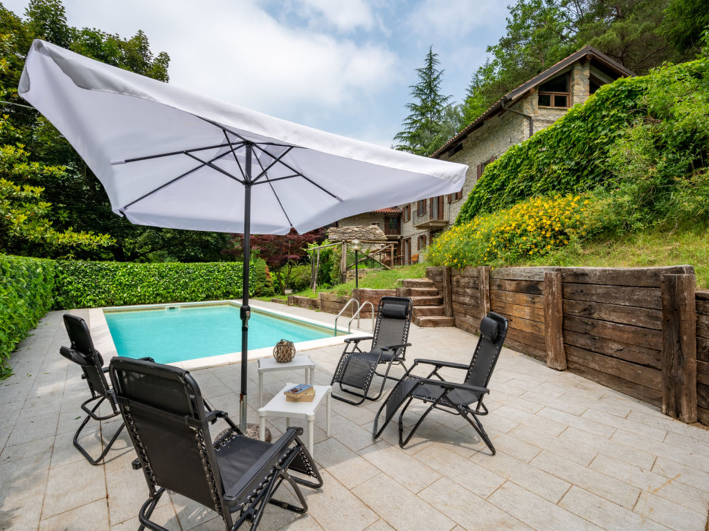 Rustikales, alleinstehendes Landhaus "Ca' Casottino", umgeben von Bäumen. 7 km vom Zentrum von Roccaverano, 6 km vom Zentrum von Monastero Bormida, 19 km vom Zentrum von Acqui Terme, alleinstehende Lage, 58 km vom Meer. Zur Alleinbenutzung: Grundstück 20'000 m2 (eingezäunt), gepflegter Terrassengarten mit Rasen und Bäumen, Liegewiese, Schwimmbad (8 x 4 m, 150 cm tief, 15.05.-01.10.). Aussendusche, Poolpflege durch den Besitzer/Gärtner Parkplatz (für 3 Autos) auf dem Grundstück. Einkaufsgeschäft 6 km, Supermarkt 20 km, Bahnstation "Acqui Terme" 20 km.