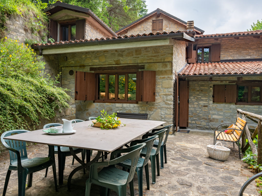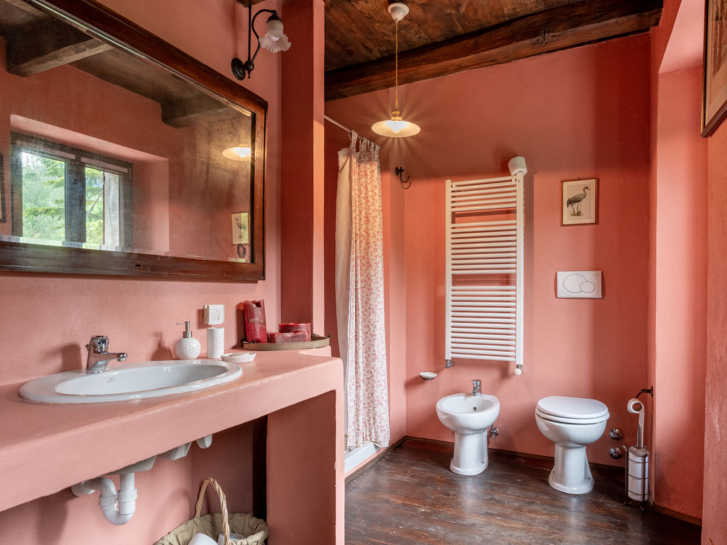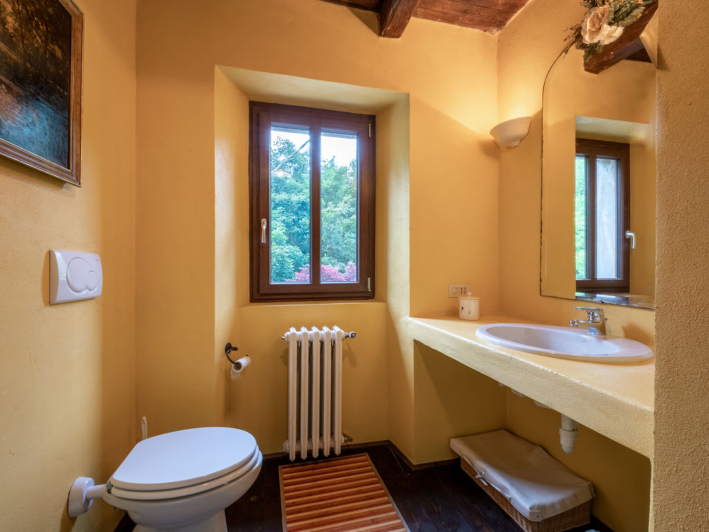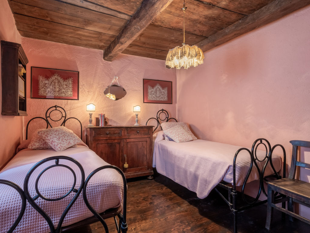 "Ca' Casottino (RCV150)", 8-Zimmer-Haus 300 m2 auf 2 Stockwerken. Rustikal und gemütlich eingerichtet: Wohnzimmer mit offenem Kamin, Sat-TV, Stereoanlage und DVD. Ausgang zur Terrasse. Wohnzimmer mit Sat-TV, Stereoanlage und DVD. 1 Zimmer mit 2 Betten. Esszimmer mit Esstisch. Küche (1 Kochplatte, Backofen, Geschirrspüler, 5 Flammen, Mikrowelle, elektrische Kaffeemaschine). Dusche/WC. Obergeschoss: 1 Zimmer mit 2 Betten und Dusche/WC. 1 Zimmer mit 1 franz. Bett (160 cm, Länge 190 cm). Ausgang zum Garten. 1 Zimmer mit 1 franz. Bett (160 cm). 1 Zimmer mit 1 Doppelbett. 2 Duschen/WC, Bad/Dusche/WC. G-Heizung. Holzböden, Natursteinböden. Terrasse 20 m2. Terrassenmöbel, Gartengrill (mobil), Liegestühle. Zur Verfügung: Waschmaschine, Babybett. Internet (Wireless LAN, gratis). Bitte beachten: Nichtraucher-Unterkunft. Bei Belegung mit weniger Personen als der maximalen Personenzahl stehen nicht alle Schlafzimmer zur Verfügung. CIR: 00509400002
