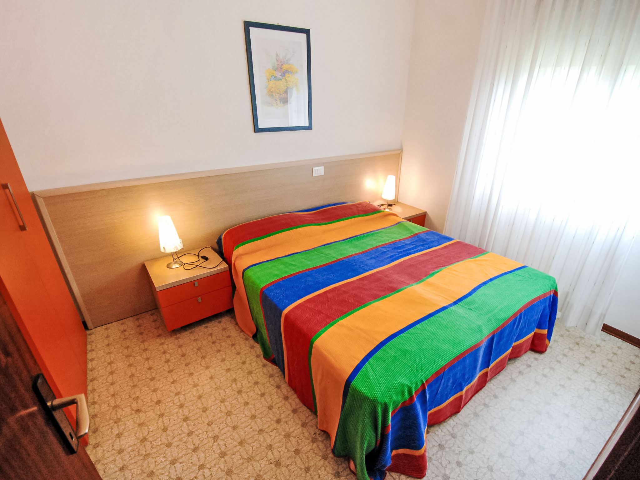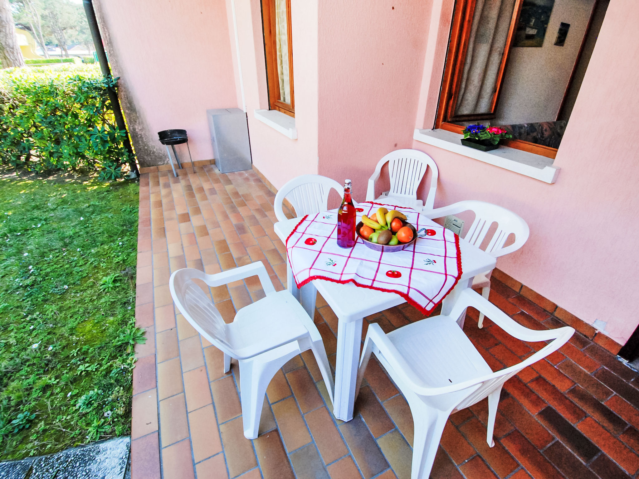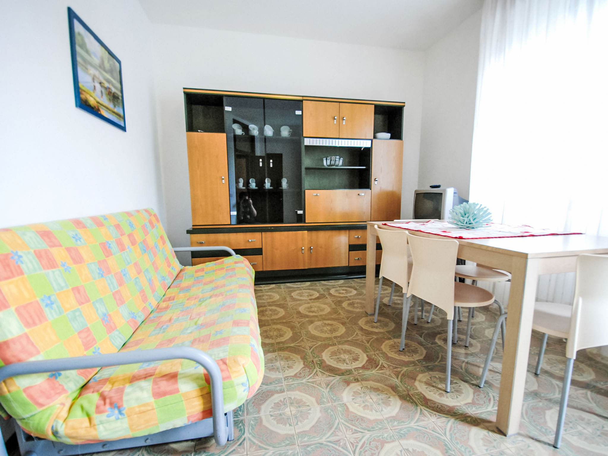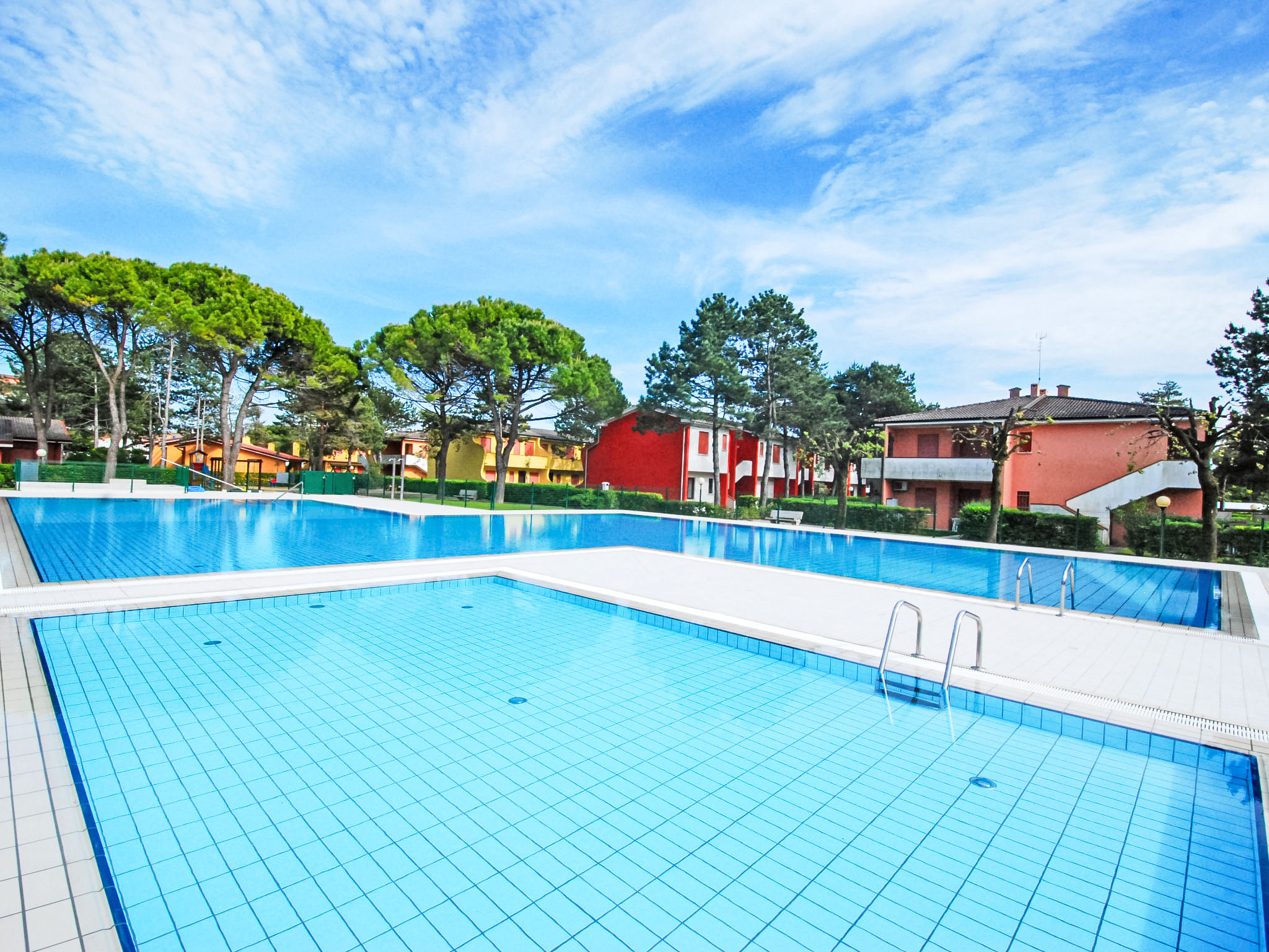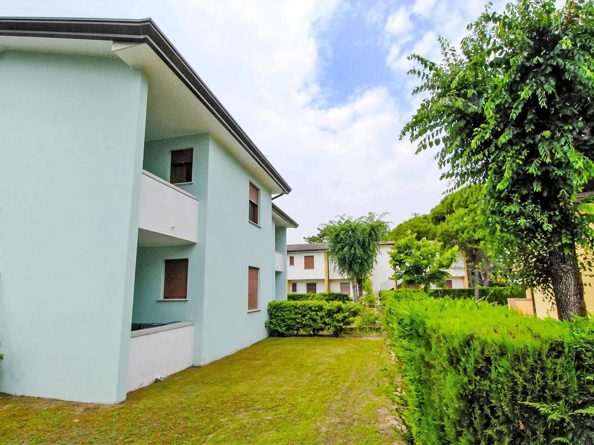 Komfortable Residenz "Villaggio Azzurro". Im Ortszentrum von Bibione, ruhige Lage, 700 m vom Meer, 700 m vom Strand. Zur Mitbenutzung: 2 Schwimmbäder (25 x 10 m, 150 - 150 cm tief, saisonale Verfügbarkeit: 15.Mai.-15.Sep. Öffnungszeiten Schwimmbad: 09:00-13:30 und 15:30-22:00). Parkplatz beim Haus. Supermarkt, Restaurant, Bar, Café 500 m, Sandstrand 700 m, Thermalbad 650 m. Bitte beachten: Das Foto ist nur ein Hausbeispiel. In diesem Haus sind weitere Ferienwohnungen mietbar.