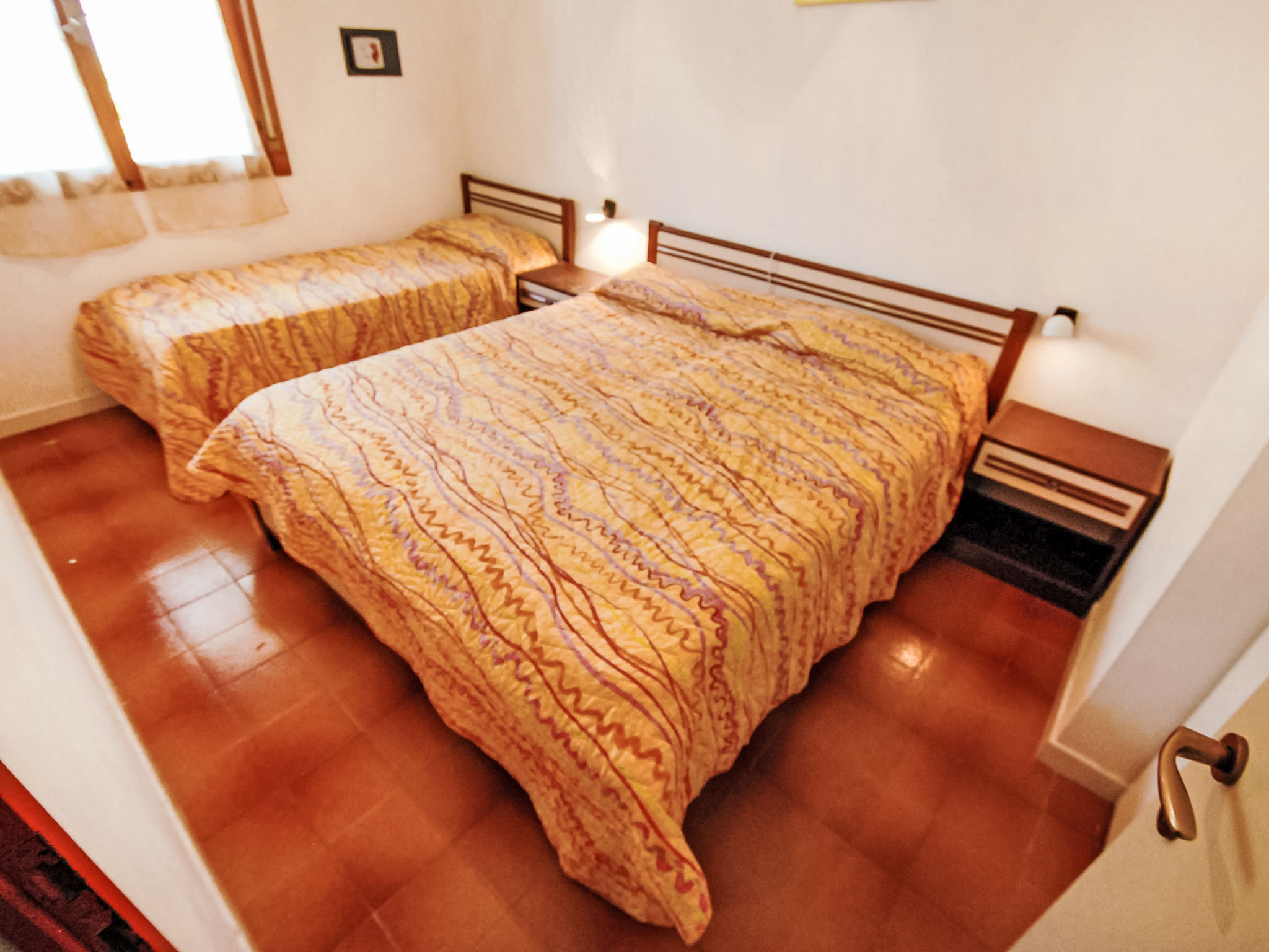 2-Zimmer-Wohnung 37 m2. Einfach und komfortabel eingerichtet: Wohn-/Schlafzimmer mit 1 Doppeldiwanbett, 1 Schlafmöglichkeit und TV. 1 Zimmer mit 1 franz. Bett. Kochnische (4 Kochplatten). Dusche/Bidet/WC. Bitte beachten: geeignet für Familien. Nichtraucher-Unterkunft. 1 Haustier/Hund erlaubt.