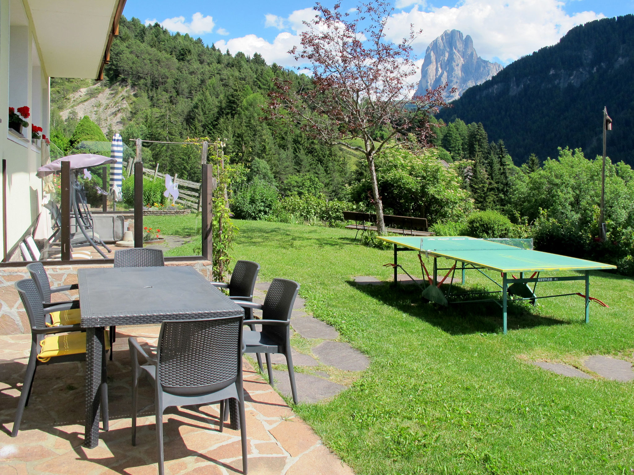 Haus ILLYRIA mit 2 Ferienwohnungen und 3 vom Vermieter genutzten Wohnungen steht in sonniger Hanglage, ca. 700 m von der Ortsmitte von St. Ulrich entfernt. Dort nächste Geschäfte und Restaurants. Gepflegter Garten mit Mobiliar und Tischtennis, jeweils zur gemeinsamen Nutzung. Westbalkon mit Mobiliar. Parkplatz auf dem offenen Grundstück. Die renovierte Wohnung hat separaten Eingang. Ansprechende Einrichtung. Parkett- und Fliesenböden. Sat-TV (deutsche Programme). Internetzugang (WLAN, inklusive). Gas-Zentralheizung. Hinweis: Rauchen ist in der Wohnung nicht gestattet.