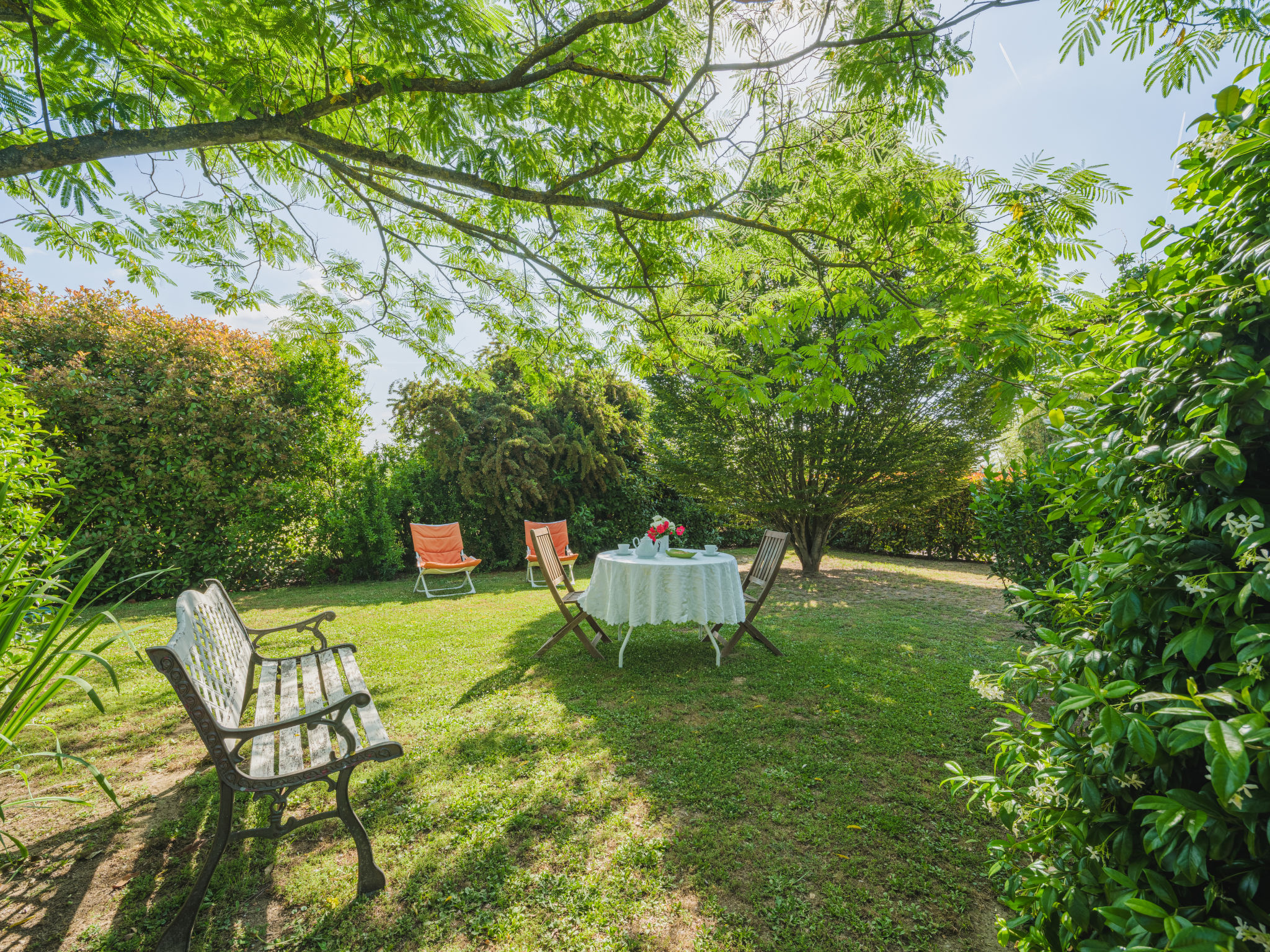 3-Zimmer-Haus 85 m2 auf 2 Stockwerken. Schön und gemütlich eingerichtet: Wohnzimmer mit 1 Diwanbett und Sat-TV. Offene Küche (Backofen, Geschirrspüler, 4 Flammen, Toaster, Wasserkocher, Tiefkühler, elektrische Kaffeemaschine) mit Esstisch. Ausgang zum Garten. Bad/Bidet/WC. Obergeschoss: abgeschrägte Galerie mit 1 Bett. 1 Zimmer mit 1 franz. Bett (160 cm). 1 kleines Zimmer mit 2 Betten. Dusche/Bidet/WC. G-Heizung. Terrasse überdacht. Terrassenmöbel, Gartengrill (mobil), Liegestühle (5). Zur Verfügung: Fliegengitter, Kinderhochstuhl, Babybett, Haartrockner. Internet (Wireless LAN, gratis). Bitte beachten: Nichtraucher-Unterkunft. 1 Haustier/Hund erlaubt.