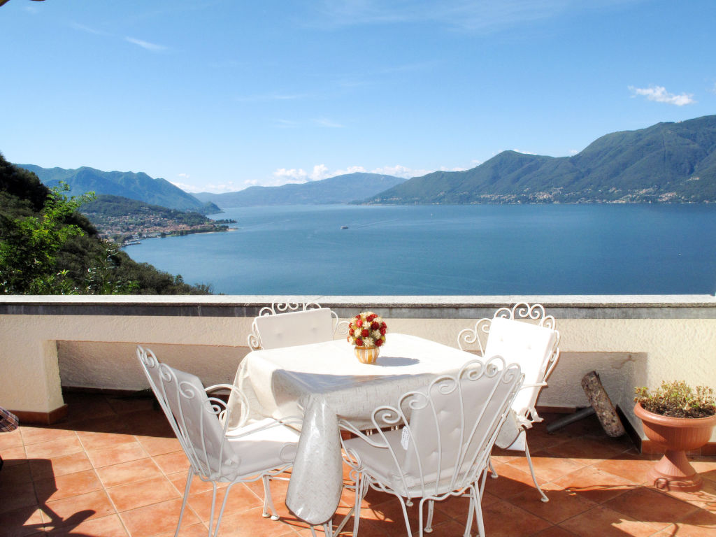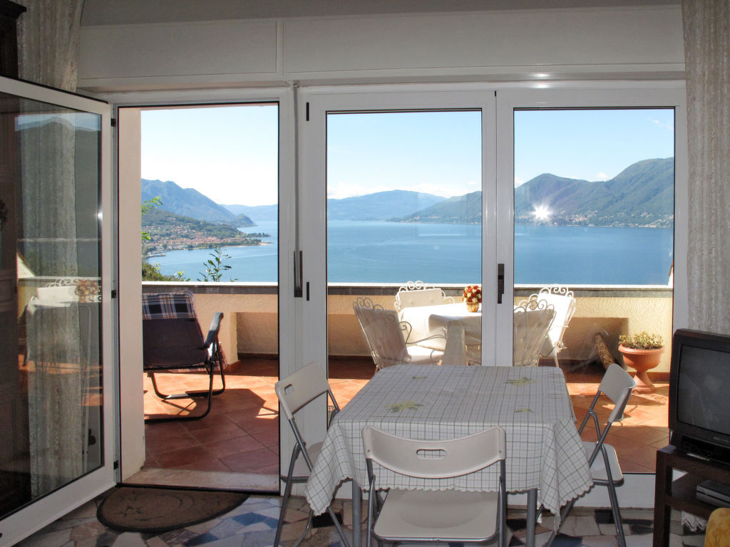 "Il Gaggio", 3-Zimmer-Wohnung 40 m2 im 1. Stock, Südwestlage. Zweckmässig eingerichtet: Wohn-/Esszimmer mit Panoramafenster mit Esstisch und Sat-TV. Ausgang zur Terrasse. 1 Zimmer mit 2 Betten. 1 kleines Zimmer mit 1 Bett. Kochnische (2 Glaskeramikherd Platten, Toaster, Wasserkocher, Mikrowelle, elektrische Kaffeemaschine). Dusche/WC. E-Heizung. Terrasse teilweise überdacht, Südwestlage. Terrassenmöbel. Sehr schöne Panoramasicht auf den See. Zur Verfügung: Kinderhochstuhl, Babybett bis 2 Jahre. Garage auf dem Grundstück (1 Auto). Bitte beachten: Maximal 1 kleines Haustier/Hund erlaubt. Eigener Eingang. CIR:012092-CNI-00027