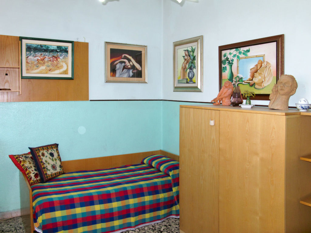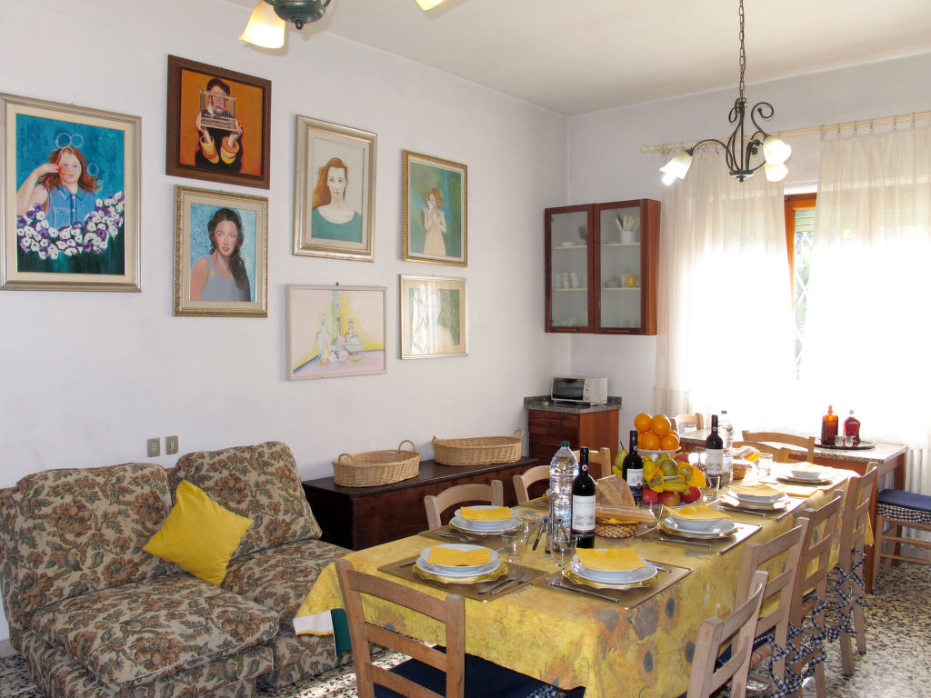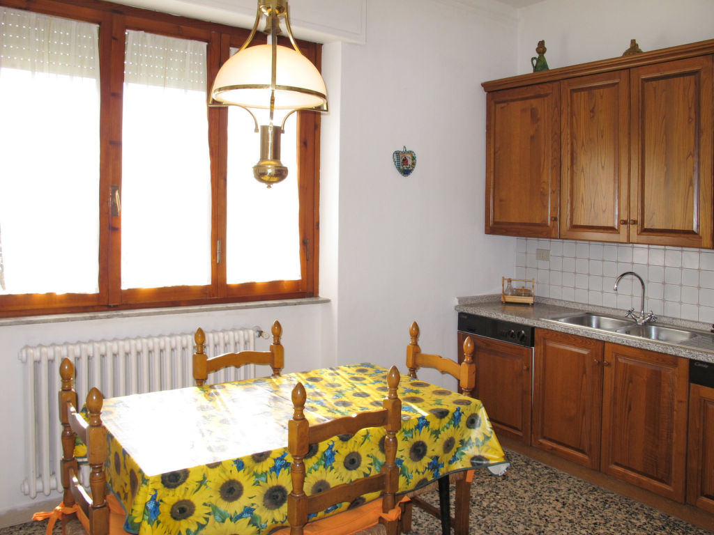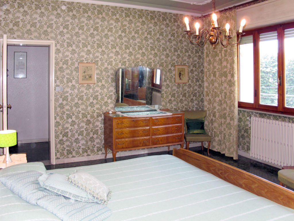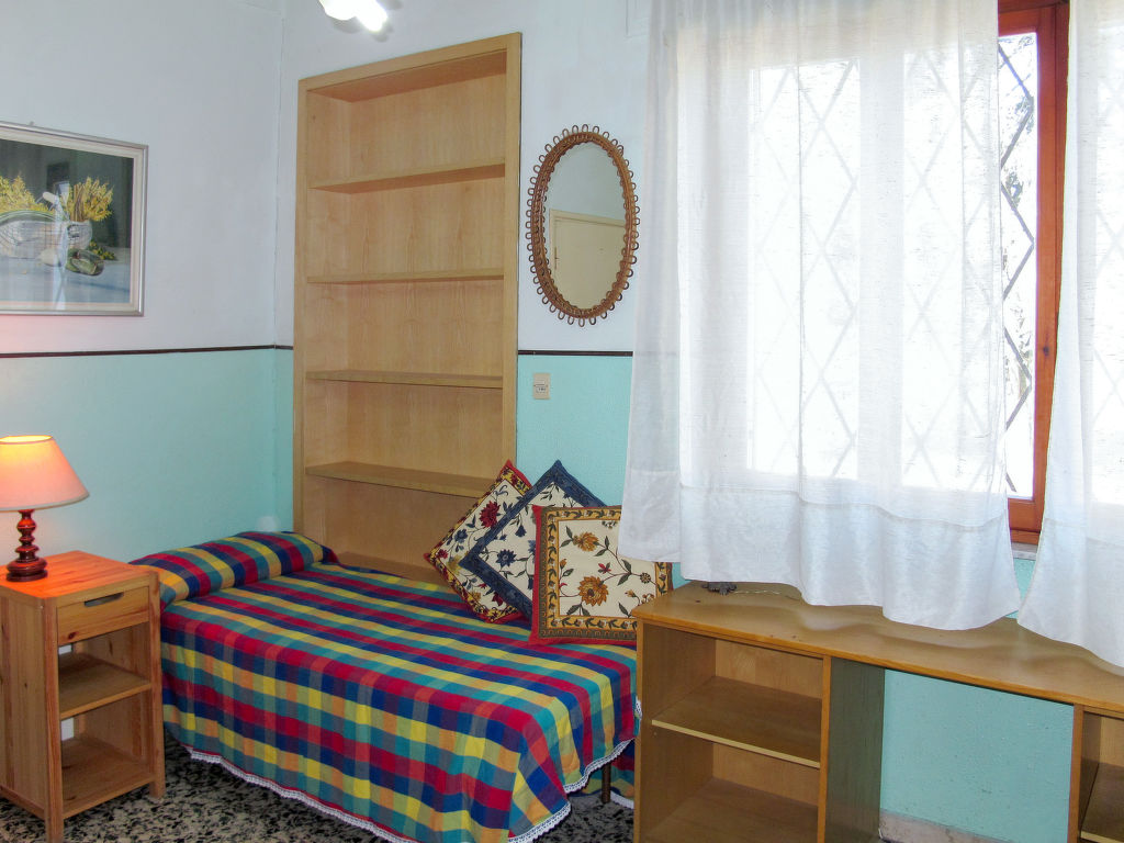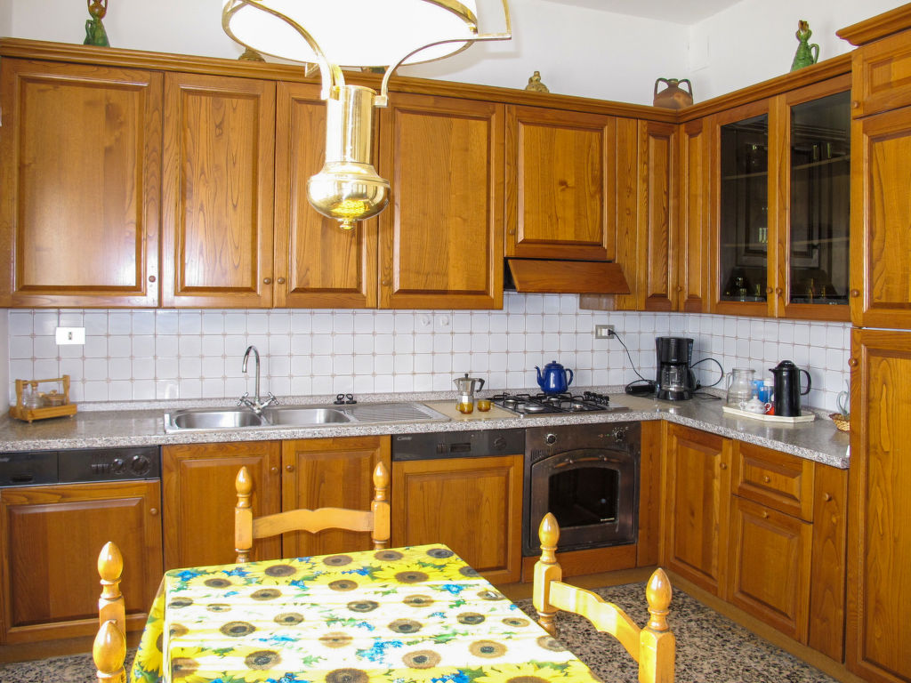 7-Zimmer-Haus 265 m2 auf 2 Stockwerken, im erhöhten Erdgeschoss. Einfach und antik eingerichtet: Wohnzimmer mit Sat-TV. Ausgang zum Balkon. 1 Zimmer mit 2 Betten (80 cm). 1 Zimmer mit 1 franz. Bett (160 cm). 1 Doppelzimmer. Grosse Küche (Backofen, Geschirrspüler, 4 Flammen, Toaster, Tiefkühler, elektrische Kaffeemaschine) mit Esstisch, Sat-TV. Dusche/Bidet/WC. Obergeschoss: 1 Zimmer mit 1 franz. Bett (160 cm). 1 Doppelzimmer. Ausgang zum Balkon. Esszimmer mit Esstisch. Ausgang zum Garten. Wohnzimmer mit Sat-TV. Küche (Backofen, Geschirrspüler, 4 Flammen, Tiefkühler, elektrische Kaffeemaschine). 2 Bäder/Bidet/WC. G-Heizung. Teppichboden. 2 kleine Balkone, Gartensitzplatz. Terrassenmöbel, Gartengrill (mobil), Liegestühle (4). Zur Verfügung: Waschmaschine, Bügeleisen, Kinderhochstuhl. Bitte beachten: Nichtraucher-Unterkunft.