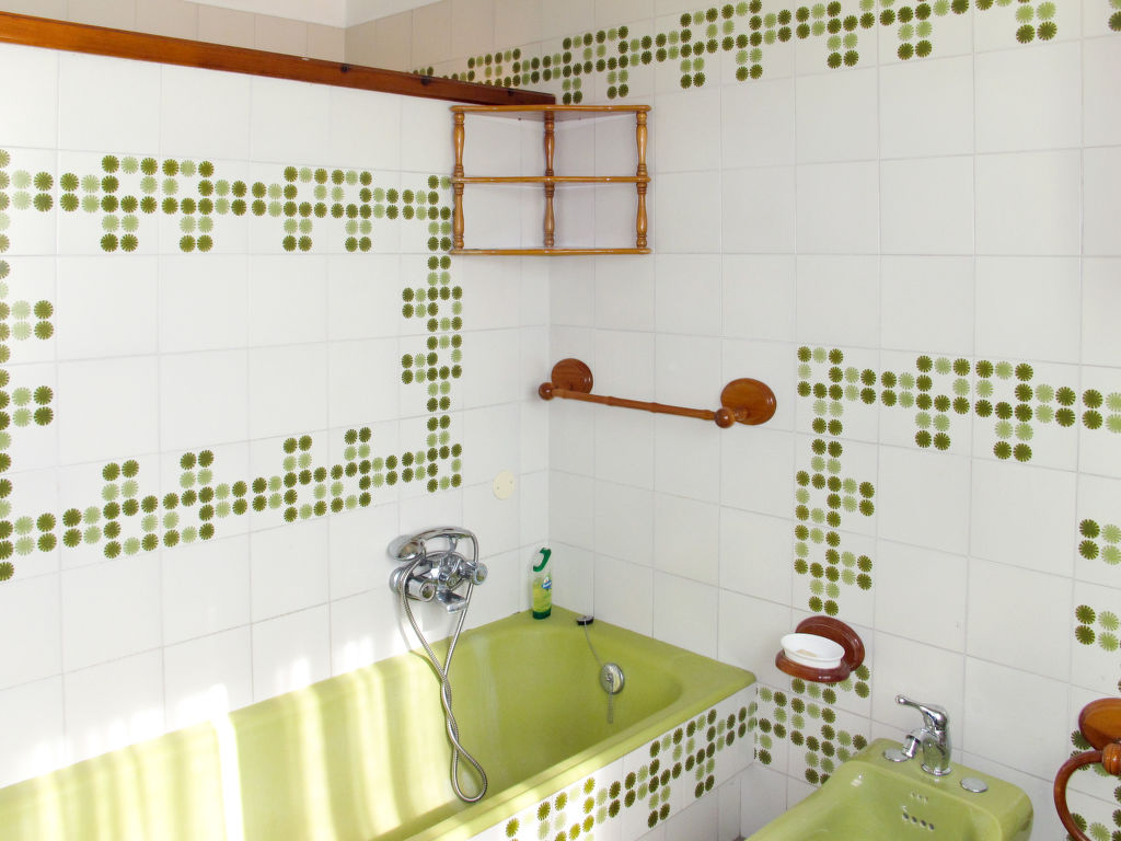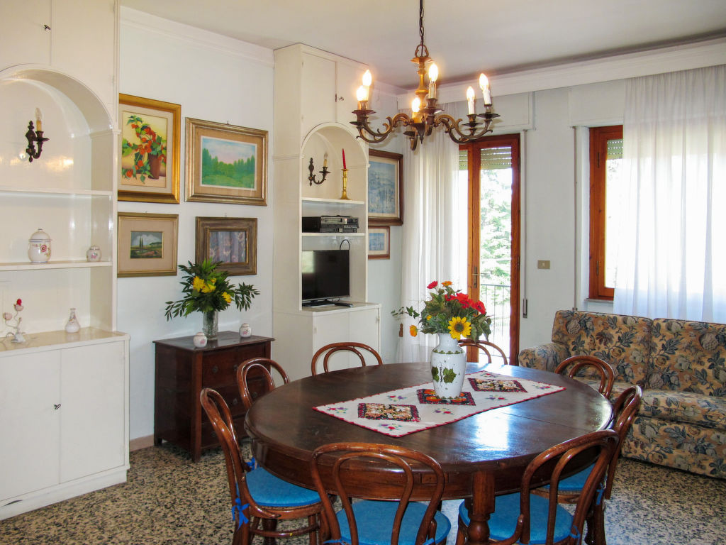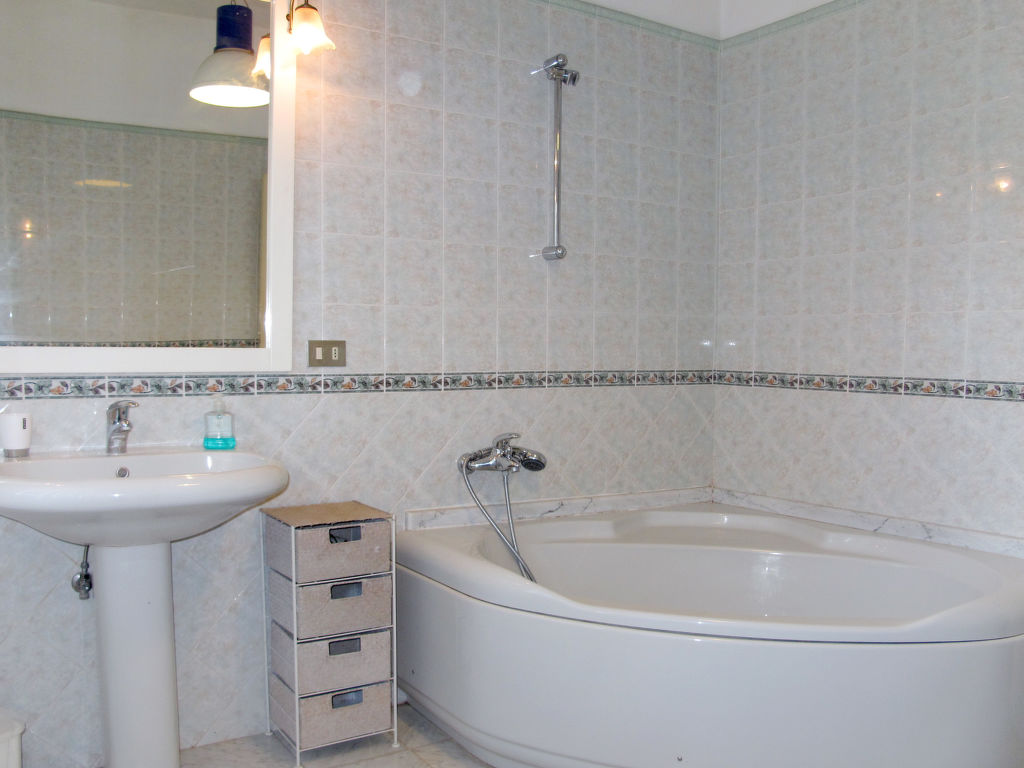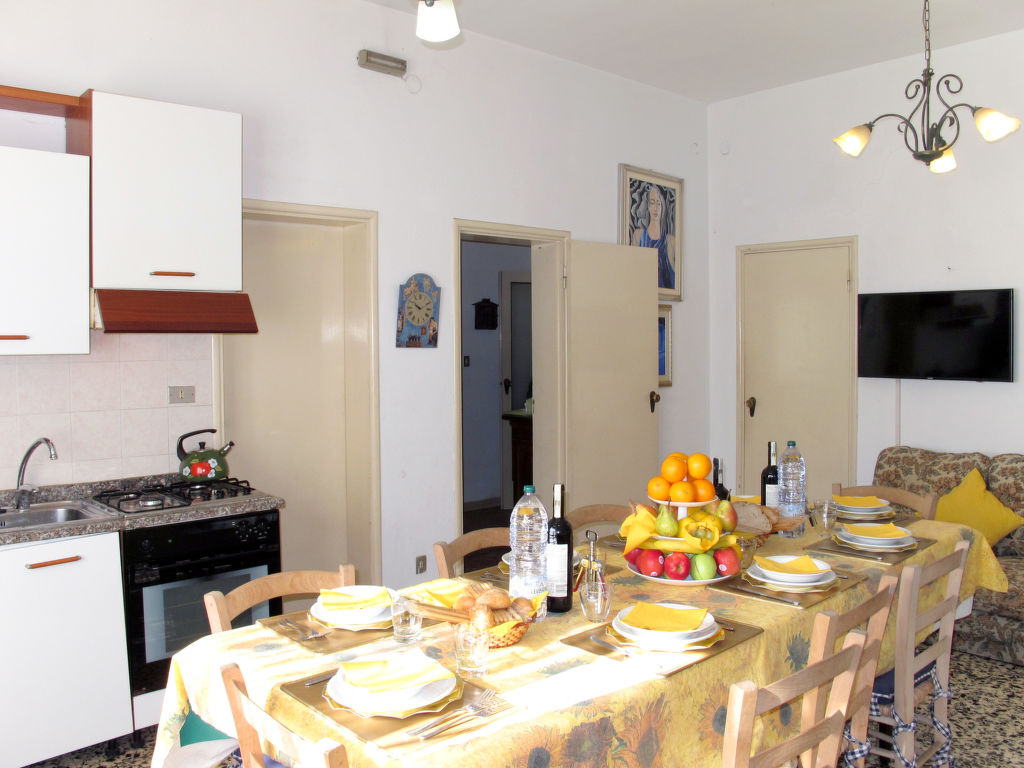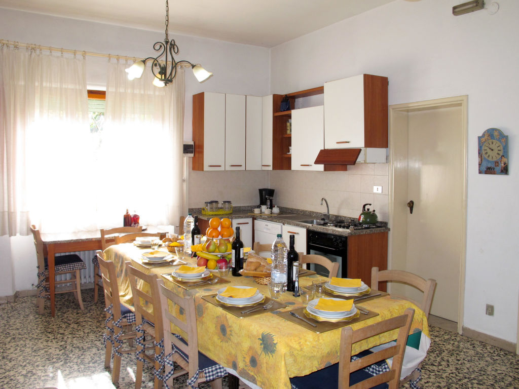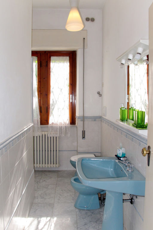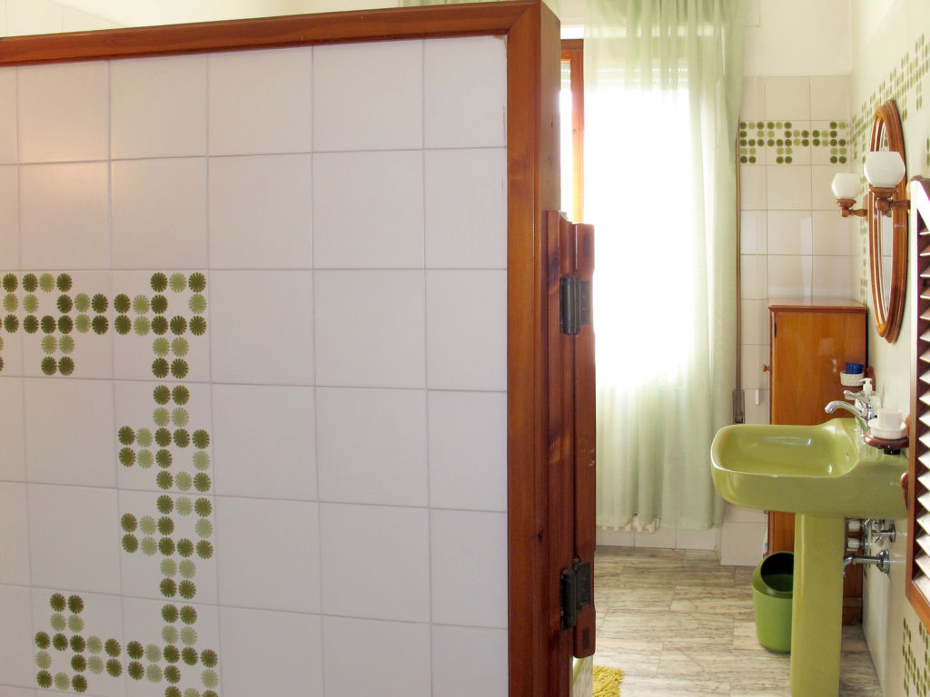7-Zimmer-Haus 265 m2 auf 2 Stockwerken, im erhöhten Erdgeschoss. Einfach und antik eingerichtet: Wohnzimmer mit Sat-TV. Ausgang zum Balkon. 1 Zimmer mit 2 Betten (80 cm). 1 Zimmer mit 1 franz. Bett (160 cm). 1 Doppelzimmer. Grosse Küche (Backofen, Geschirrspüler, 4 Flammen, Toaster, Tiefkühler, elektrische Kaffeemaschine) mit Esstisch, Sat-TV. Dusche/Bidet/WC. Obergeschoss: 1 Zimmer mit 1 franz. Bett (160 cm). 1 Doppelzimmer. Ausgang zum Balkon. Esszimmer mit Esstisch. Ausgang zum Garten. Wohnzimmer mit Sat-TV. Küche (Backofen, Geschirrspüler, 4 Flammen, Tiefkühler, elektrische Kaffeemaschine). 2 Bäder/Bidet/WC. G-Heizung. Teppichboden. 2 kleine Balkone, Gartensitzplatz. Terrassenmöbel, Gartengrill (mobil), Liegestühle (4). Zur Verfügung: Waschmaschine, Bügeleisen, Kinderhochstuhl. Bitte beachten: Nichtraucher-Unterkunft.