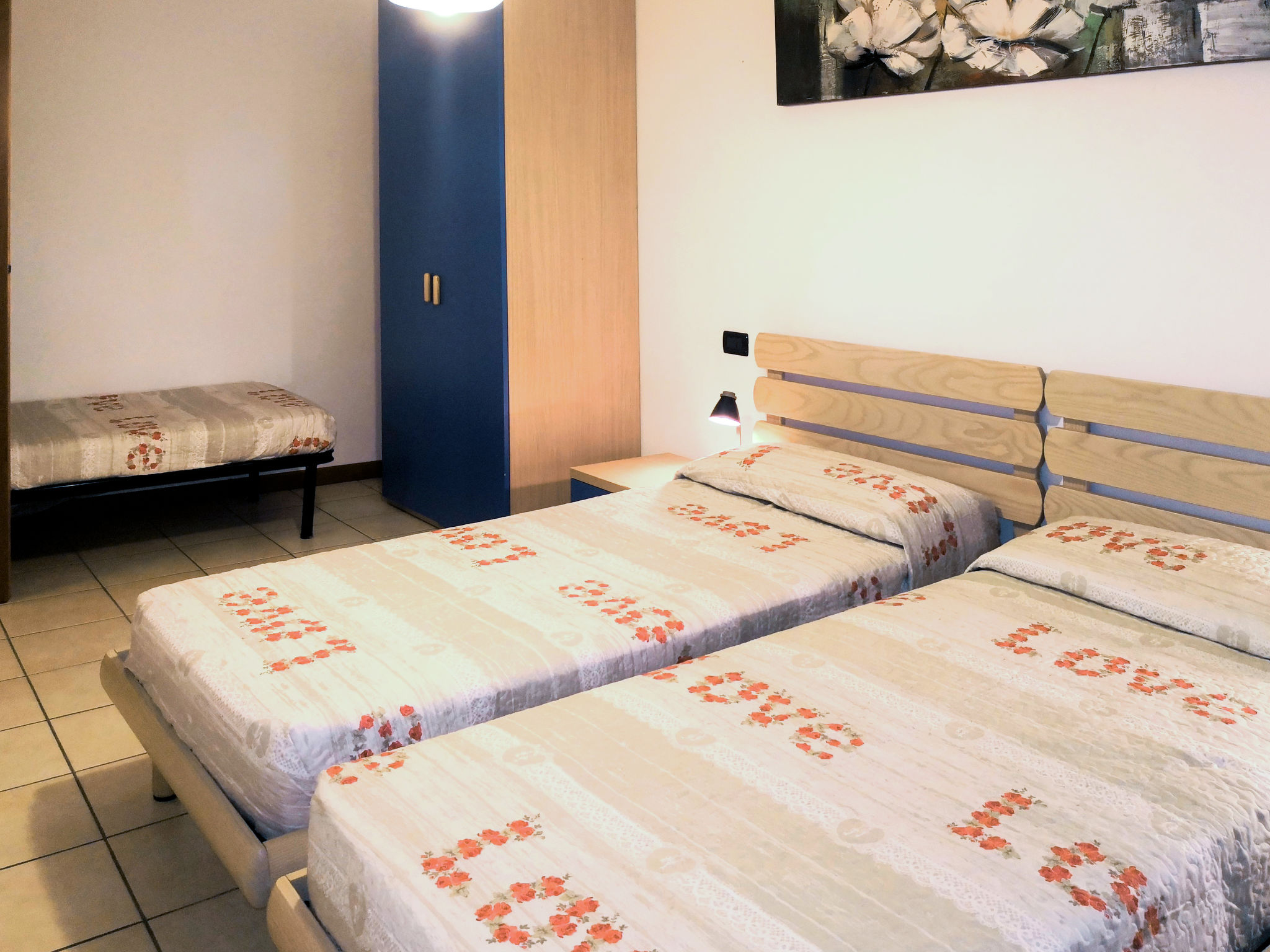 5-Zimmer-Reihenendhaus, 4 Etagen, ca. 100 m². Untergeschoss: Doppelzimmer, Dusche/WC. Erdgeschoss: Wohn-/Schlafraum mit Doppelbettcouch, Essplatz und Küchenzeile (5 Flammen, Mikrowelle, Geschirrspüler, Kühl-/Gefrierkombination), Terrassenausgang. Sep.WC. 1. Etage: Zweibettzimmer. Doppelzimmer mit Balkonausgang und Seeblick. Dusche/WC. 2. Etage (Dachschräge, eingeschränkte Stehhöhe): Zweibettzimmer, sep.WC.Maximale Belegung: 6 Erwachsene und 2 Kinder. CIR:M0230060036