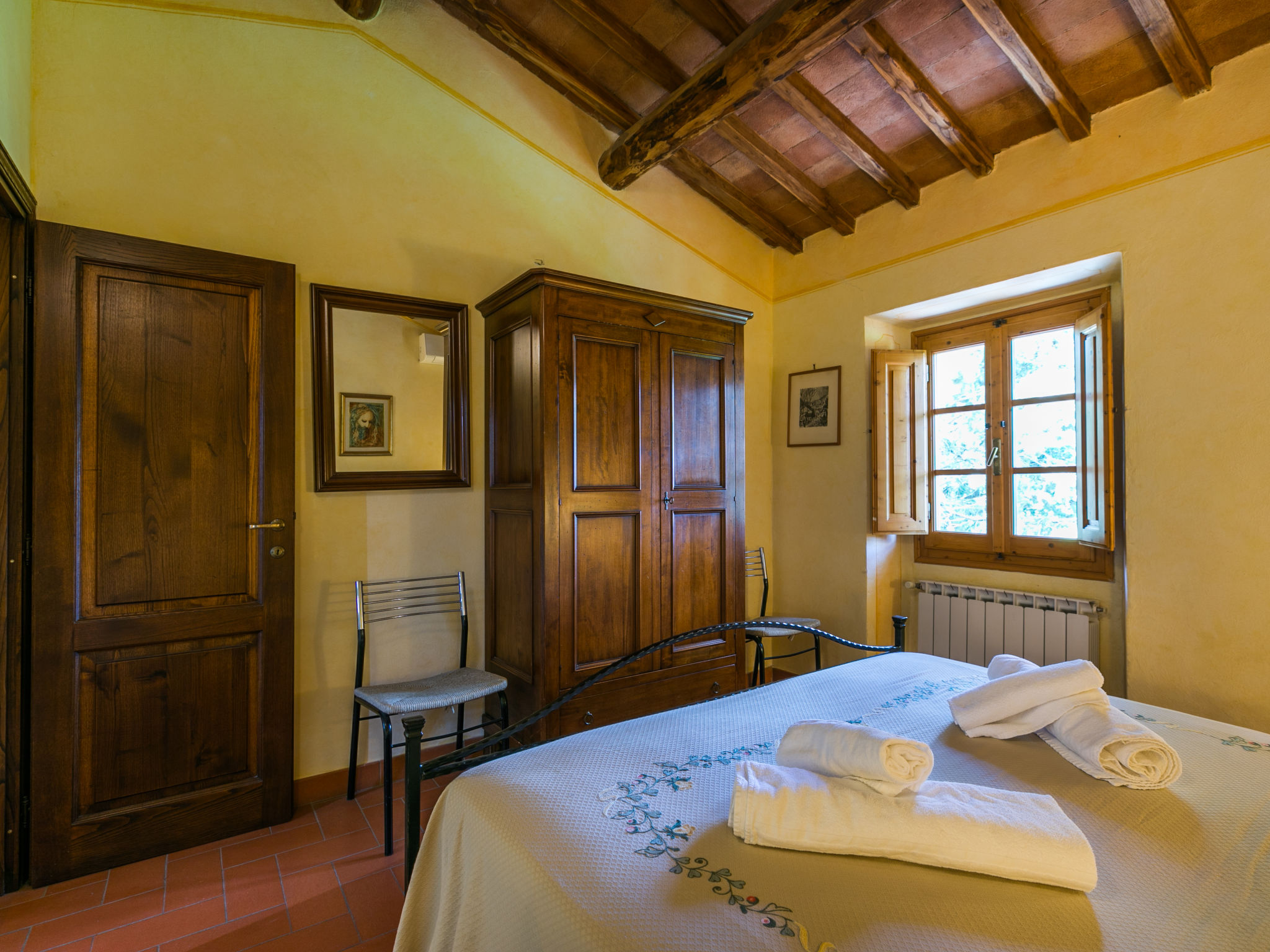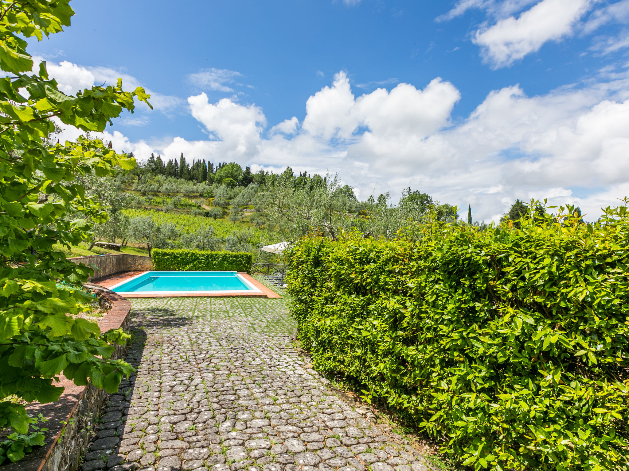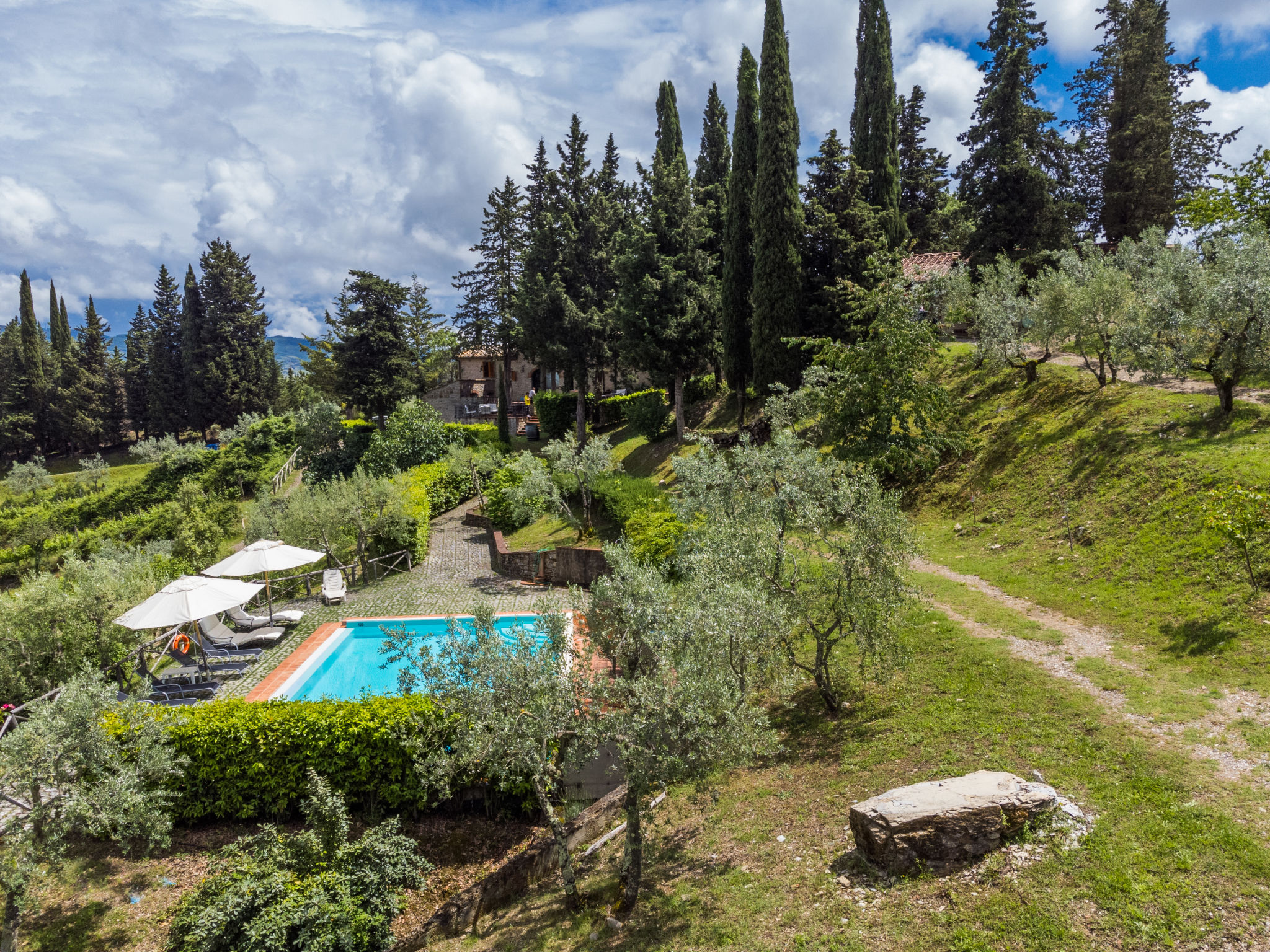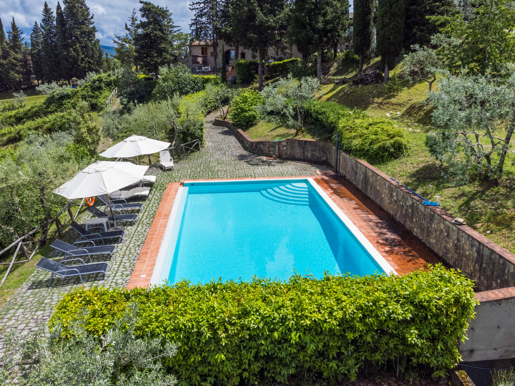 Montefioralle 3 km von Greve in Chianti: Agriturismo auf Weingut "San Rocco", auf 2 Stockwerken, aus dem 19. Jahrhundert, umgeben von Bäumen, Feldern und Weinbergen. 3 Wohnungen in der Residenz. 3 km vom Zentrum von Greve in Chianti, 1 km vom Zentrum von Montefioralle, ausserhalb des Ortes, 25 km vom Zentrum von Firenze, sonnige Lage, im Grünen. Zur Mitbenutzung: Terrassengarten, 4 ha (nicht eingezäunt) mit Pflanzen und Bäumen, Naturgarten, Schwimmbad (12 x 6 m, 120 - 180 cm tief, saisonale Verfügbarkeit: 02.Mai.-03.Okt.). Aussendusche, Grill, Poolpflege durch den Besitzer/Gärtner. Im Hause: Waschmaschine (extra). Parkplatz auf dem Grundstück. Lebensmittelgeschäft 3 km, Restaurant 3 km, Freibad 3 km. Golfplatz (18 Loch) 18 km. Ab Hof Verkauf von bäuerlichen Produkten. Besitzer wohnt in separatem Hausteil.