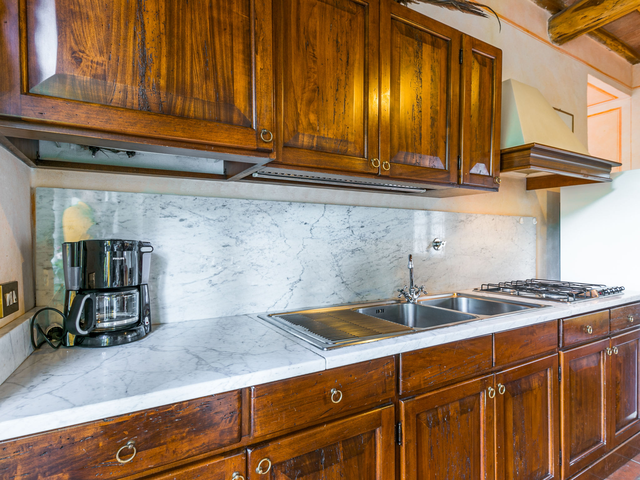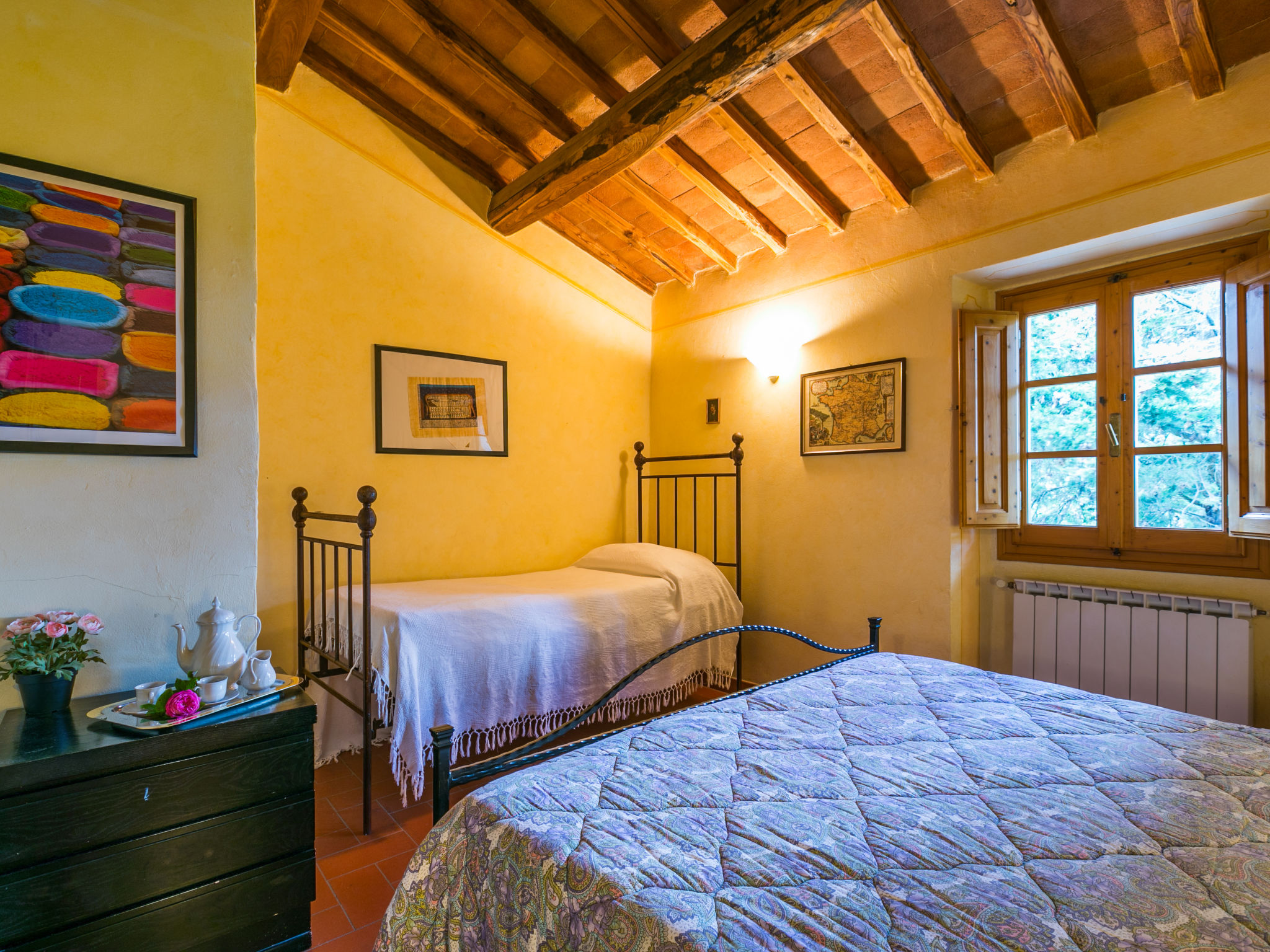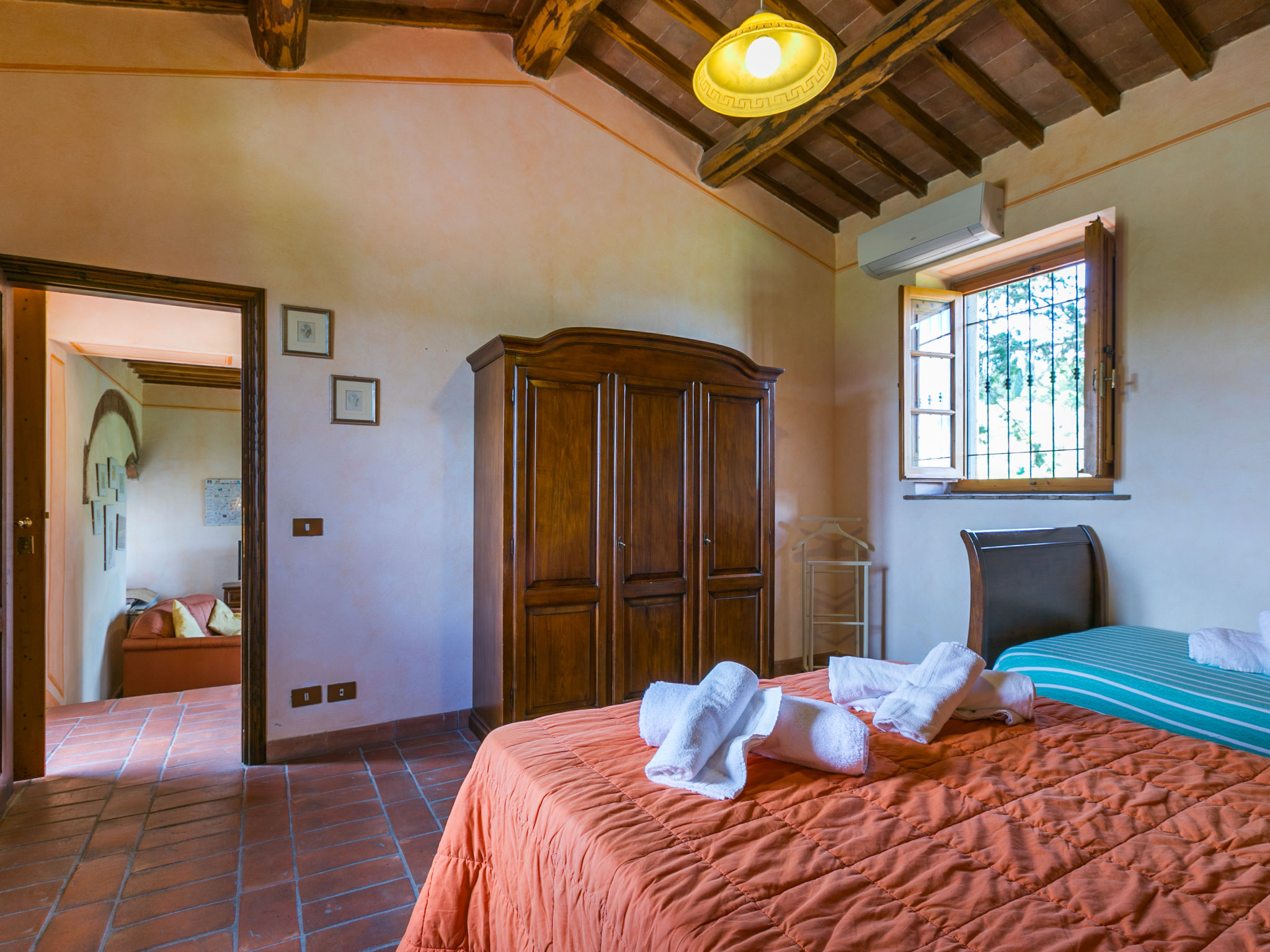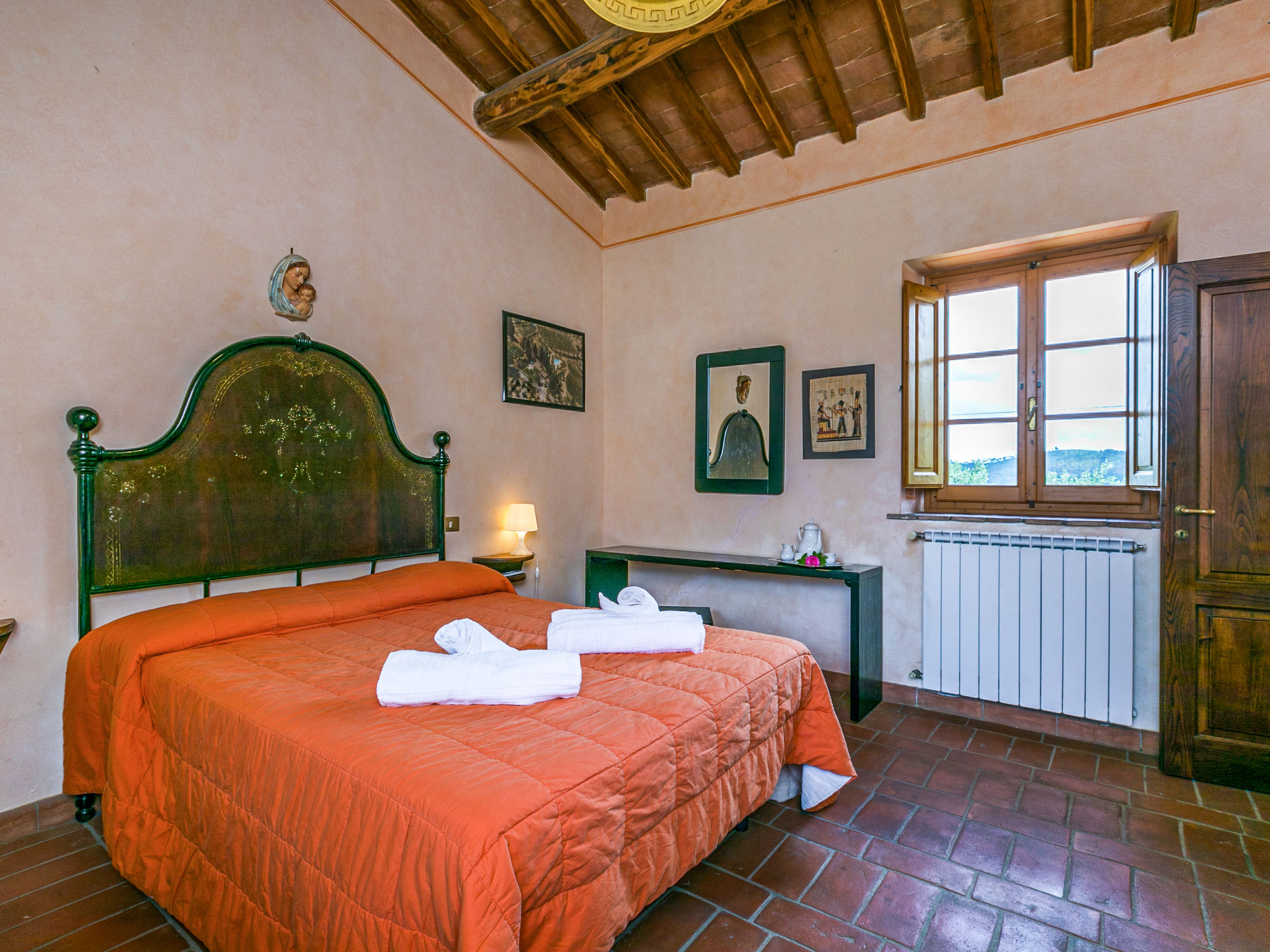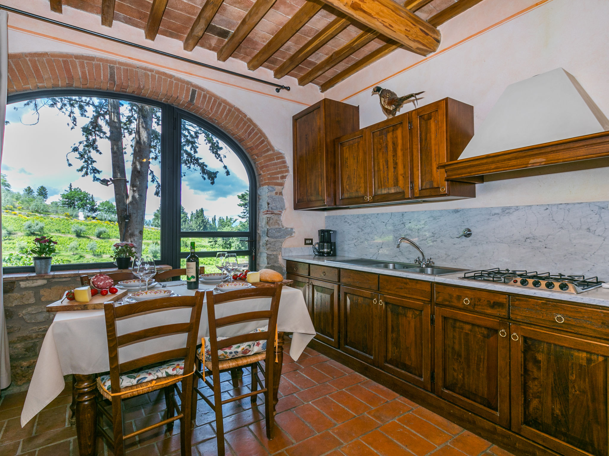 Montefioralle 3 km von Greve in Chianti: Agriturismo auf Weingut "San Rocco", auf 2 Stockwerken, aus dem 19. Jahrhundert, umgeben von Bäumen, Feldern und Weinbergen. 3 Wohnungen in der Residenz. 3 km vom Zentrum von Greve in Chianti, 1 km vom Zentrum von Montefioralle, ausserhalb des Ortes, 25 km vom Zentrum von Firenze, sonnige Lage, im Grünen. Zur Mitbenutzung: Terrassengarten, 4 ha (nicht eingezäunt) mit Pflanzen und Bäumen, Naturgarten, Schwimmbad (12 x 6 m, 120 - 180 cm tief, saisonale Verfügbarkeit: 02.Mai.-03.Okt.). Aussendusche, Grill, Poolpflege durch den Besitzer/Gärtner. Im Hause: Waschmaschine (extra). Parkplatz auf dem Grundstück. Lebensmittelgeschäft 3 km, Restaurant 3 km, Freibad 3 km. Golfplatz (18 Loch) 18 km. Ab Hof Verkauf von bäuerlichen Produkten. Besitzer wohnt in separatem Hausteil.