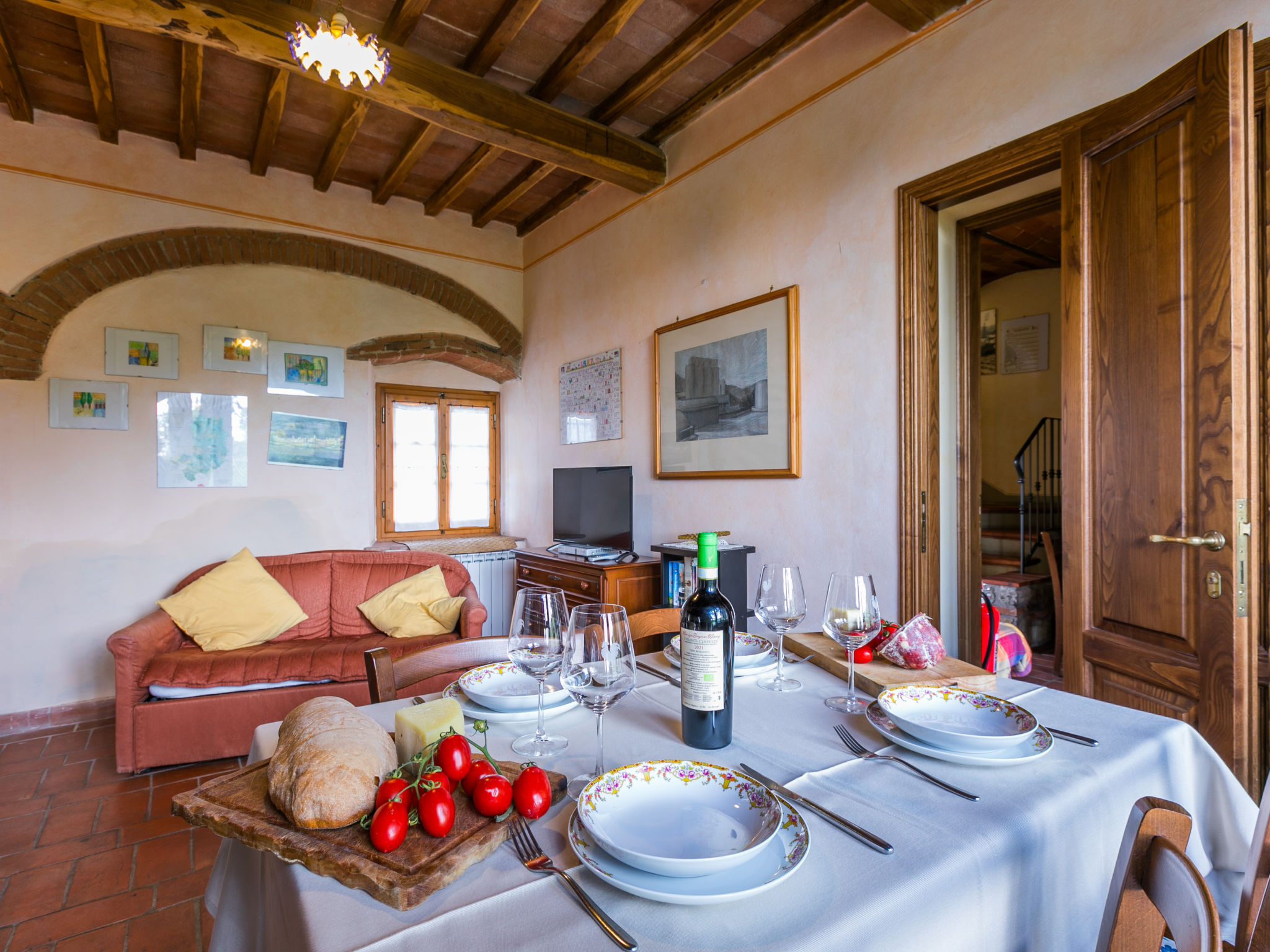 "San Rocco", 5-Zimmer-Haus 115 m2 auf 2 Stockwerken. Zweckmässig und rustikal eingerichtet: Wohn-/Schlafzimmer mit 1 Diwanbett, Esstisch, Küchenblock und Sat-TV. Ausgang zur Terrasse. Wohn-/Schlafzimmer mit 1 Diwanbett, Esstisch, Küchenblock und Sat-TV. Ausgang zur Terrasse. 1 Zimmer mit 1 Bett (80 cm), 1 franz. Bett (160 cm), Klimaanlage. Kochnische (4 Flammen, elektrische Kaffeemaschine). Dusche/WC. Obergeschoss: 1 Zimmer mit 1 franz. Bett (160 cm), Klimaanlage. 1 Zimmer mit 1 Bett (80 cm), 1 franz. Bett (160 cm), Klimaanlage. Dusche/WC. G-Heizung. Schöne Sicht auf die Landschaft. Zur Verfügung: Internet (Wireless LAN, gratis). Bitte beachten: Nichtraucher-Unterkunft. Maximal 1 Haustier/Hund erlaubt. Gemeinschaftspool steht zur alleinigen Nutzung zur Verfügung.