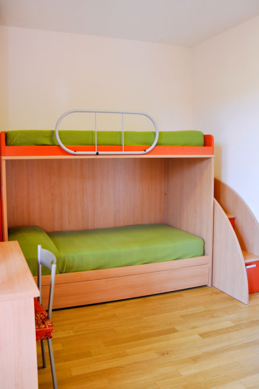 3-Zimmer-Wohnung, Erdgeschoss, ca. 55 m². Wohn-/Schlafraum mit Doppelbettcouch, Essplatz, Küchenzeile (4 Flammen, Backofen, Kühl-/Gefrierkombination). Doppelzimmer. Schlafzimmer mit Etagenbett und Einzelbett. Dusche/WC. Flexibilität bei der Bettenaufteilung: Es stehen mehr Schlafmöglichkeiten zur Verfügung als die maximal zugelassene Personenzahl, diese darf dennoch nicht überschritten werden. CIR:M0230430571