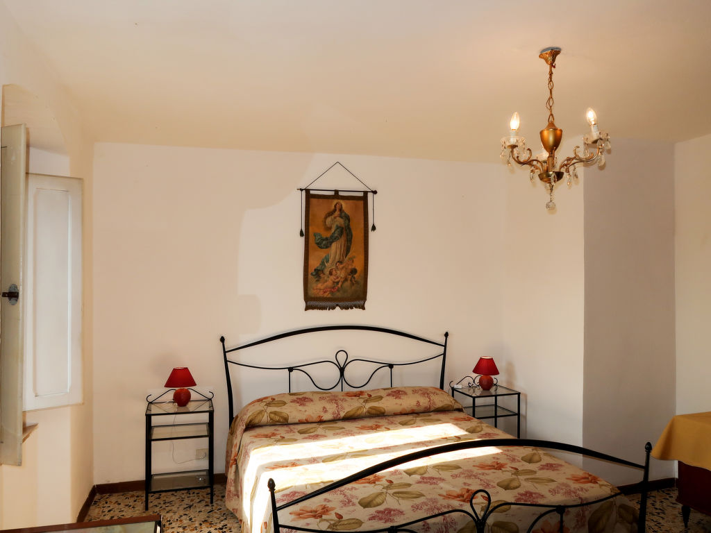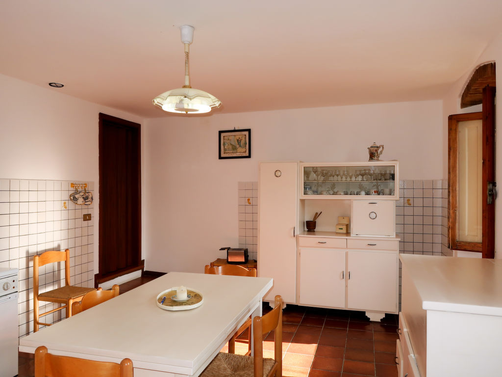 3-Zimmer-Haus 100 m2 auf 2 Stockwerken. Zweckmässig und rustikal eingerichtet: Küche (4 Flammen, Tiefkühler). Ausgang zur Terrasse. Obergeschoss: Wohn-/Esszimmer mit offenem Kamin, Esstisch und TV. 2 Zimmer, jedes Zimmer mit 1 franz. Bett (160 cm). Küche (3 Kochplatten, Backofen, Geschirrspüler, Tiefkühler). Dusche/WC. Natursteinböden. Zur Verfügung: Babybett. Maximal 1 Haustier/Hund erlaubt.
