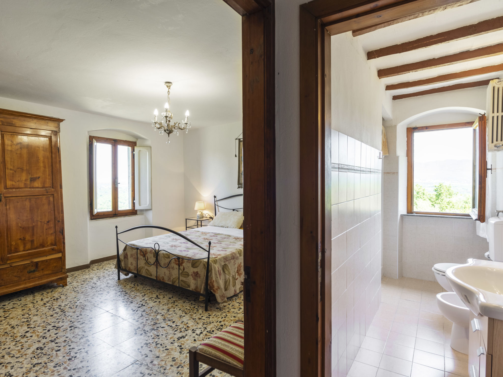 Rustikales Haus "La Casina", 400 m.ü.M., auf 2 Stockwerken, angebaut, umgeben von Feldern. 600 m vom Zentrum von Pieve a Maiano, 10 km vom Zentrum von Arezzo. Zur Alleinbenutzung: Grundstück 100 m2, Garten. Terrasse, Gartenmöbel, Parkplatz beim Haus. Einkaufsgeschäft 600 m, Supermarkt 3.5 km, Bahnstation "Arezzo" 15 km.