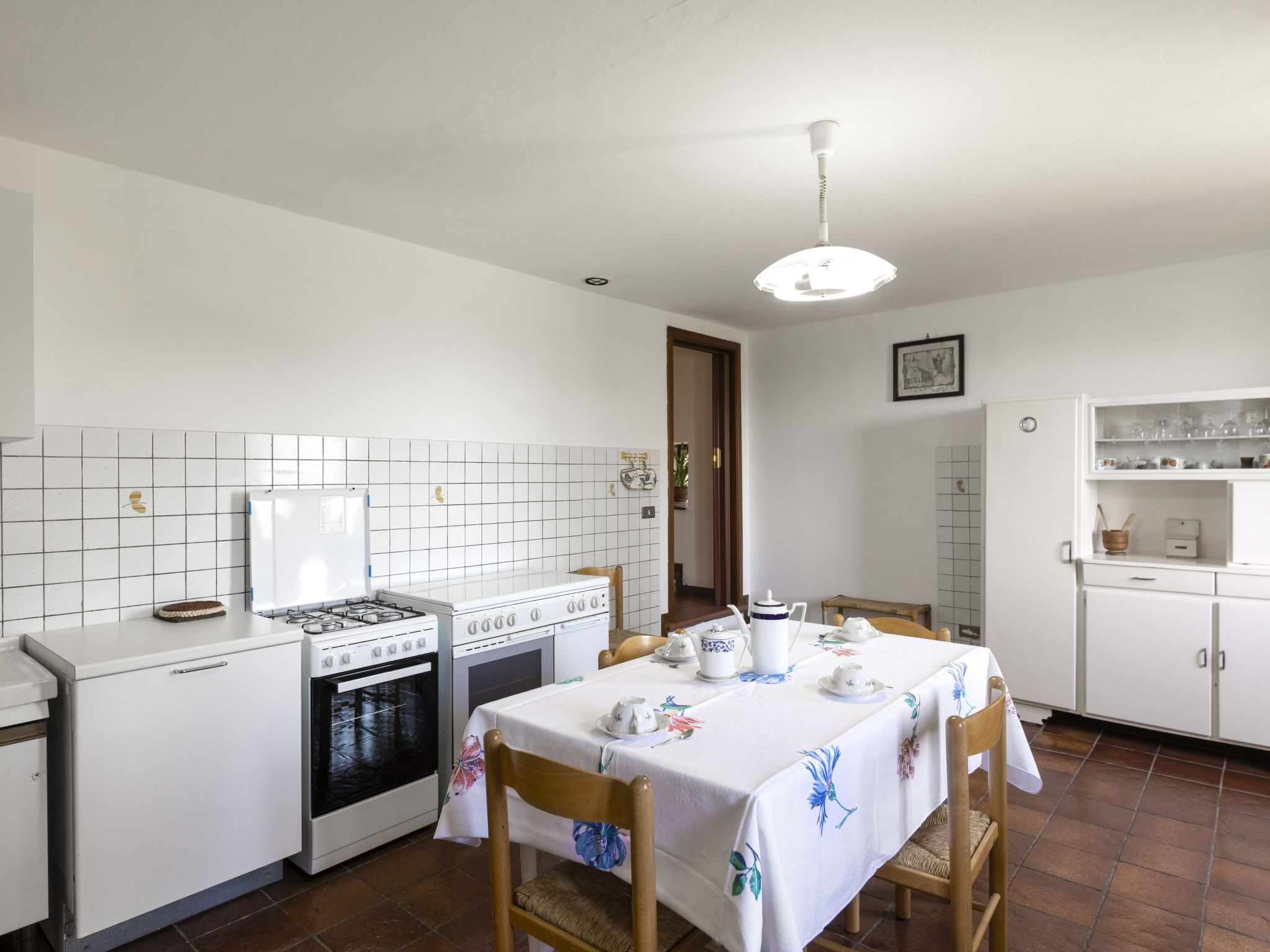 3-Zimmer-Haus 100 m2 auf 2 Stockwerken. Zweckmässig und rustikal eingerichtet: Küche (4 Flammen, Tiefkühler). Ausgang zur Terrasse. Obergeschoss: Wohn-/Esszimmer mit offenem Kamin, Esstisch und TV. 2 Zimmer, jedes Zimmer mit 1 franz. Bett (160 cm). Küche (3 Kochplatten, Backofen, Geschirrspüler, Tiefkühler). Dusche/WC. Natursteinböden. Zur Verfügung: Babybett. Maximal 1 Haustier/Hund erlaubt.
