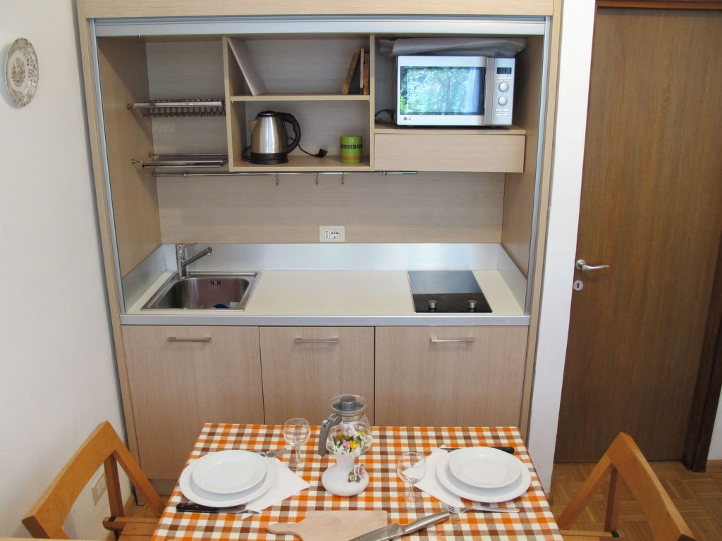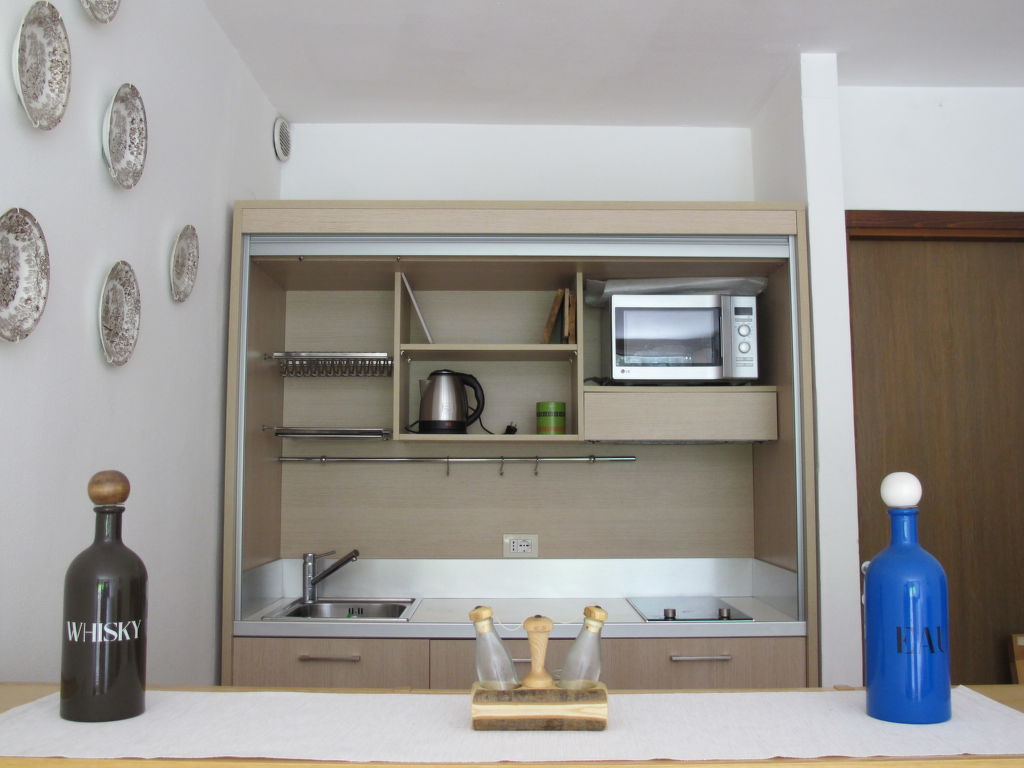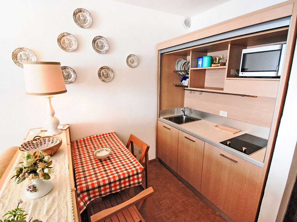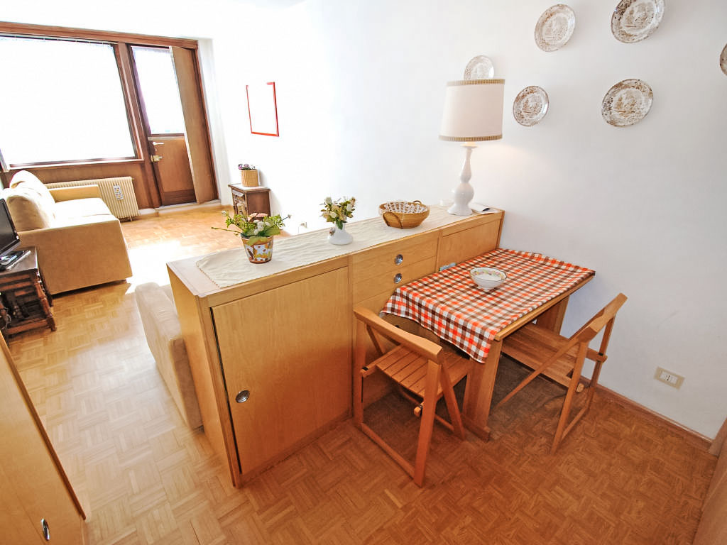 1-Zimmer-Wohnung 30 m2, im erhöhten Erdgeschoss. Einfach und zweckmässig eingerichtet: Wohn-/Schlafzimmer mit 1 Doppeldiwanbett und 1 x 2 Etagenbetten, TV (Flachbildschirm). Kochnische (2 Kochplatten, Geschirrspüler, Mikrowelle) mit kleinem Esstisch. Dusche/Bidet/WC. Heizung nur verfügbar von 01.12. bis 01.05. Abstellkammer. Sicht auf die Berge und das Tal. Bitte beachten: Nichtraucher-Unterkunft. 1 Haustier/Hund erlaubt. 022113-AT-783806