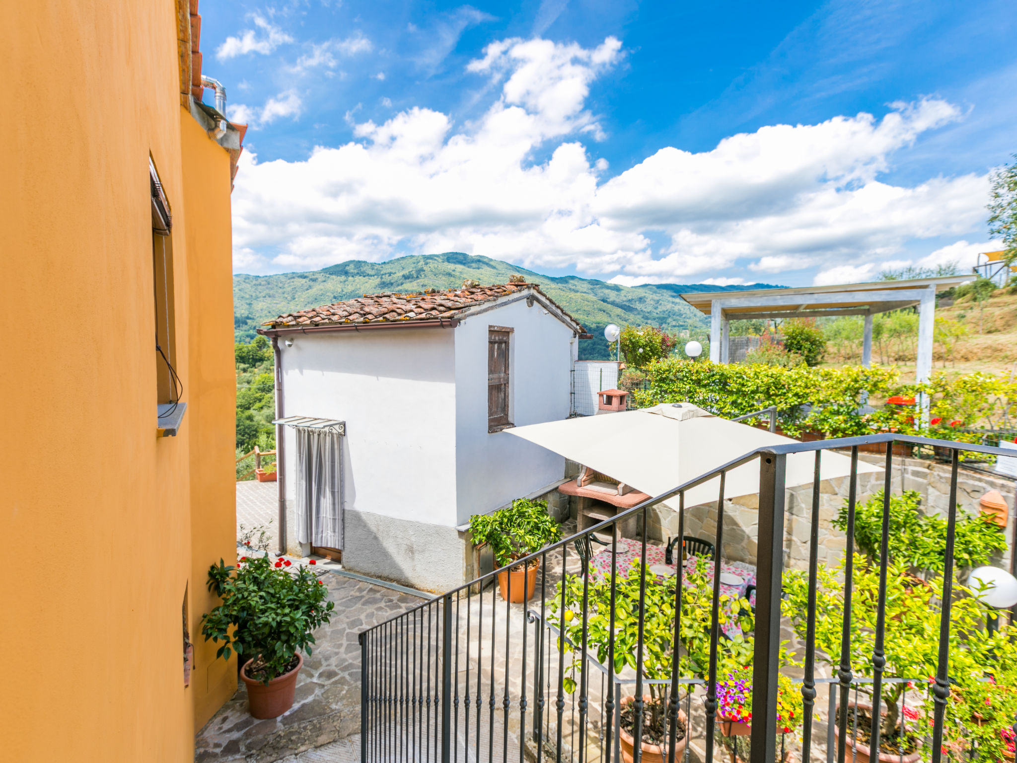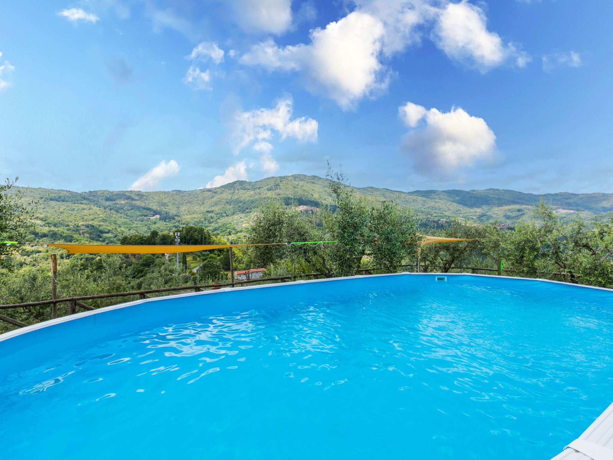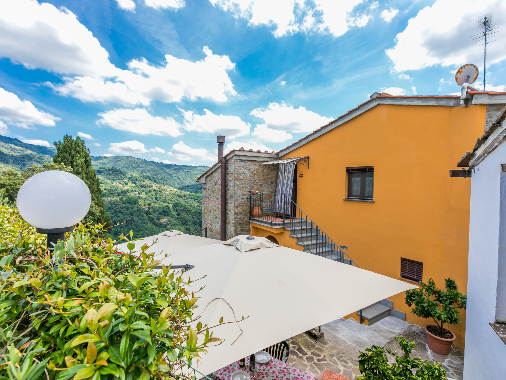 Haus "Poggetto Pellegrini", 370 m.ü.M., renoviert. 2 Wohnungen im Ferienhaus. Im Weiler Aramo, 8.5 km vom Zentrum von Pescia, 29 km vom Zentrum von Lucca, 55 km vom Zentrum von Pisa, erhöhte Lage am Hang, 64 km vom Meer. Zur Mitbenutzung: Grundstück 20'000 m2, Terrassengarten Pflanzen und Bäumen, Aufstellpool (7 x 3 m, 130 cm tief, saisonale Verfügbarkeit: 09.Mai.-03.Okt.). Aussendusche, Sprudelbad. Im Hause: Waschmaschine (zur Mitbenutzung). Frühstück möglich (extra). 300 m lange Zufahrt bis zum Haus (Naturweg). Parkplatz auf dem Grundstück. Einkaufsgeschäft 5 km, Sandstrand "Viareggio" 64 km, Thermalbad "Montecatini Terme" 18 km. Golfplatz (18 Loch) 30 km. Nahe gelegene Sehenswürdigkeiten: Collodi 14 km, Villa Garzoni Butterfly 14 km, Montecarlo 16 km, Pistoia 39 km, San Miniato 42 km, Firenze 70 km. Bitte beachten: Der Besitzer wohnt auf dem gleichen Grundstück.