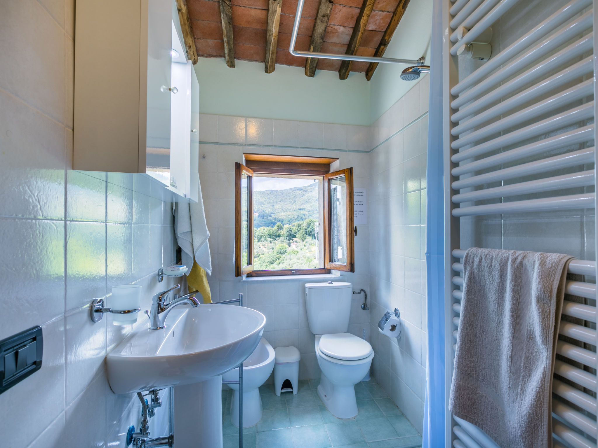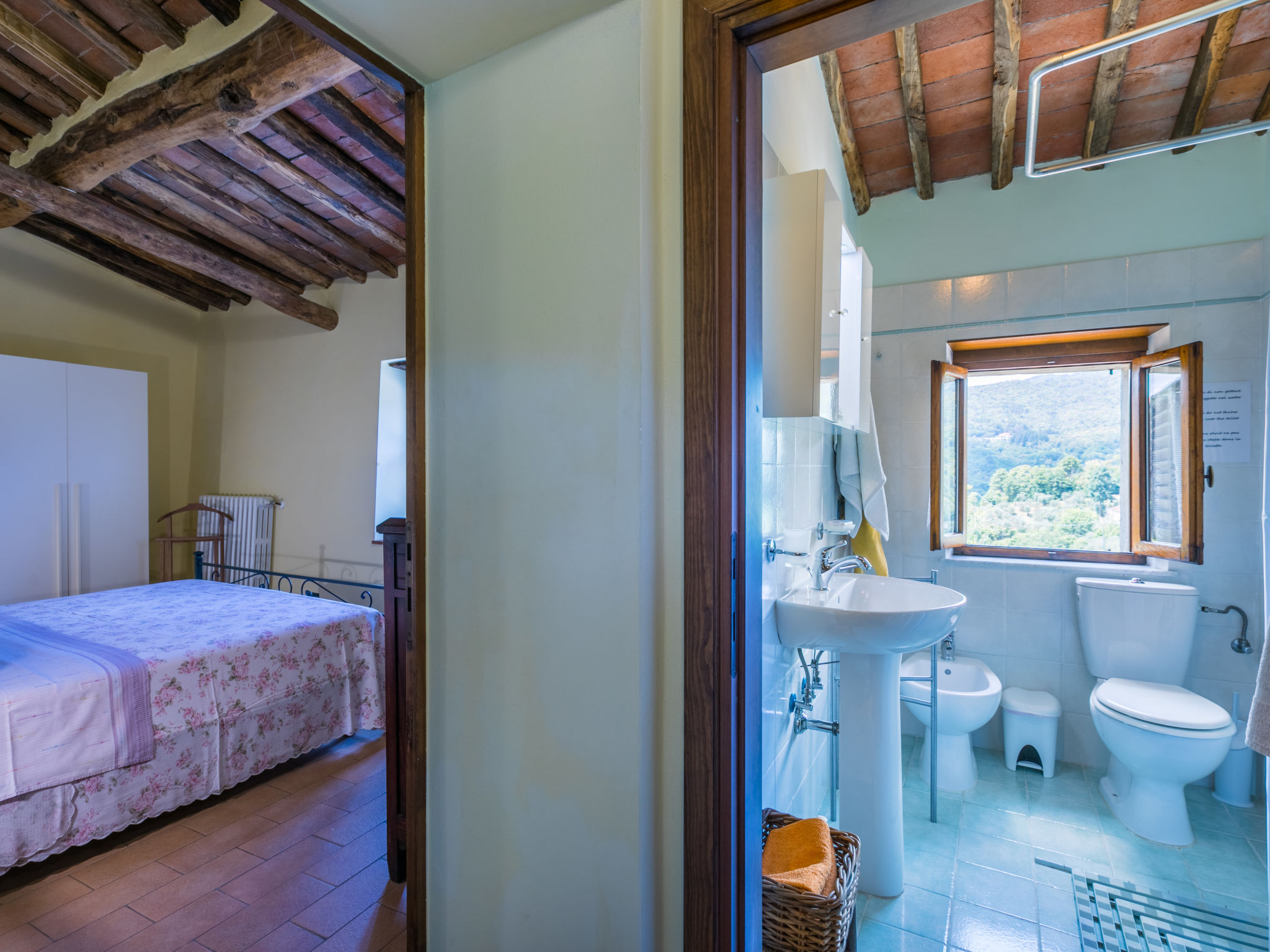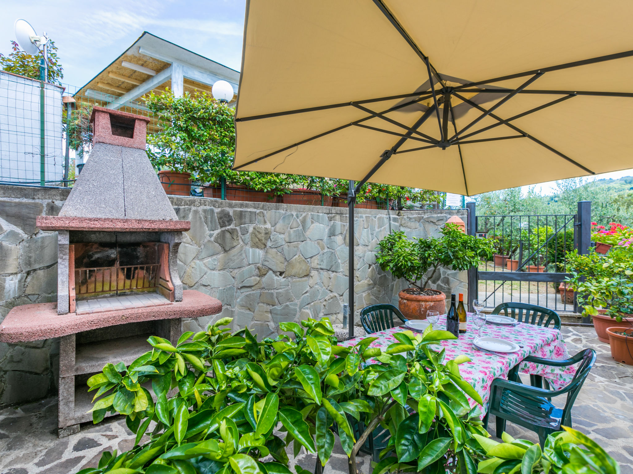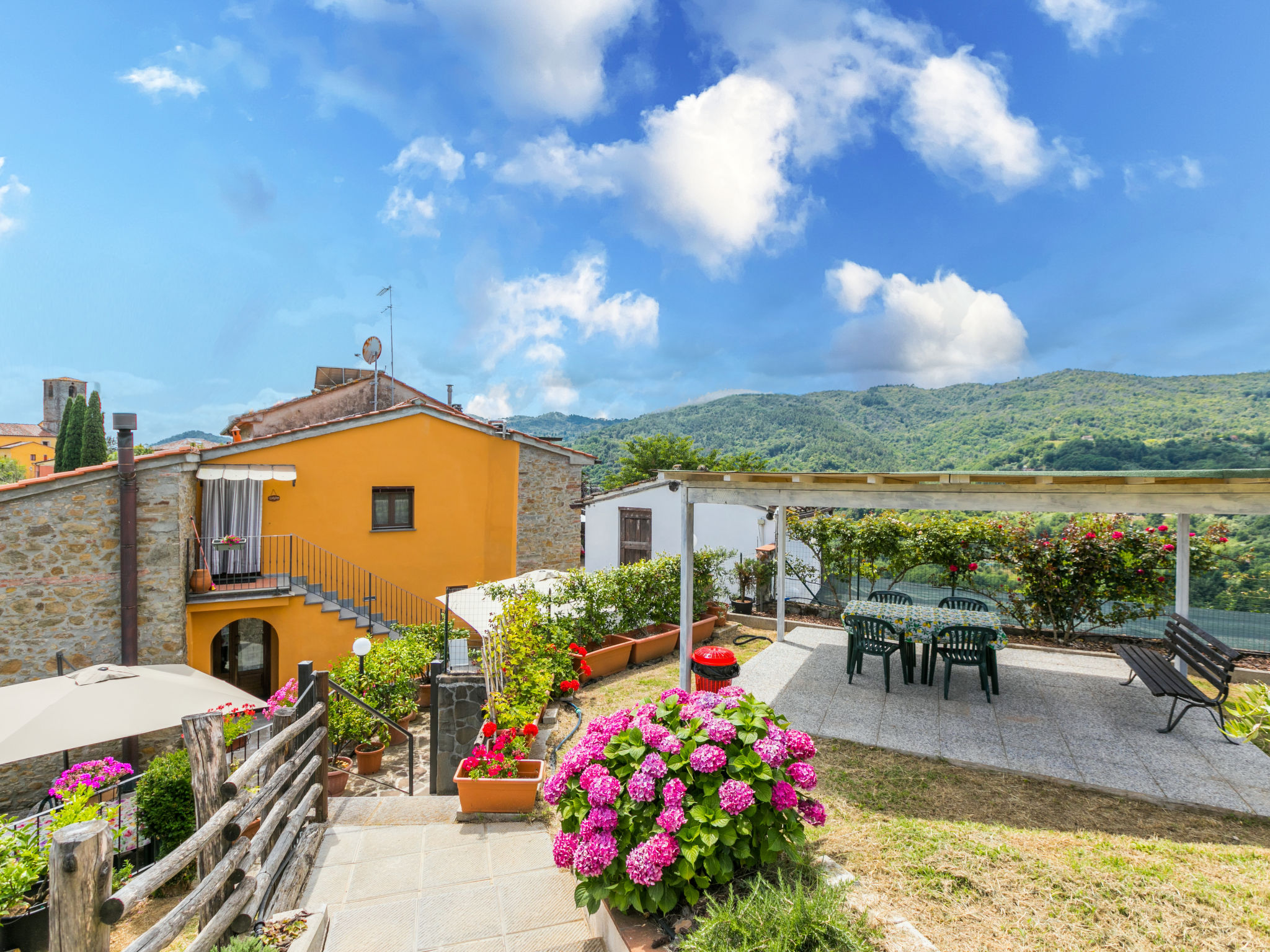 Haus "Poggetto Pellegrini", 370 m.ü.M., renoviert. 2 Wohnungen im Ferienhaus. Im Weiler Aramo, 8.5 km vom Zentrum von Pescia, 29 km vom Zentrum von Lucca, 55 km vom Zentrum von Pisa, erhöhte Lage am Hang, 64 km vom Meer. Zur Mitbenutzung: Grundstück 20'000 m2, Terrassengarten Pflanzen und Bäumen, Aufstellpool (7 x 3 m, 130 cm tief, saisonale Verfügbarkeit: 09.Mai.-03.Okt.). Aussendusche, Sprudelbad. Im Hause: Waschmaschine (zur Mitbenutzung). Frühstück möglich (extra). 300 m lange Zufahrt bis zum Haus (Naturweg). Parkplatz auf dem Grundstück. Einkaufsgeschäft 5 km, Sandstrand "Viareggio" 64 km, Thermalbad "Montecatini Terme" 18 km. Golfplatz (18 Loch) 30 km. Nahe gelegene Sehenswürdigkeiten: Collodi 14 km, Villa Garzoni Butterfly 14 km, Montecarlo 16 km, Pistoia 39 km, San Miniato 42 km, Firenze 70 km. Bitte beachten: Der Besitzer wohnt auf dem gleichen Grundstück.