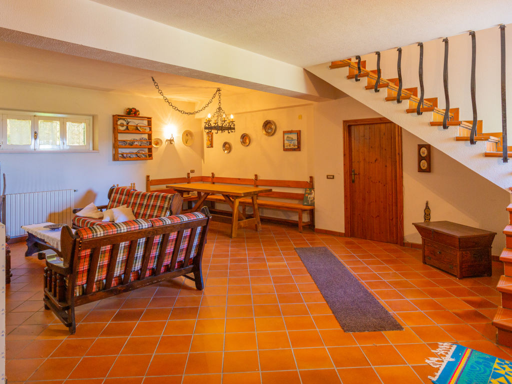 Das geräumige Landhaus, rückseitig an ein weiteres Ferienhaus angrenzend, steht mitten im Grünen, 1,2 km außerhalb von Altino mit Lebensmittelgeschäft. Supermarkt in Selva 3 km. Herrlicher Blick auf das Gebirgsmassiv der Maiella. Parkplätze am Haus. Ca. 700 m² großes naturbelassenes Grundstück mit Palmen, Obst- und Olivenbäumen. Terrasse mit Mobiliar. Grill. Feriengerechte Einrichtung. Fliesen- und Parkettböden. Sat-TV (4 deutsche Programme). Waschmaschine. Gas-Zentralheizung.