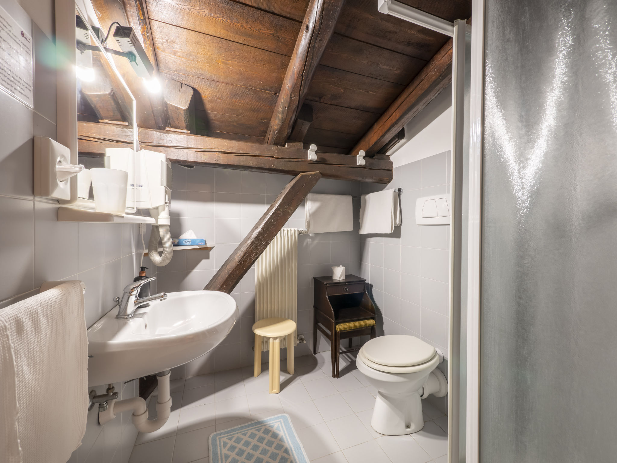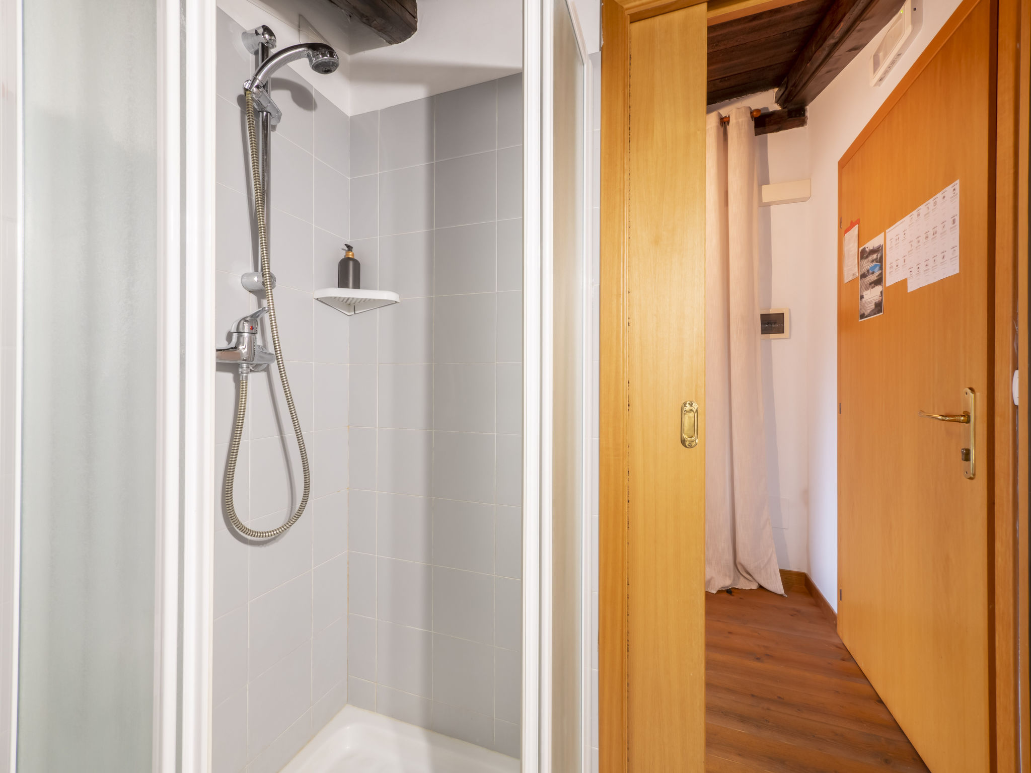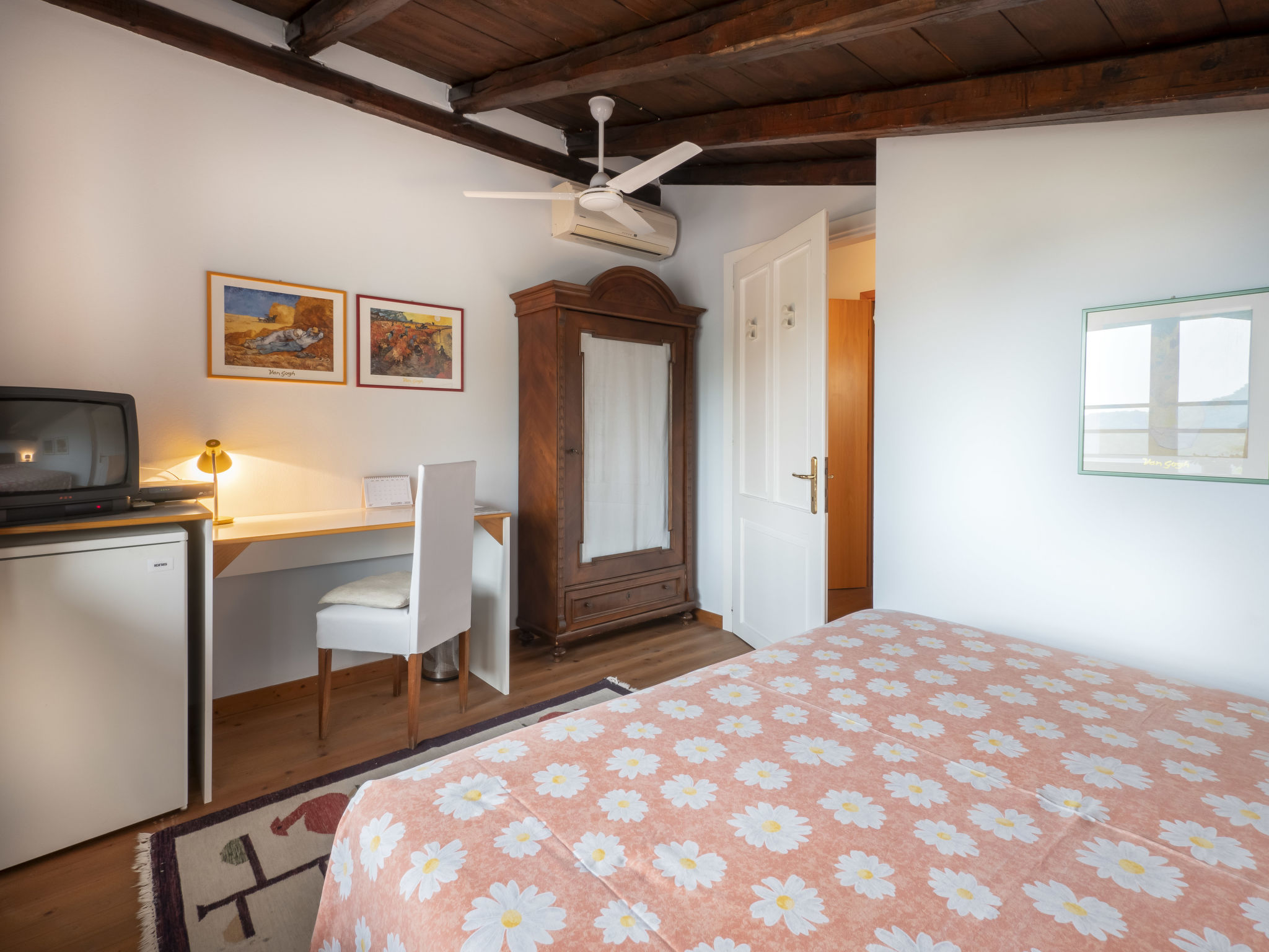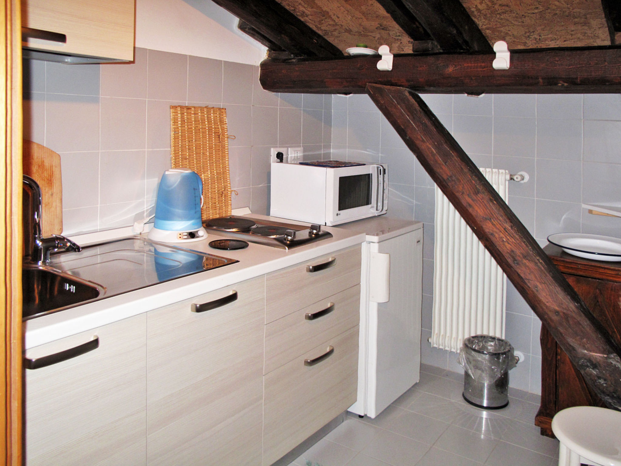 2-Zimmer-Wohnung 'Le Ortensie', 2. Etage (teils Dachschräge), ca. 38 m². Wohn-/Schlafraum mit Doppelbettcouch und Essplatz. Kleine Küche (2 Platten, Mikrowelle, Kühlschrank, Wasserkocher, Toaster). Doppelzimmer. Dusche/WC. Empfohlene Belegung: 3 Erwachsene oder 2 Erwachsene und 2 Kinder.