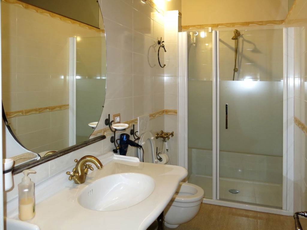4-Zimmer-Wohnung 'Le Rose d'Antan', 1. Etage, ca. 75 m². Wohnküche (4 Induktionsfelder, Backofen, Kühl-/Gefrierkombination, Kaffeemaschine, Toaster) mit Essplatz. Schlafzimmer mit franz. Bett (1,60 m breit) und Einzelbett, Dusche/WC. Zweibettzimmer. Von hier in Schlafzimmer mit Doppelbett und Einzelbett. Dusche/WC. CIR: 005049-CIM-00001